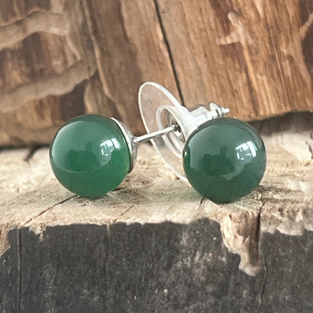 Cercei stud sfere agat verde
