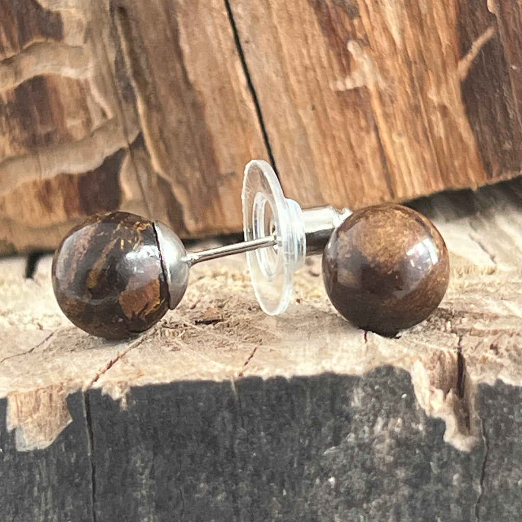 Acești cercei stud din bronzit natural poartă în ei profunzimea pământului și căldura metalului topit de soare. Reflexele lor aurii, adâncite în nuanțe de ciocolatiu și bronz, creează o lumină subtilă ce amintește de forța ascunsă a naturii.