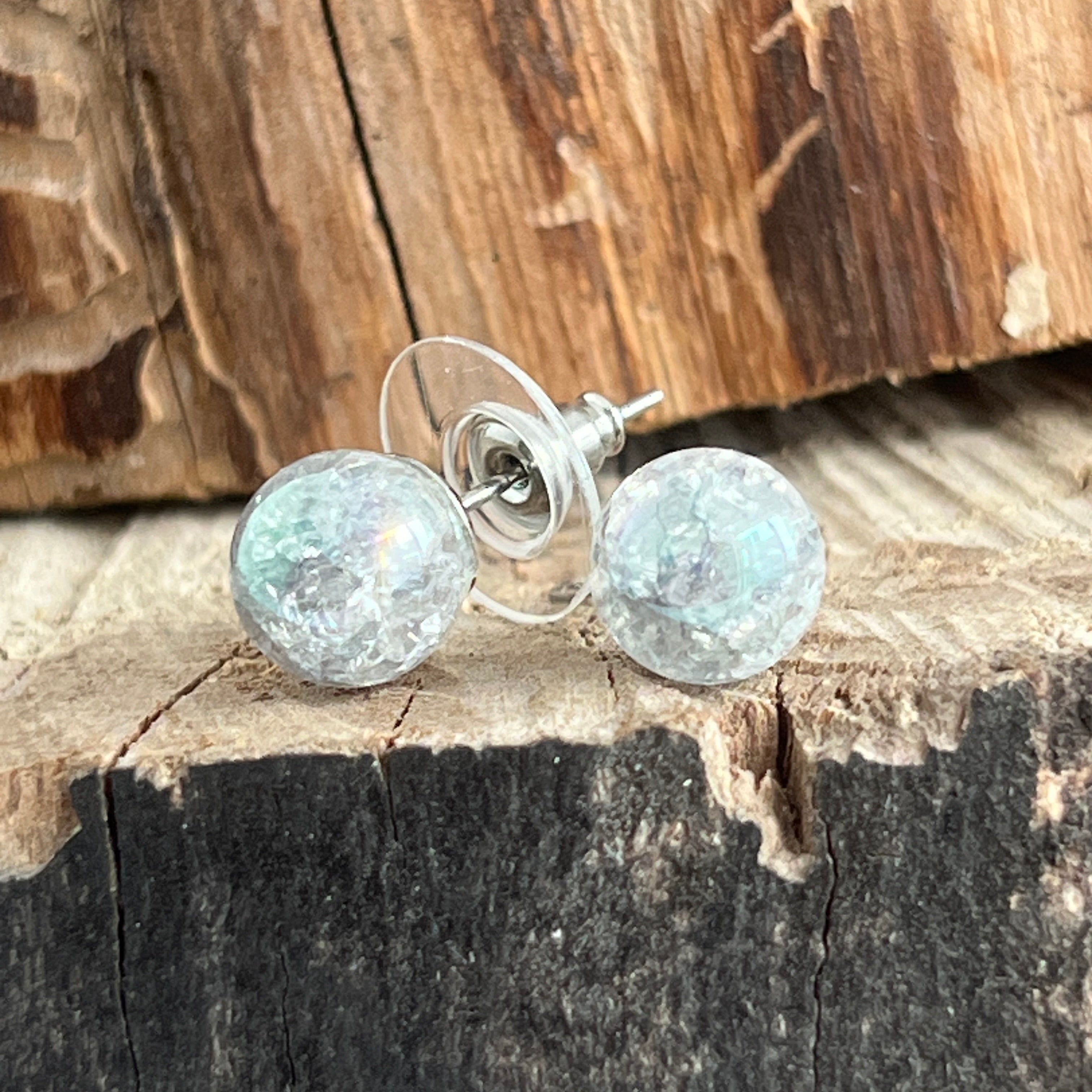Cercei stud sfere cuart aura CRUSHED