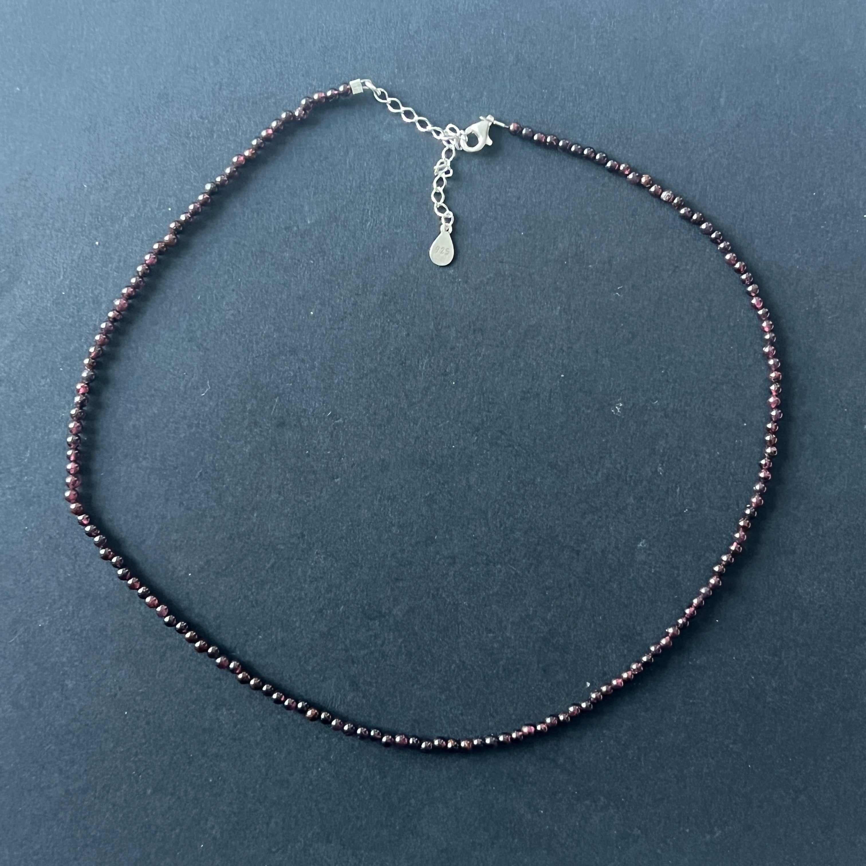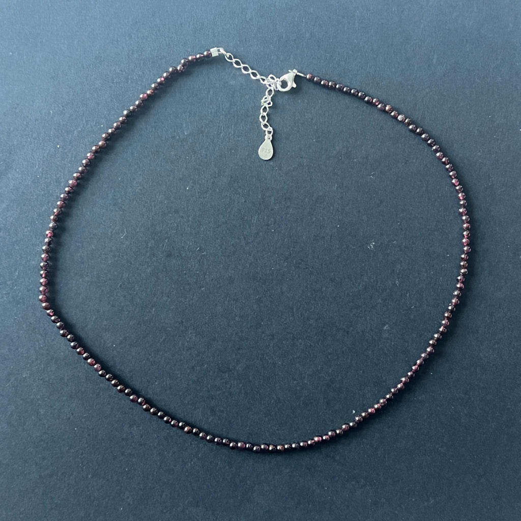 Materiale: granat natural șlefuit, mărgele sferice de 3 mm, argint 925
