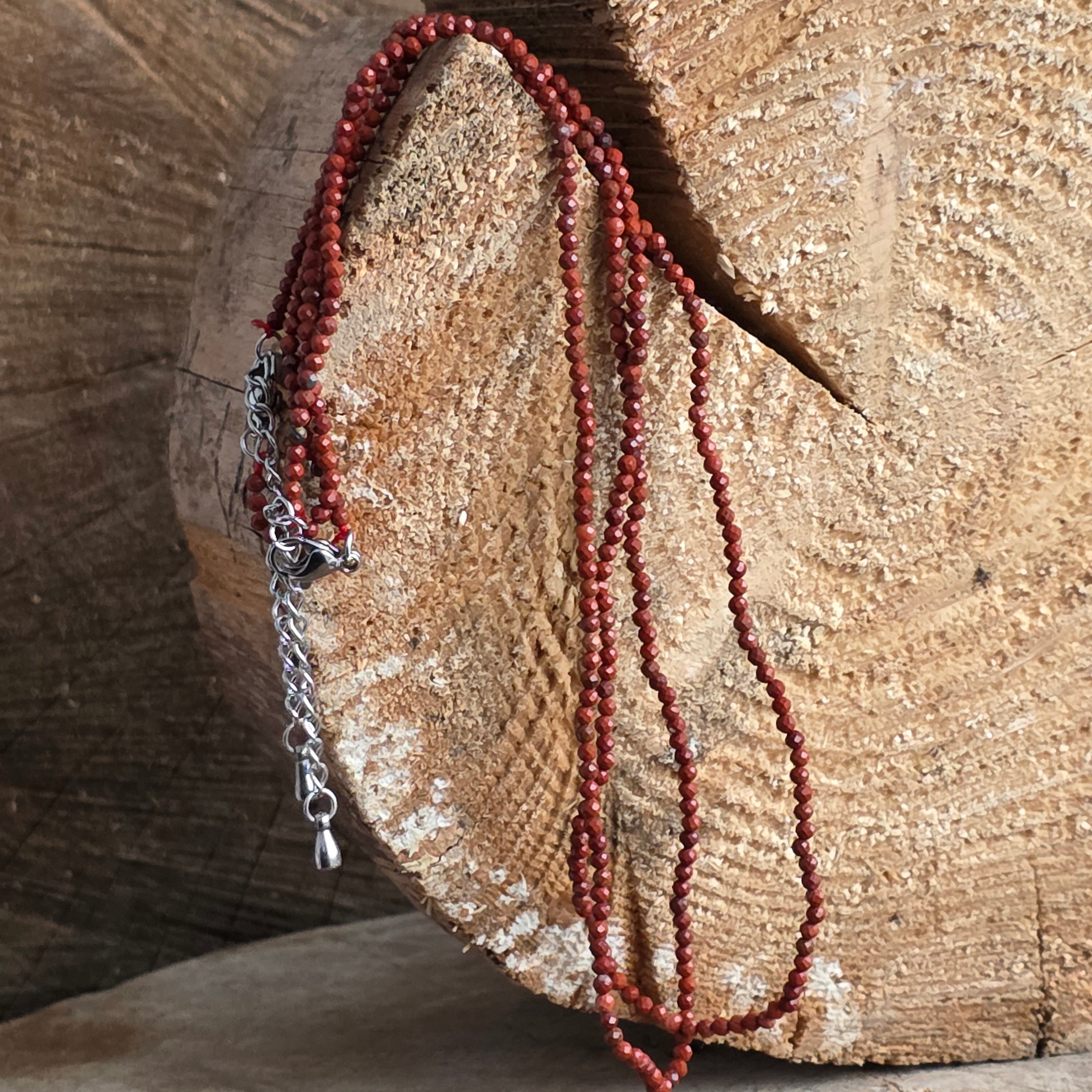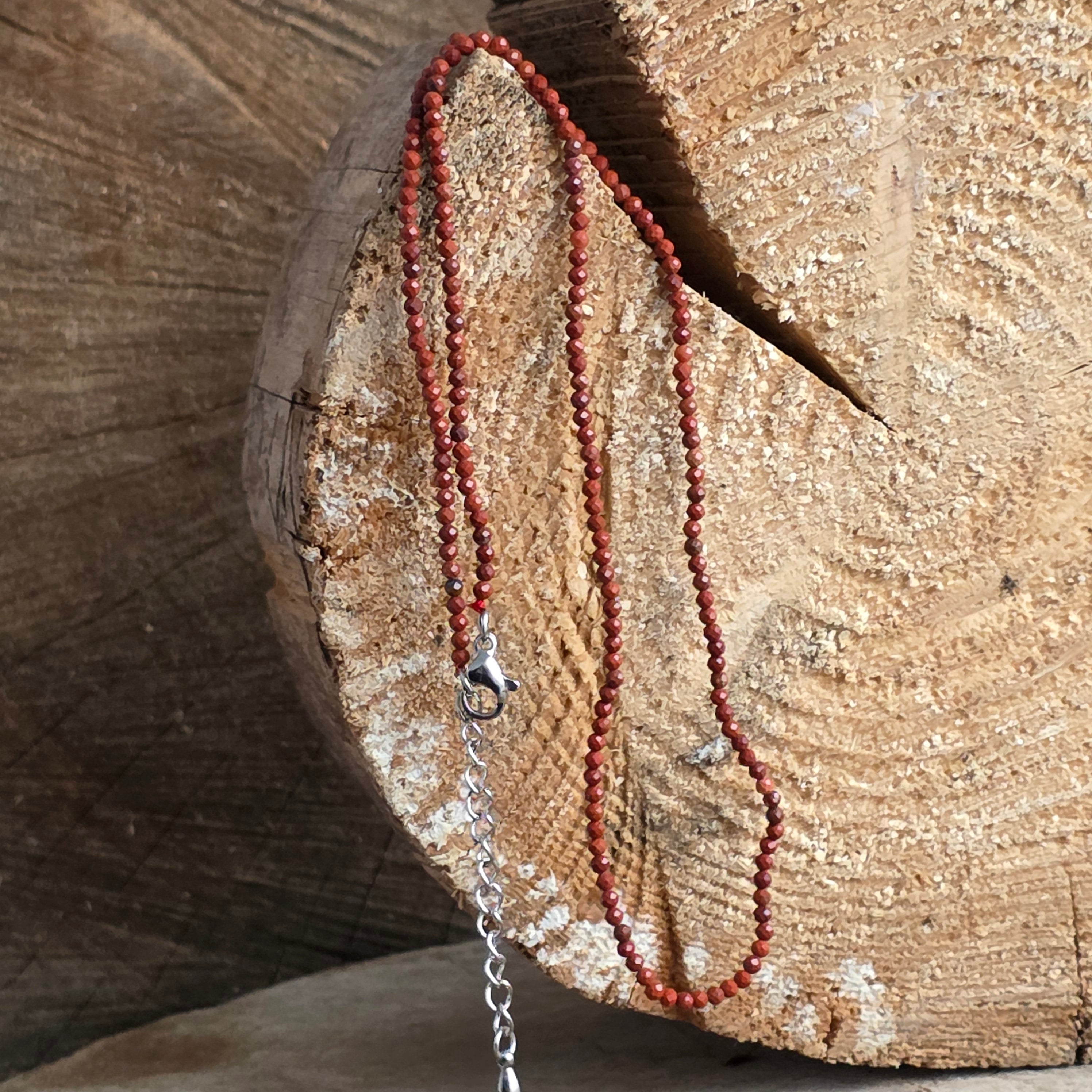 Naszyjnik czerwony Jasp 2 mm kulki, rozmiar: 38 + 5 cm (łańcuch przedłużający)