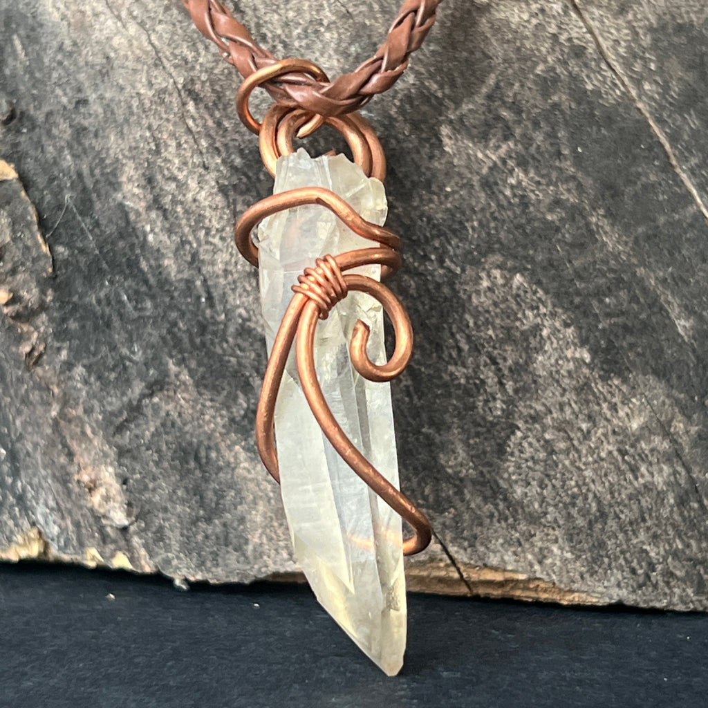 Acest colier unicat aduce la viață magia Africii printr-un pandantiv de cuart fumuriu natural, provenit din Zimbabwe. Piatra, prinsă într-o montură artistică din cupru răsucit manual, își dezvăluie nuanțele profunde, de la gri translucid până la brun cald, care par să surprindă esența fumului ce se ridică ușor din focul purificator.