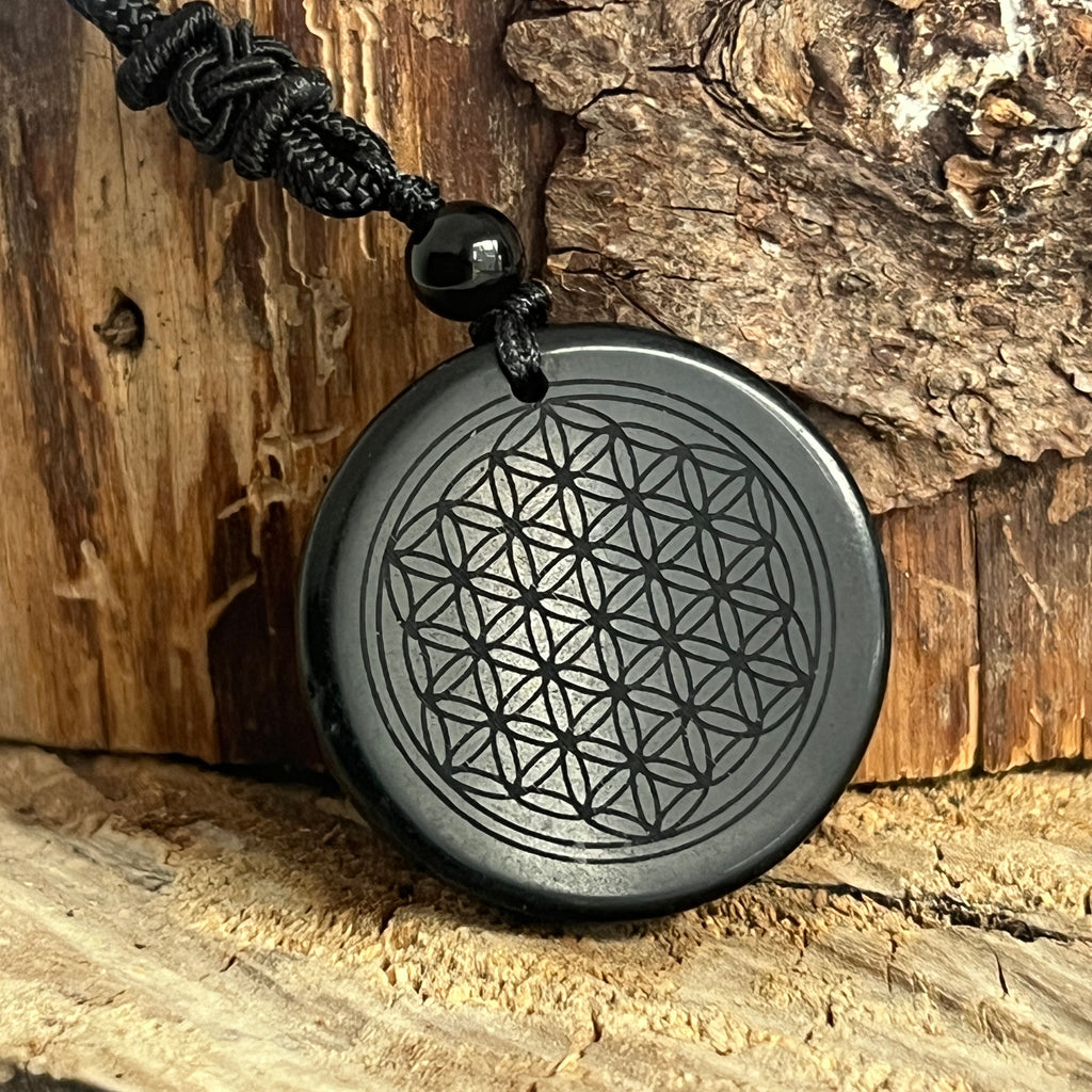 Colierul din Obsidian natural gravat cu simbolul Floarea Vieții / Flower of Life este o bijuterie a protecției și a armoniei universale. Floarea Vieții, unul dintre cele mai vechi și sacre simboluri geometrice, reprezintă unitatea și interconectarea tuturor formelor de viață.