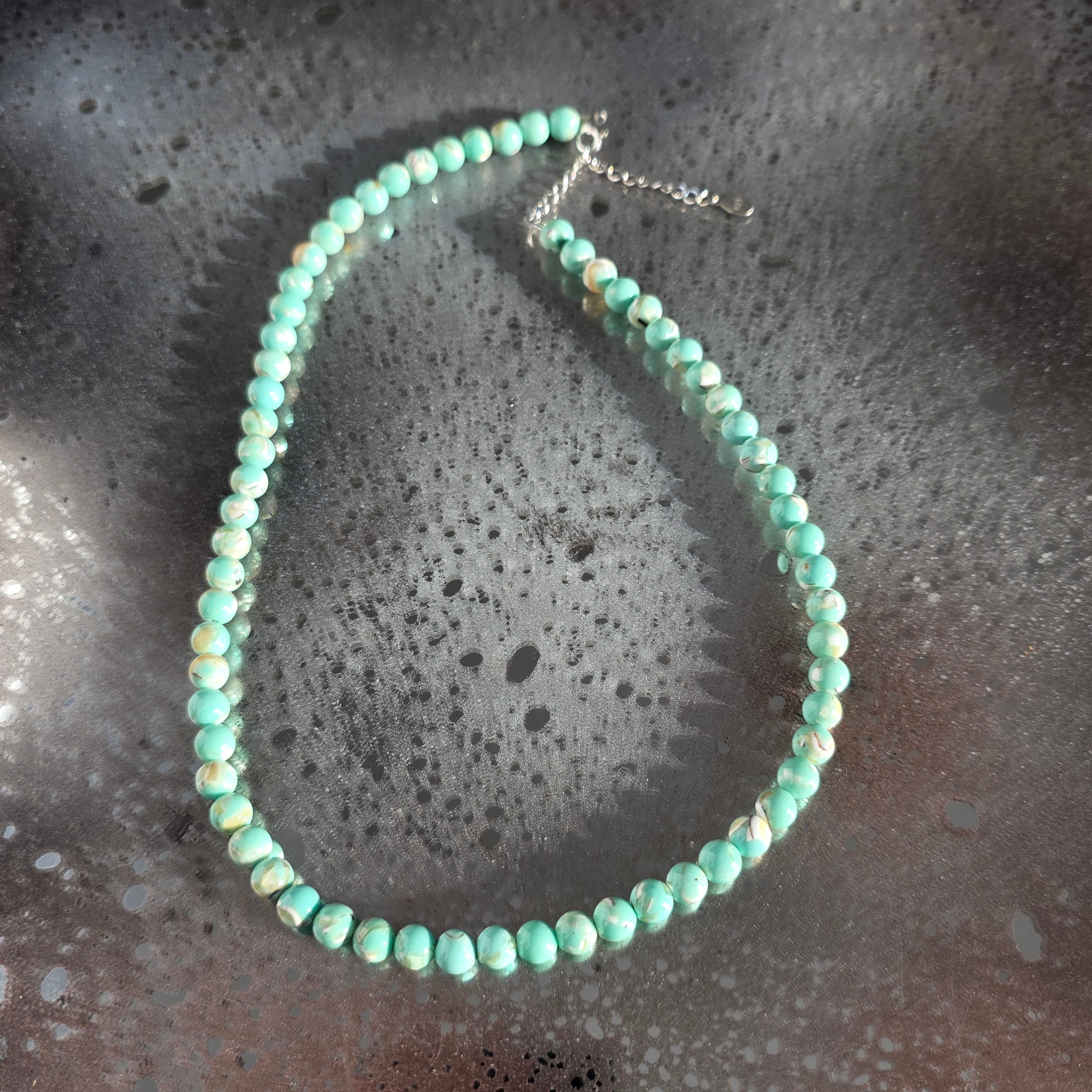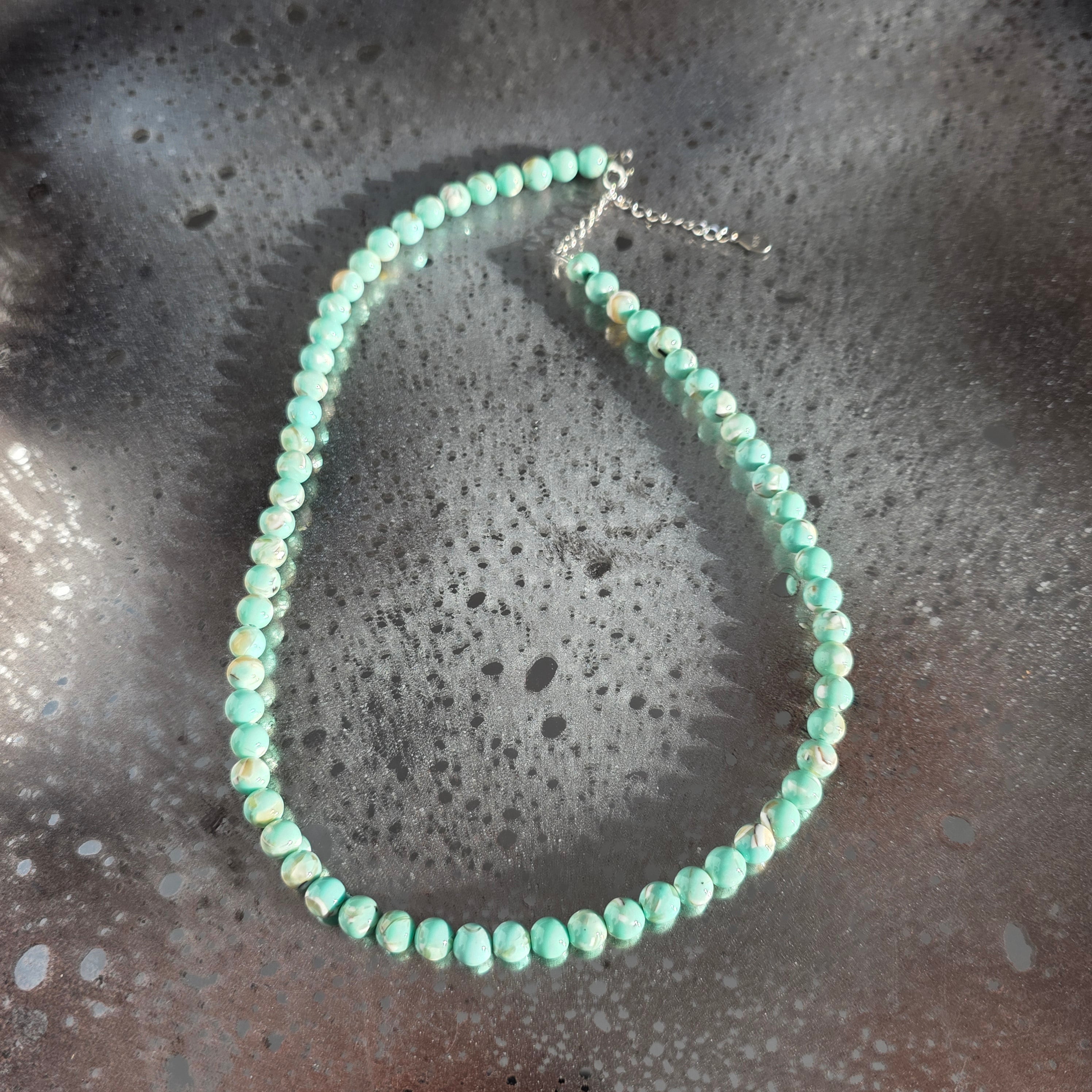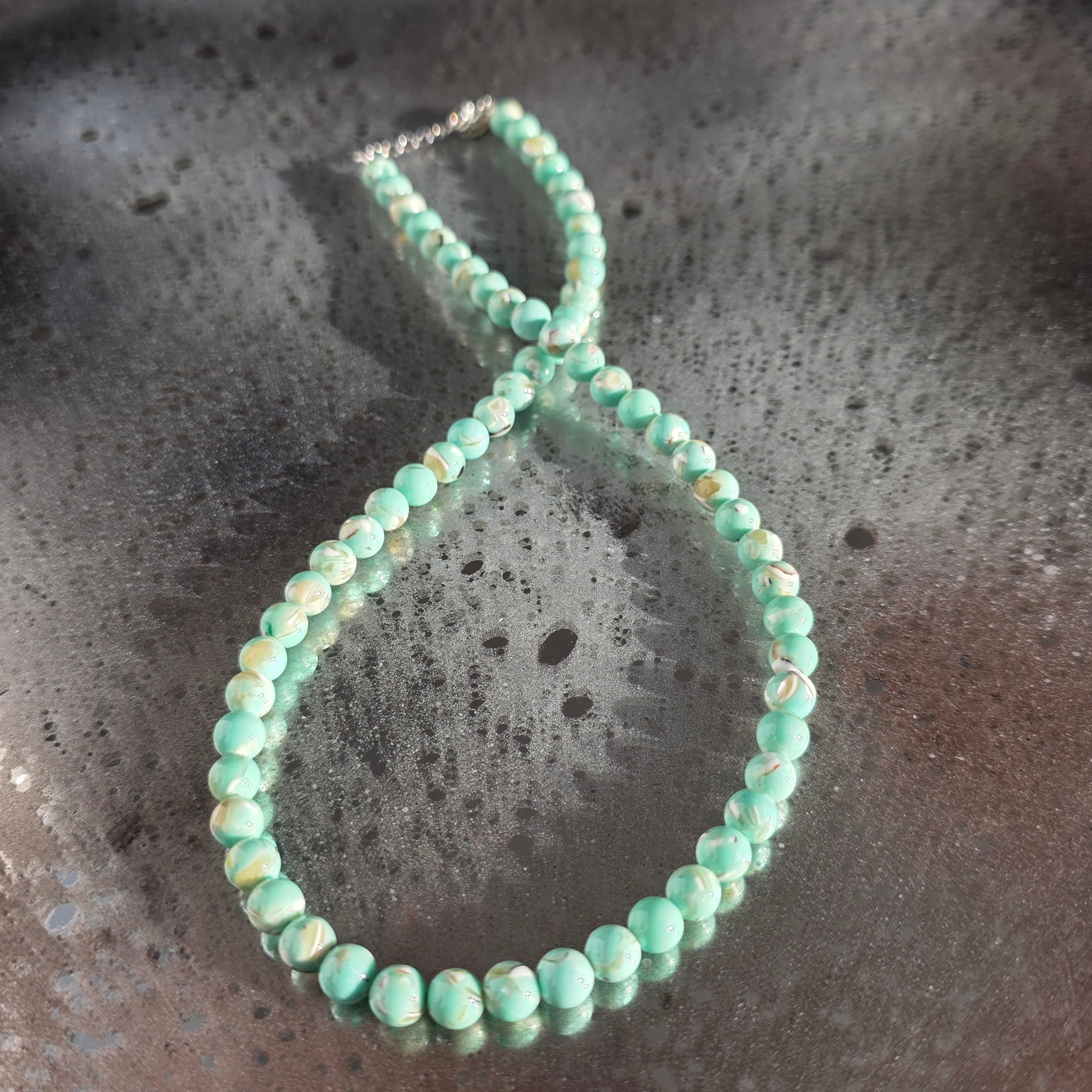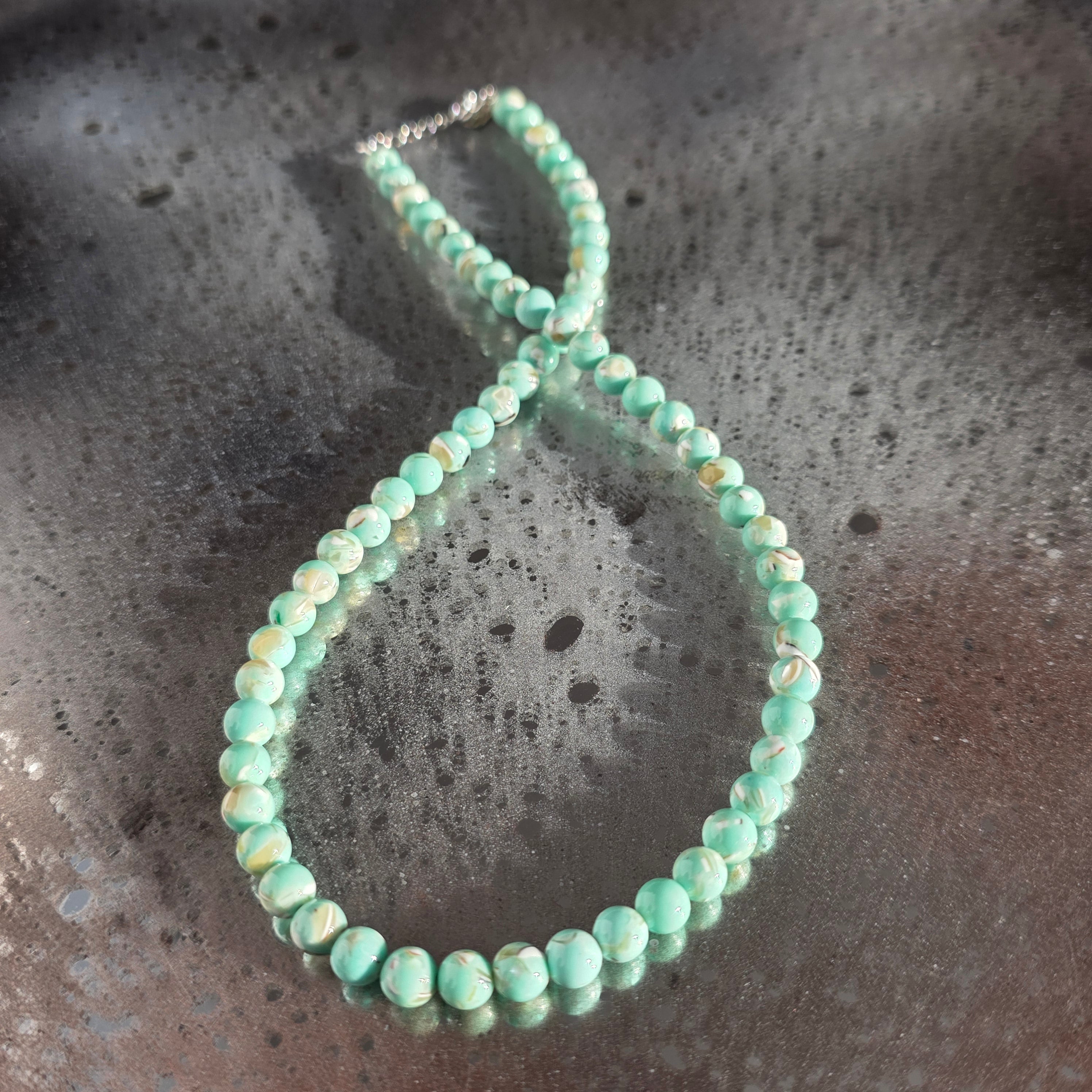 Delikatny i harmonijny naszyjnik wykonany z 6 mm kulek masy perłowej. Gładka powierzchnia i ciepłe, perłowe odcienie tworzą spokojną i elegancką obecność, łatwą do wkomponowania zarówno w codzienne stylizacje, jak i w bardziej wyszukane połączenia.