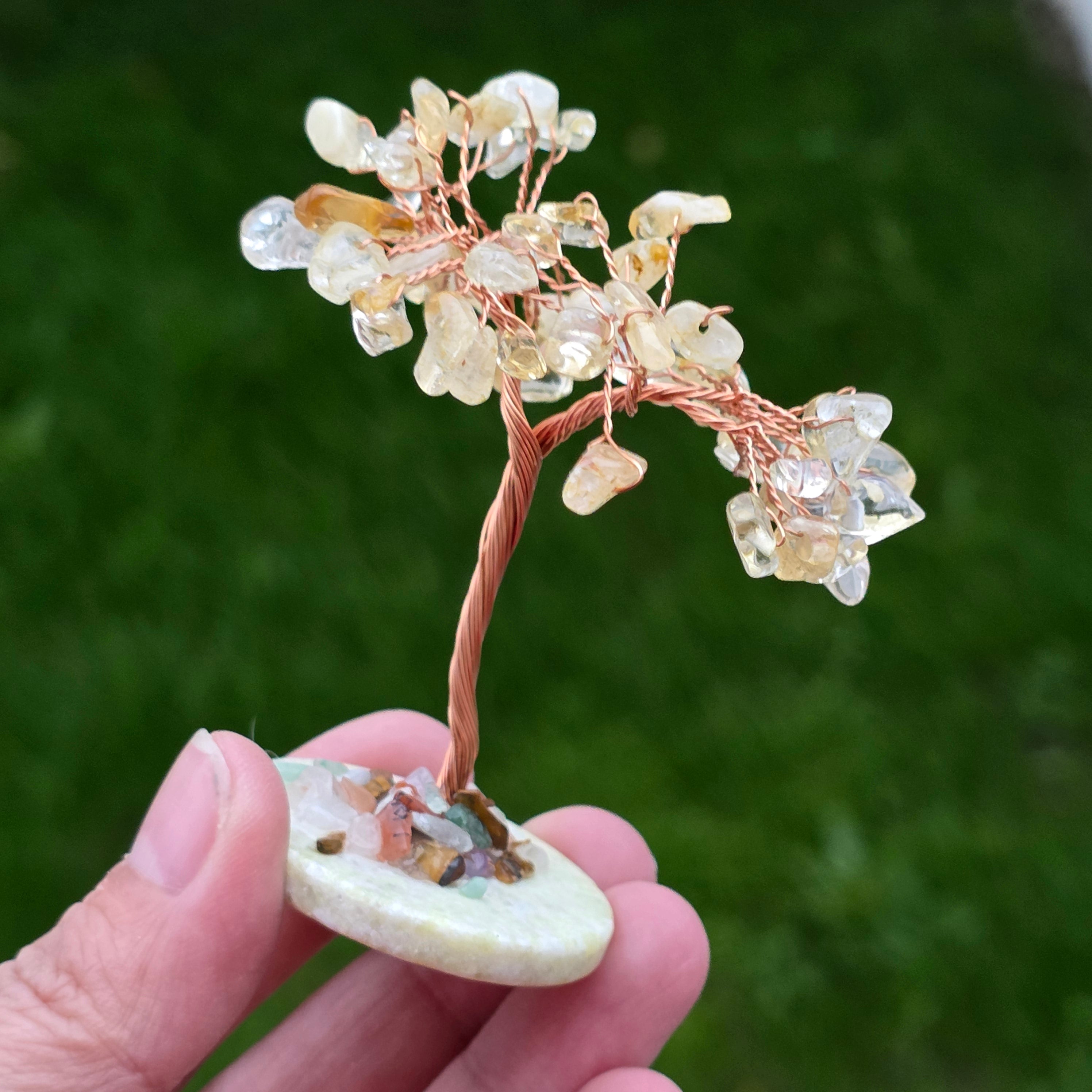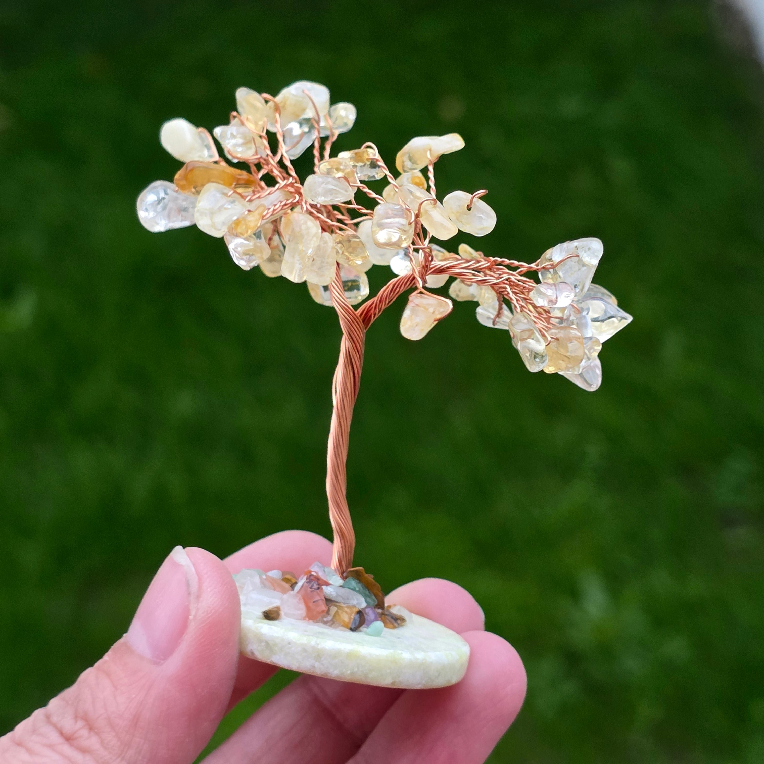 Acest pom feng shui vibrant este creat pentru a aduce în viața ta vitalitate, curaj și echilibru emoțional. Frunzele sunt realizate din citrin, o piatră cu energie caldă și motivantă, asociată în feng shui cu creativitatea, încrederea în sine și curajul de a acționa. Baza din jad brut, simbol al armoniei, protecției și echilibrului, stabilizează energia pomului și amplifică vibrațiile pozitive.