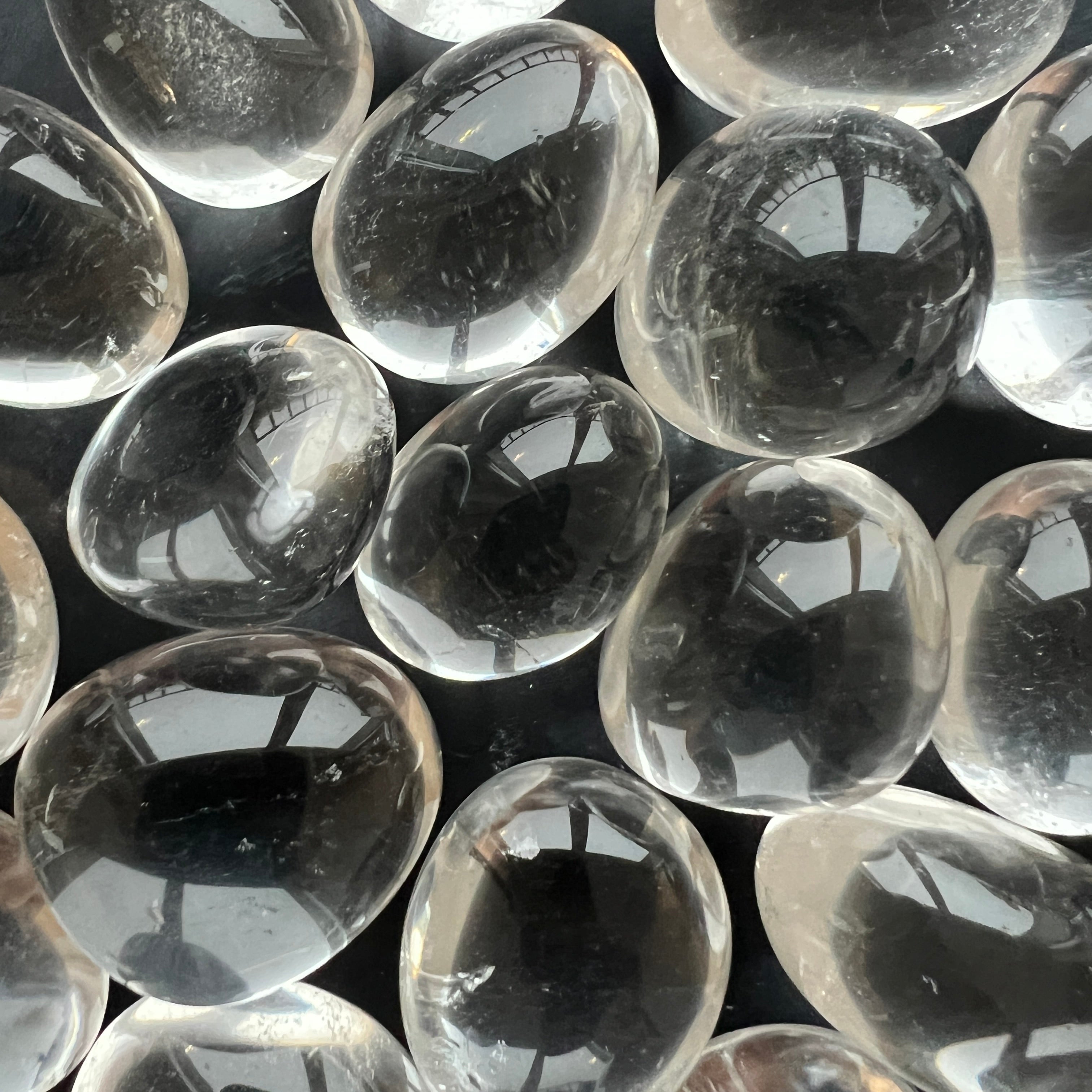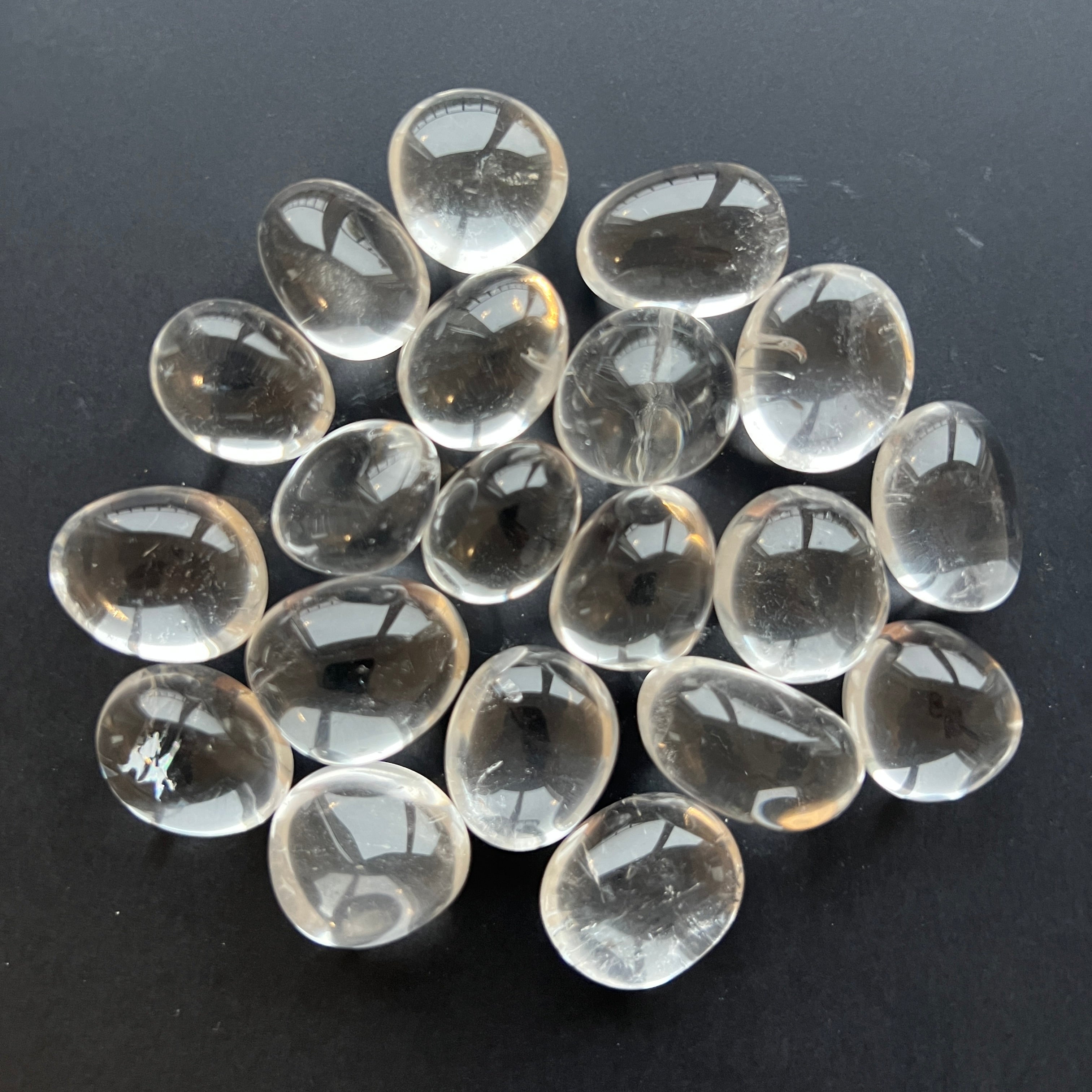 Fragmente de lumină solidificată, netezite de timp și de apă. Fiecare piatră rulată din cuarț incolor ICY poartă o transparență cristalină ce amintește de gheața pură – clară, calmă și plină de liniște interioară. Suprafața netedă, ușor lucioasă, dezvăluie delicate incluziuni naturale și reflexii subtile care dau impresia unei lumini vii, captive în interiorul pietrei.