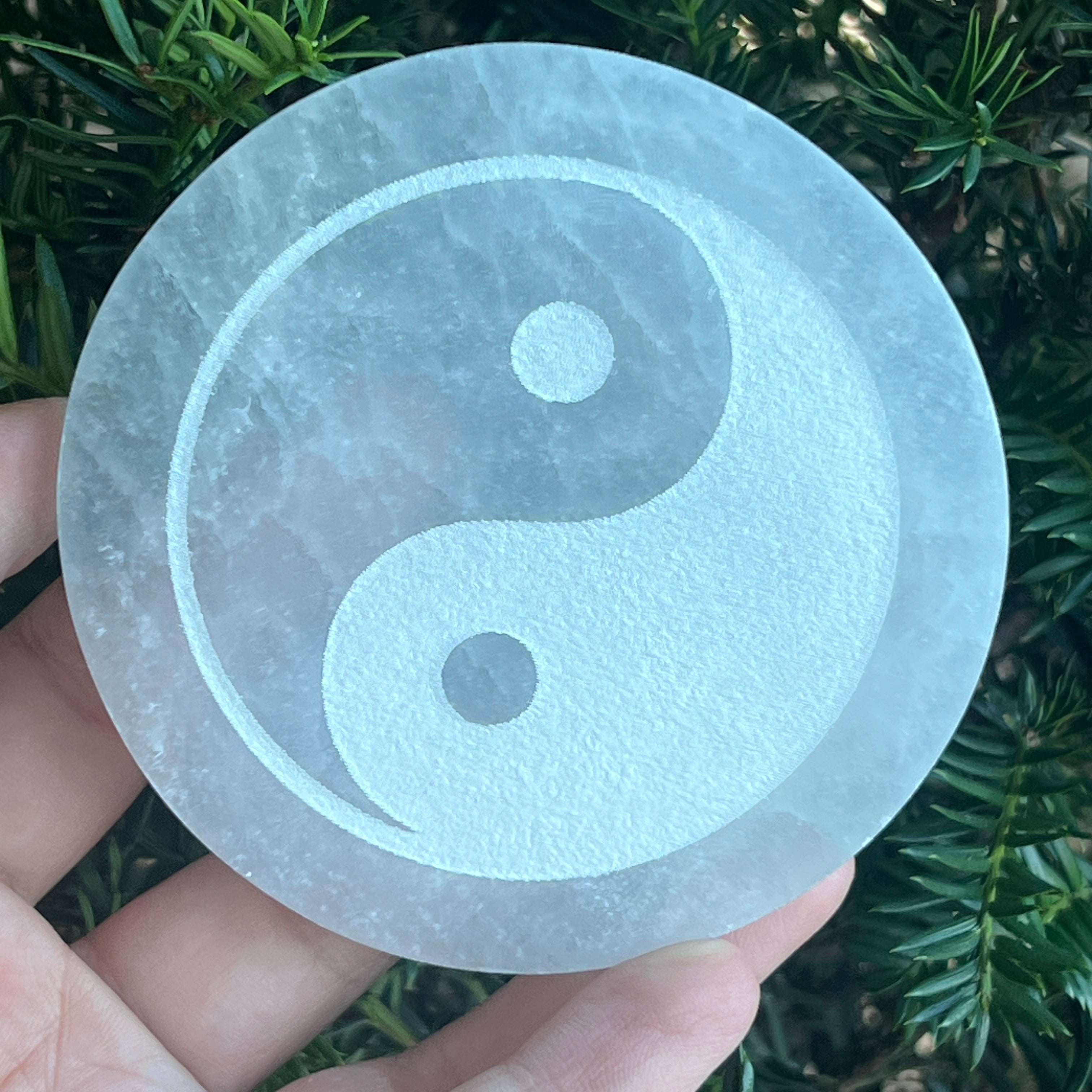 Discul din Selenit cu simbol Yin Yang este o expresie perfectă a echilibrului dintre lumină și umbră, dintre energiile masculine și feminine ale universului. Sculptat manual în selenit natural, acest disc transmite pace, armonie și o profundă stare de centrare.