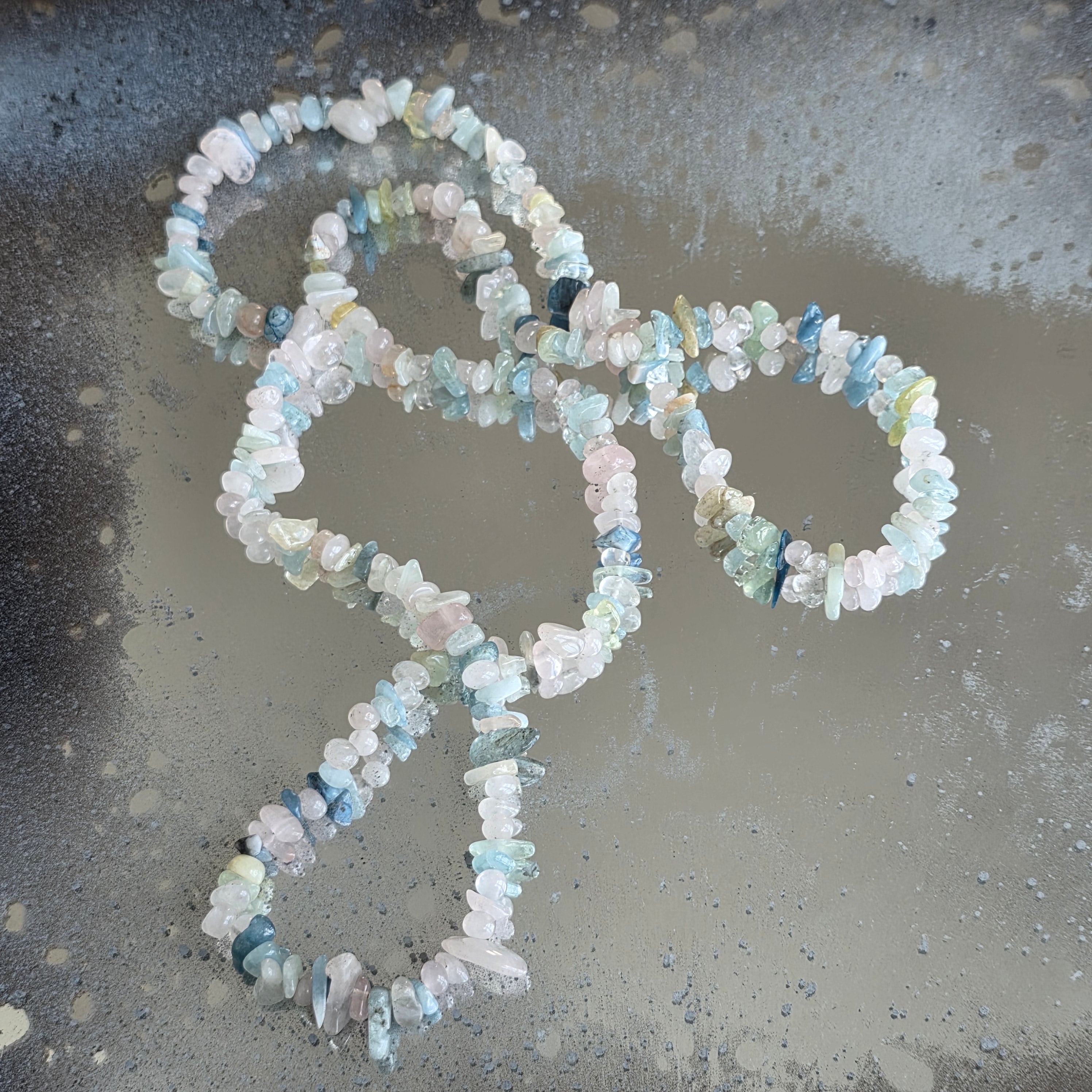 Długi naszyjnik z chipsów morganitu