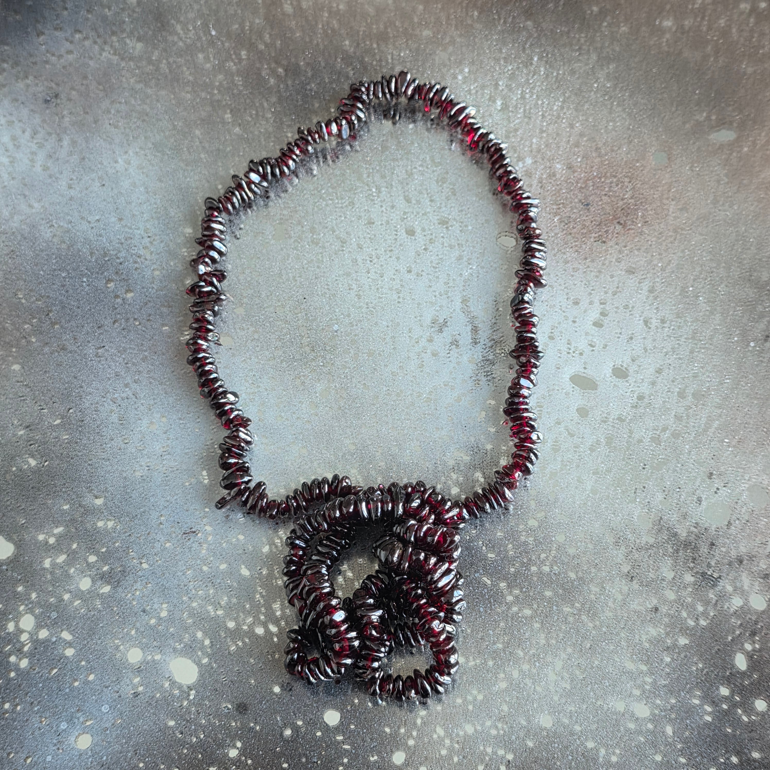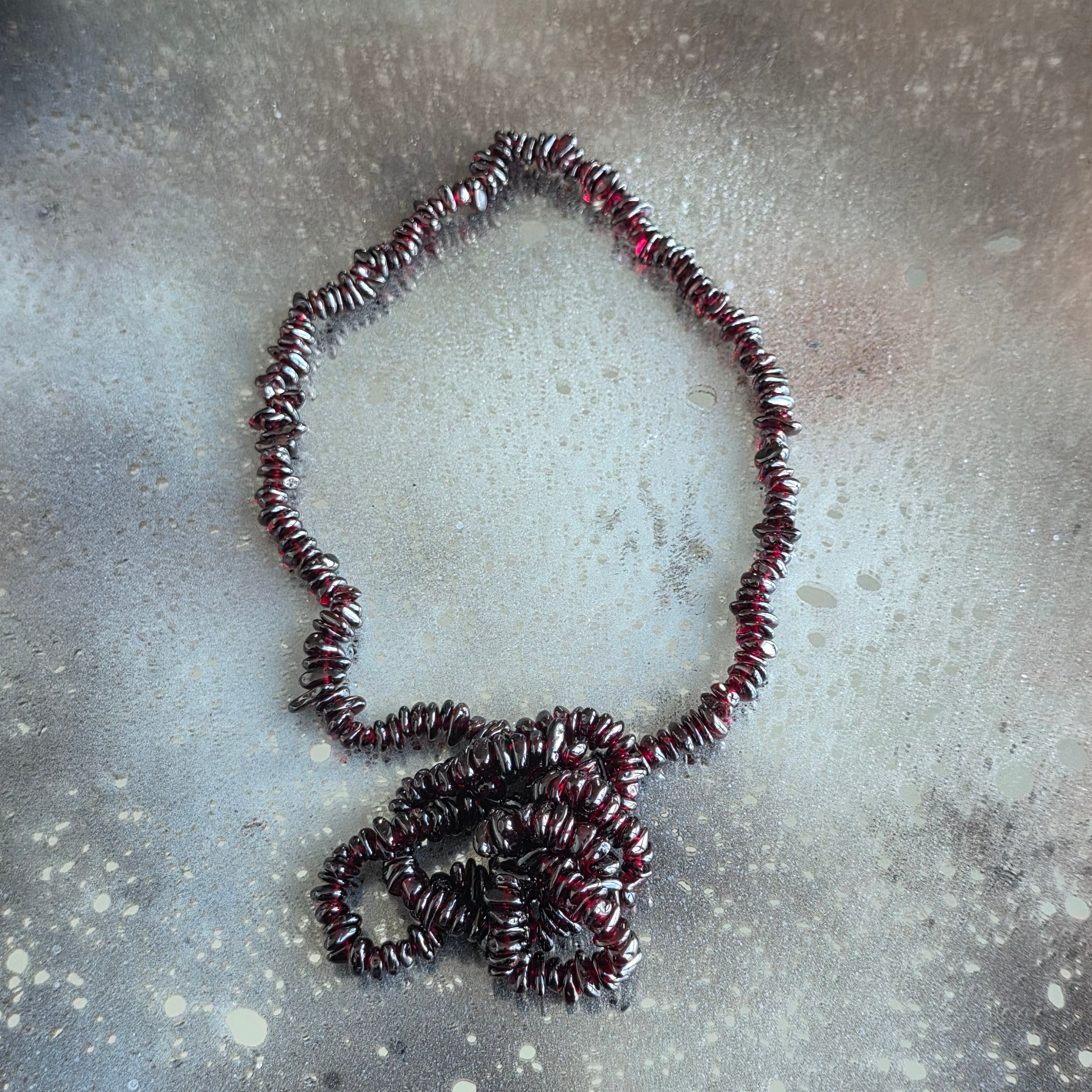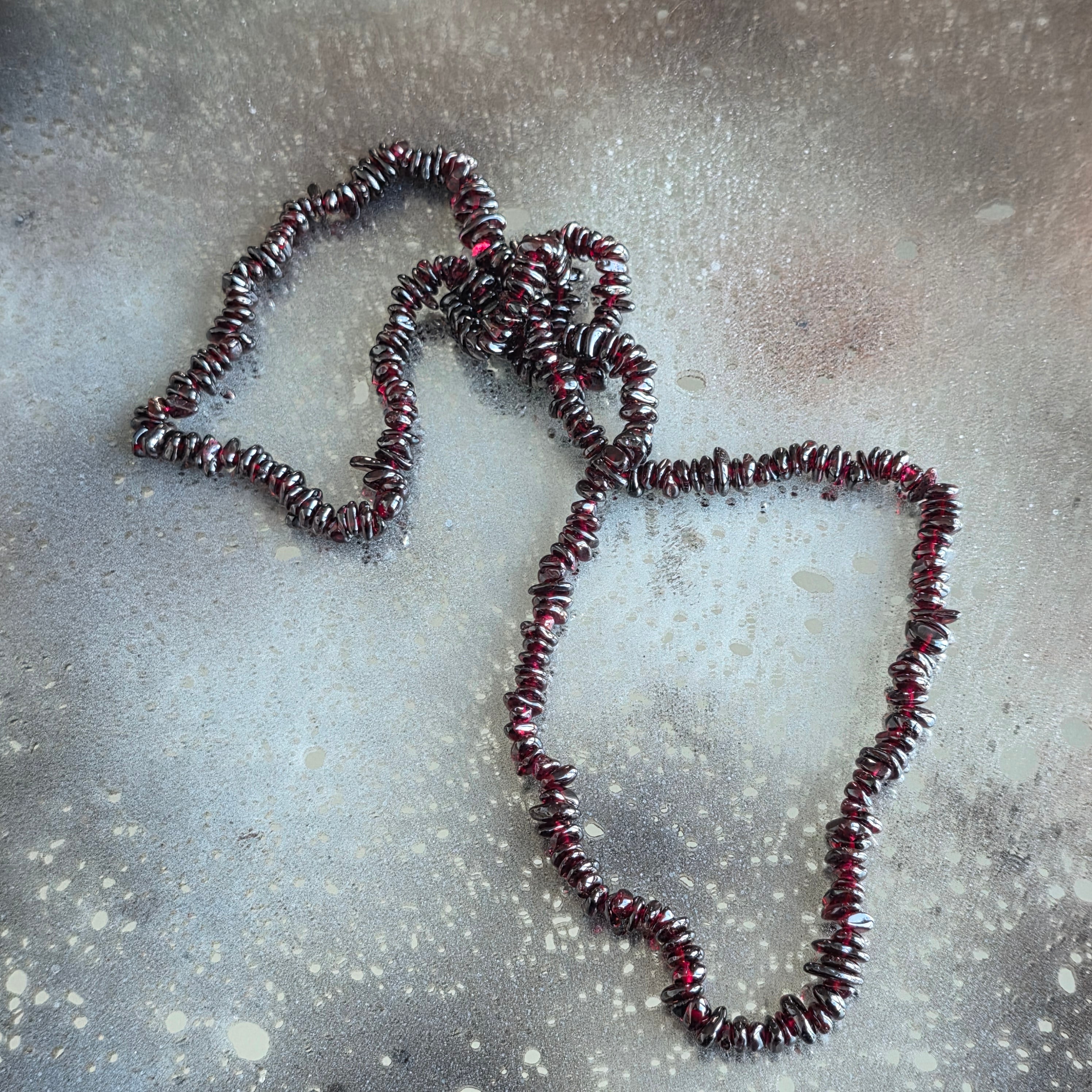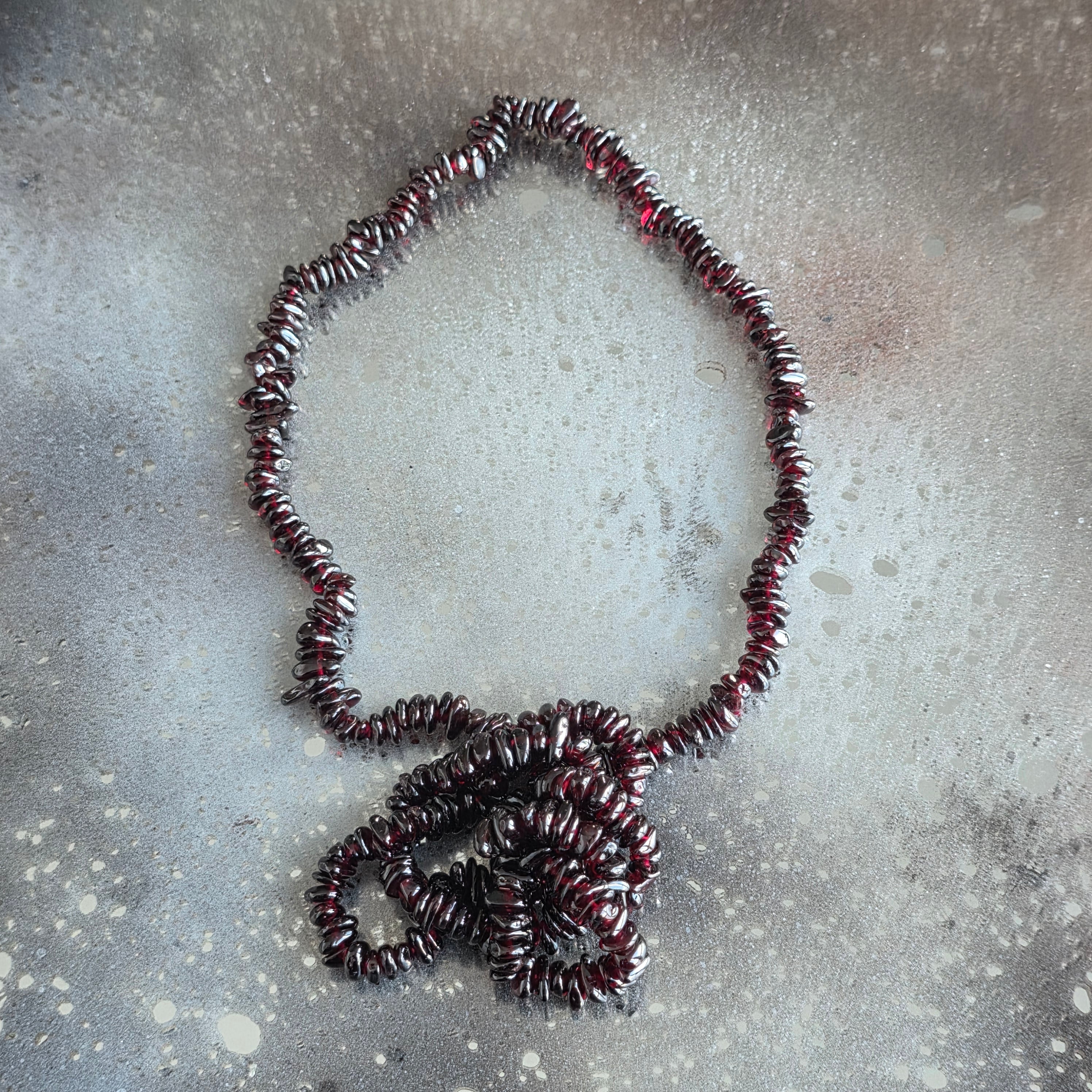 Opis - Długi naszyjnik z granatu w postaci chipsów