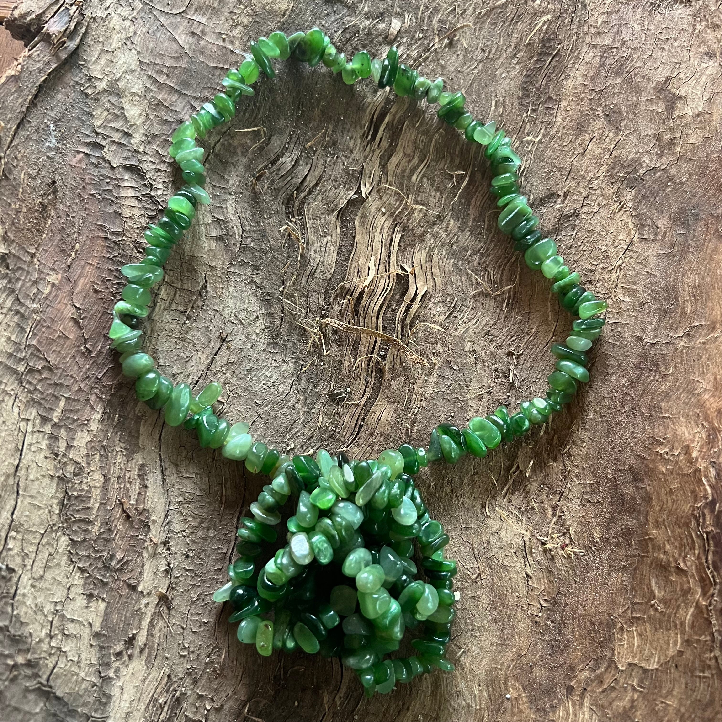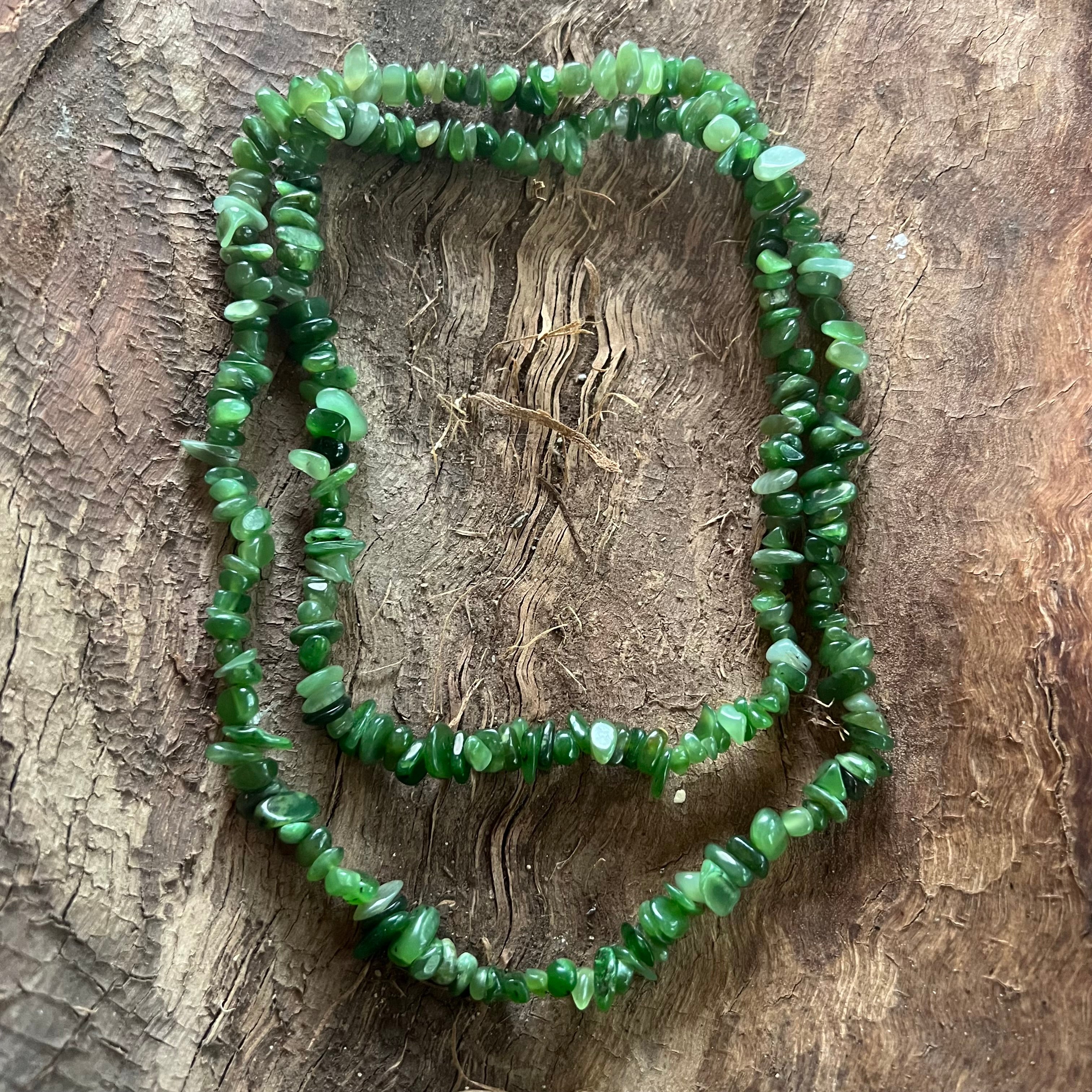 Długi naszyjnik chipsy zielone jadeile, rozmiar około 85 cm