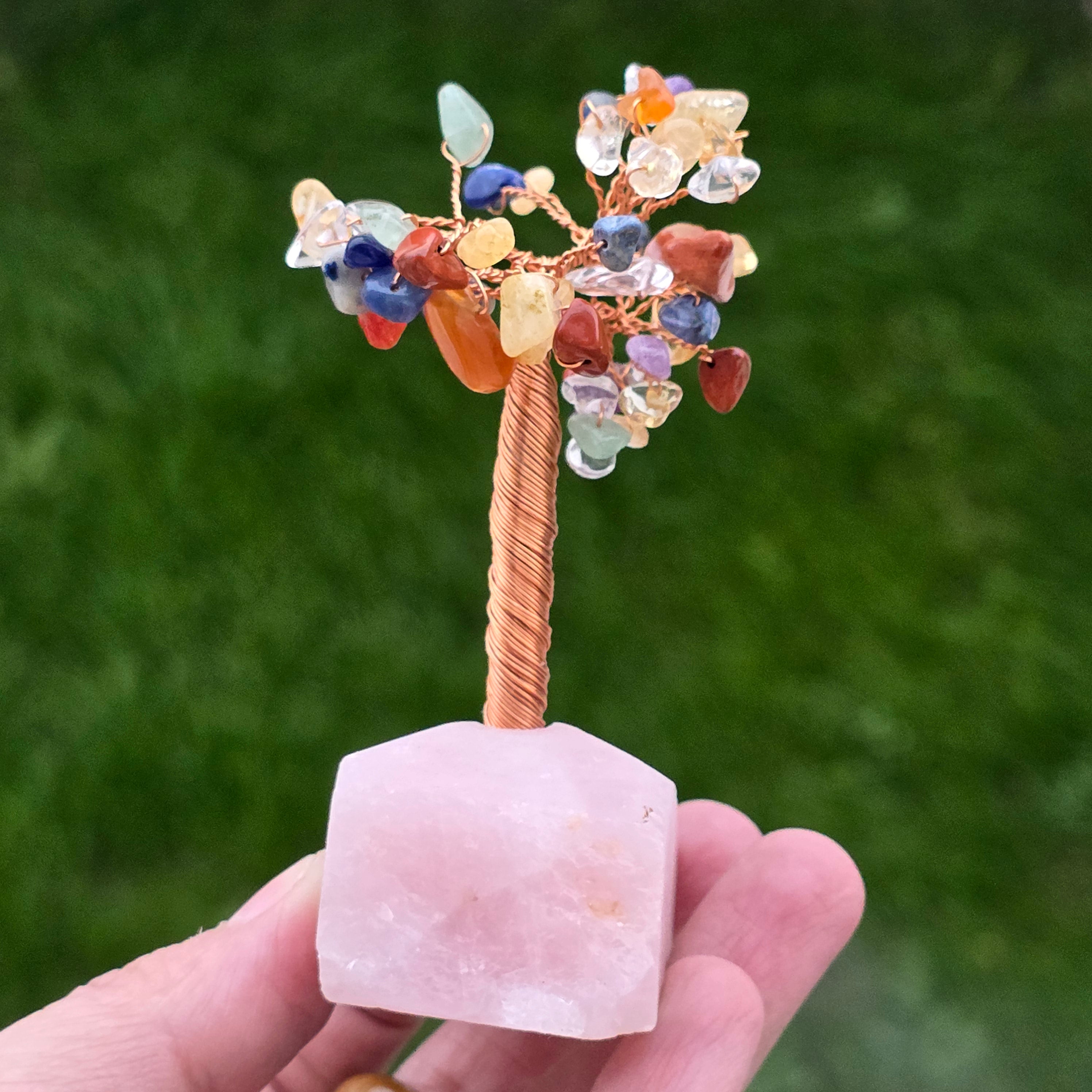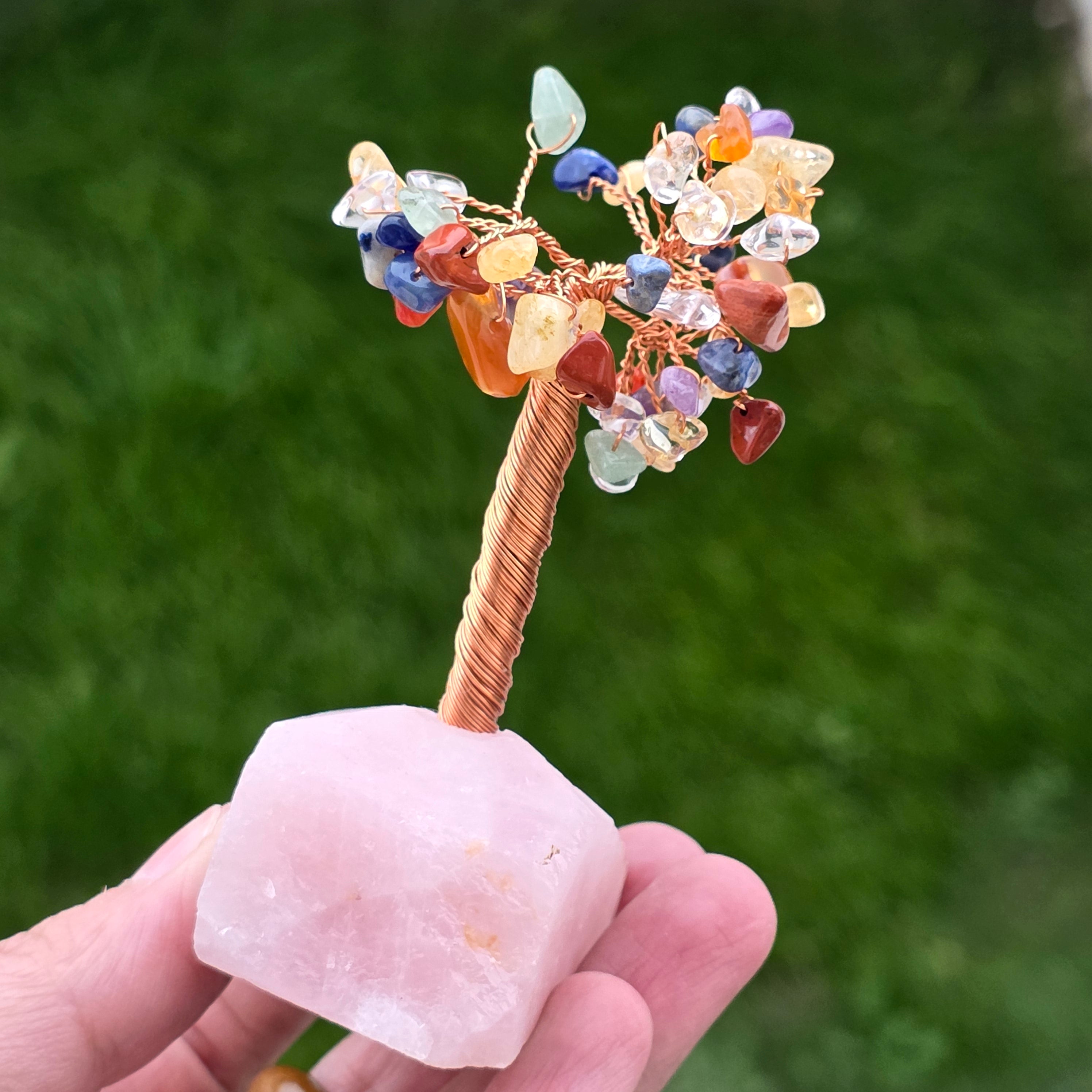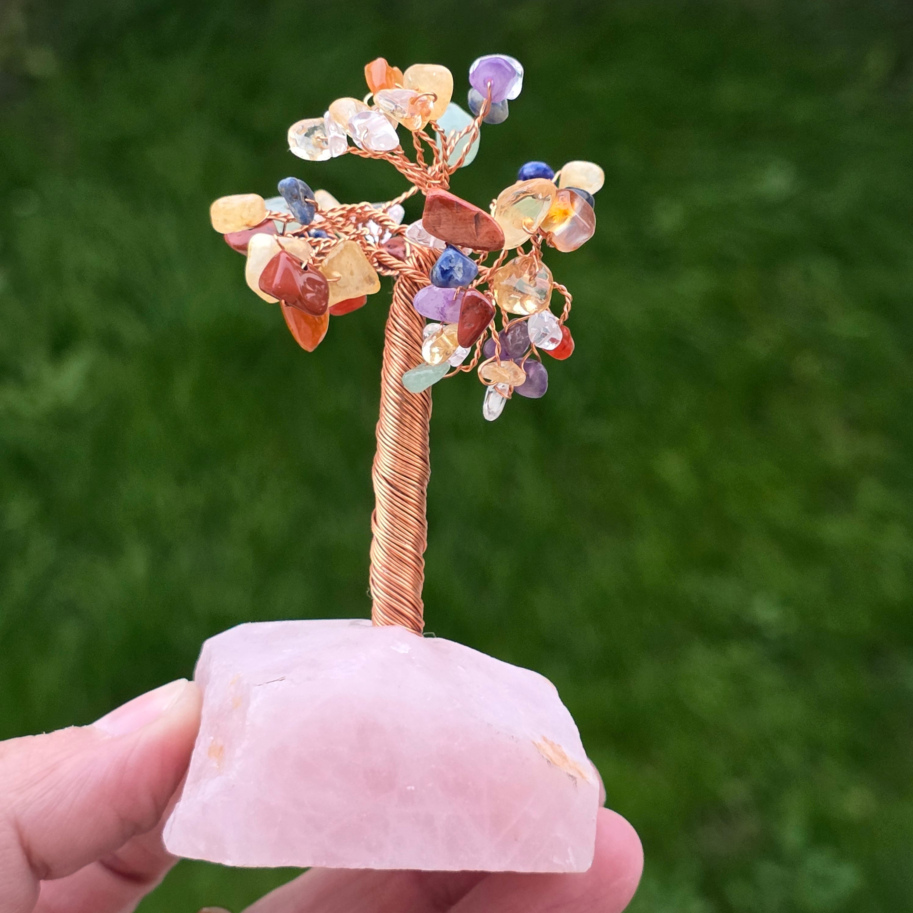 Drzewko feng shui 7 czakr na bazie różowego kwarcu – rozmiar S