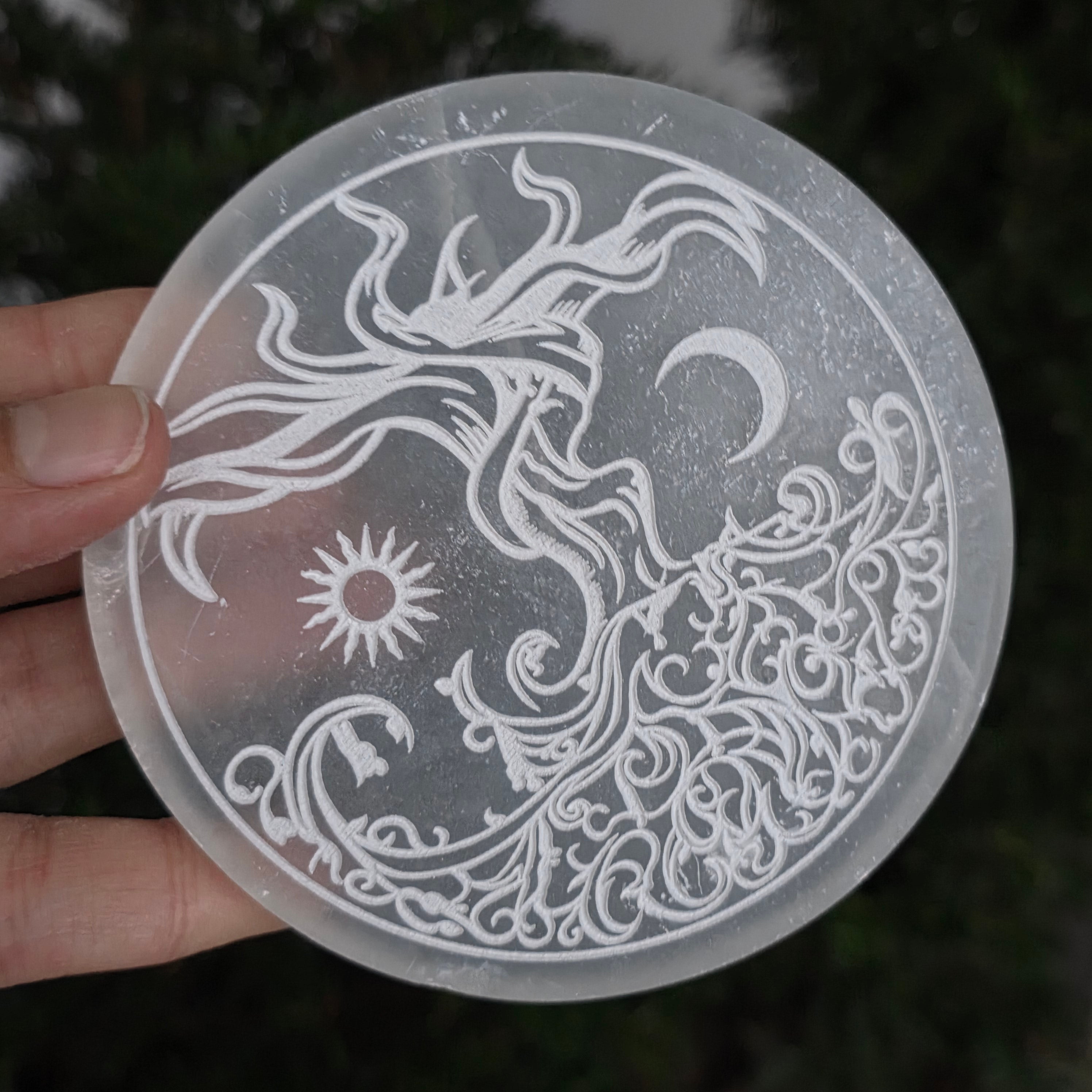 Selenit jest często używany jako kryształ wsparcia w praktykach duchowych, pomagając otworzyć i aktywować czakry 6 i 7, które są związane z intuicją, jasnowidzem i połączeniem na poziomie duchowym.