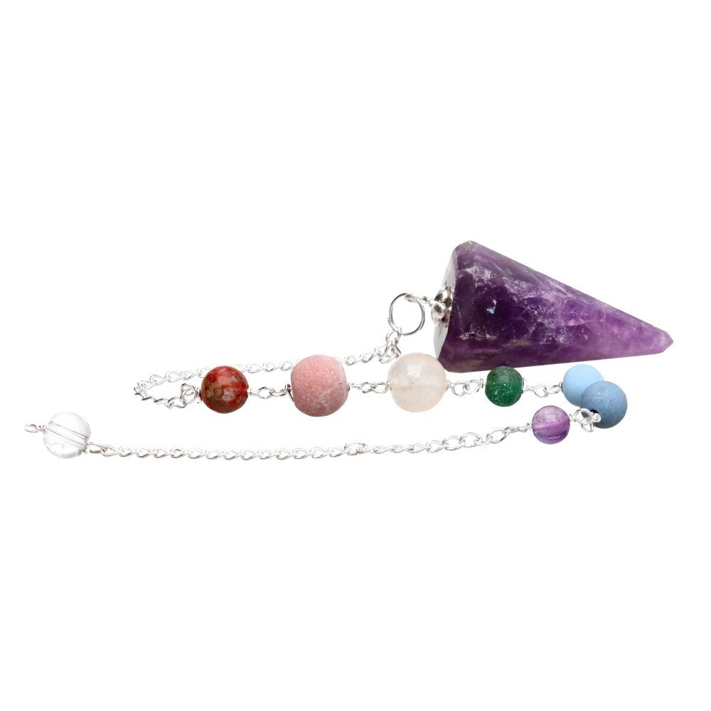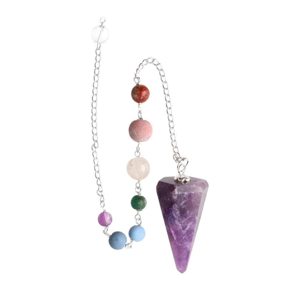 Fasetowane wahadło ametystowe z 7 czakrami i kulą kwarcową