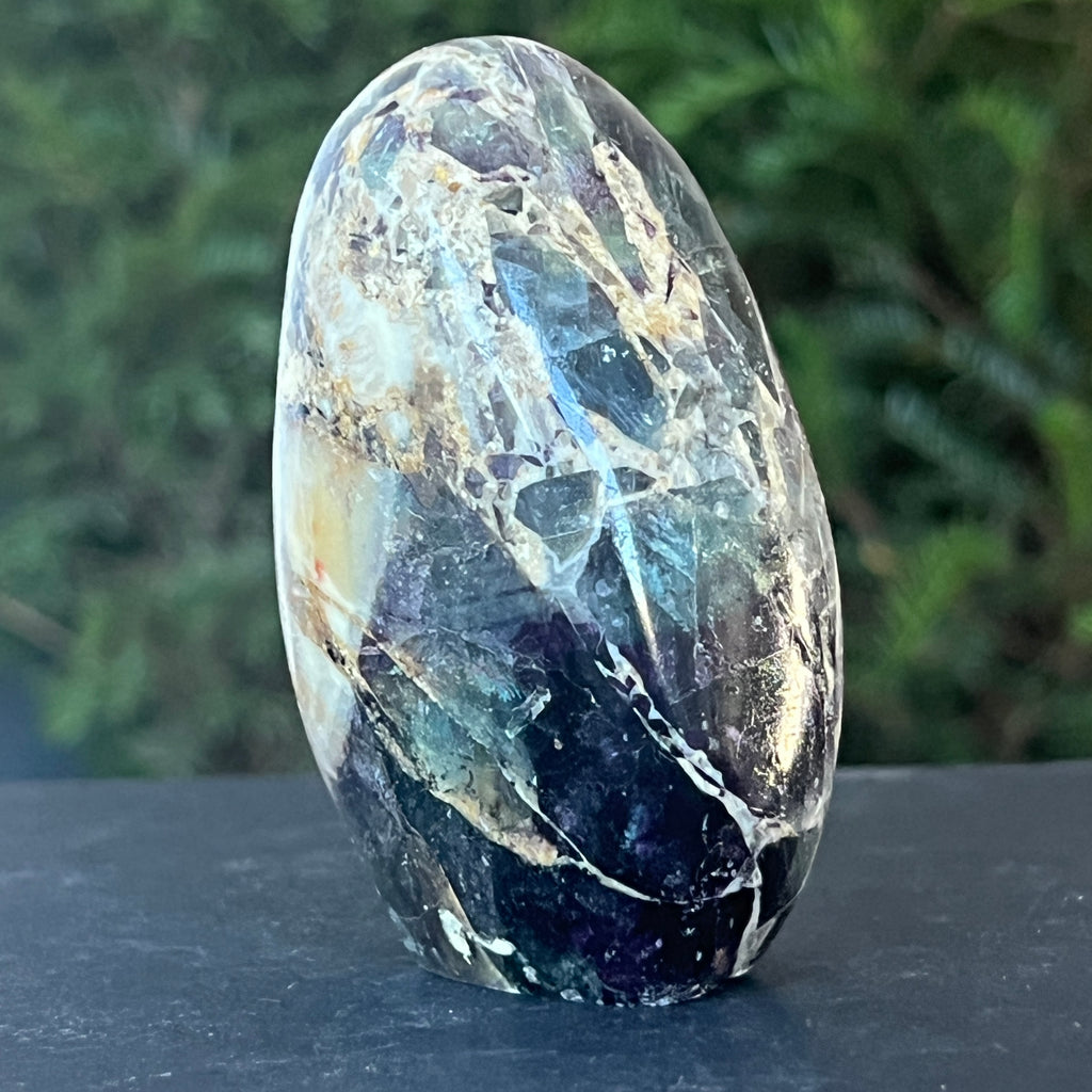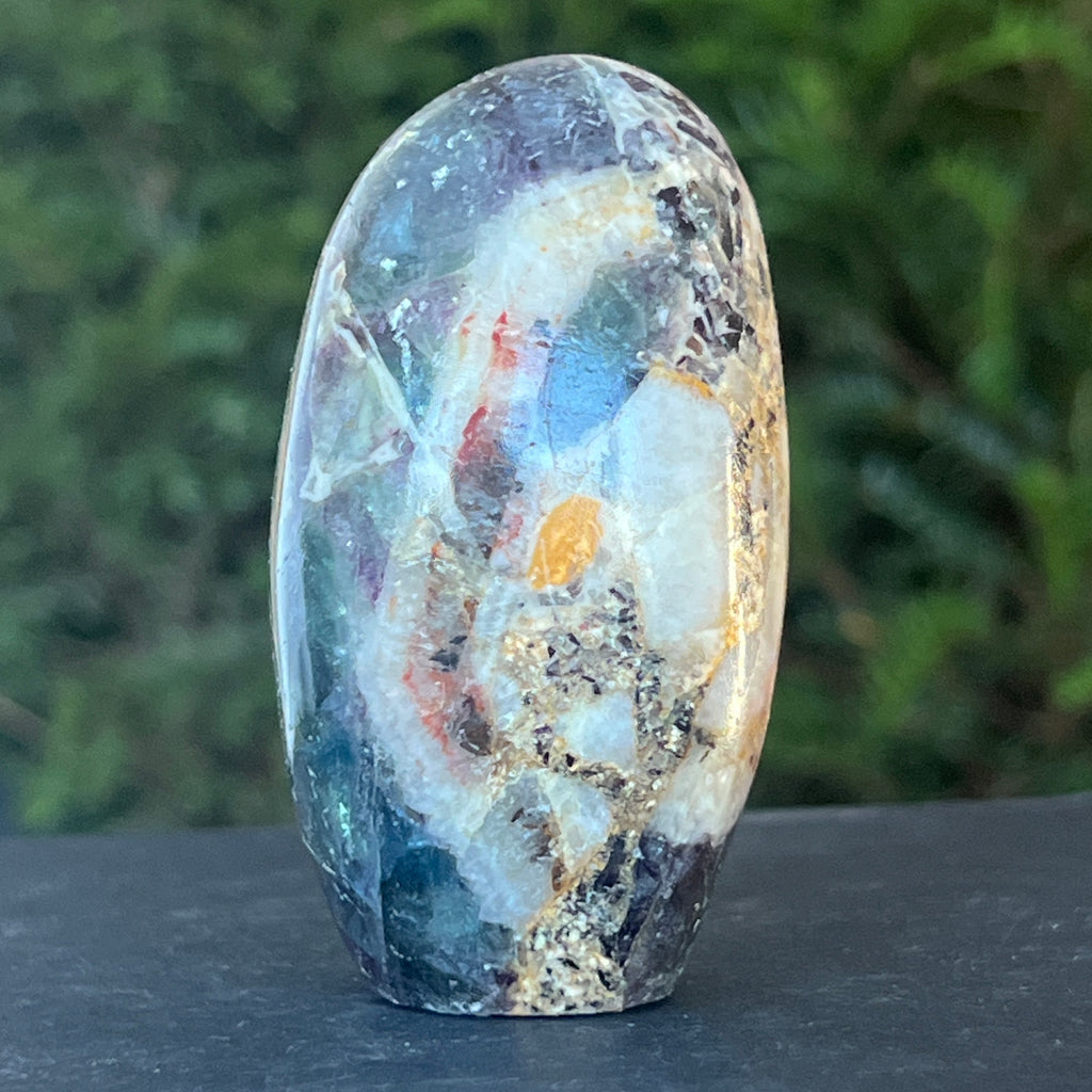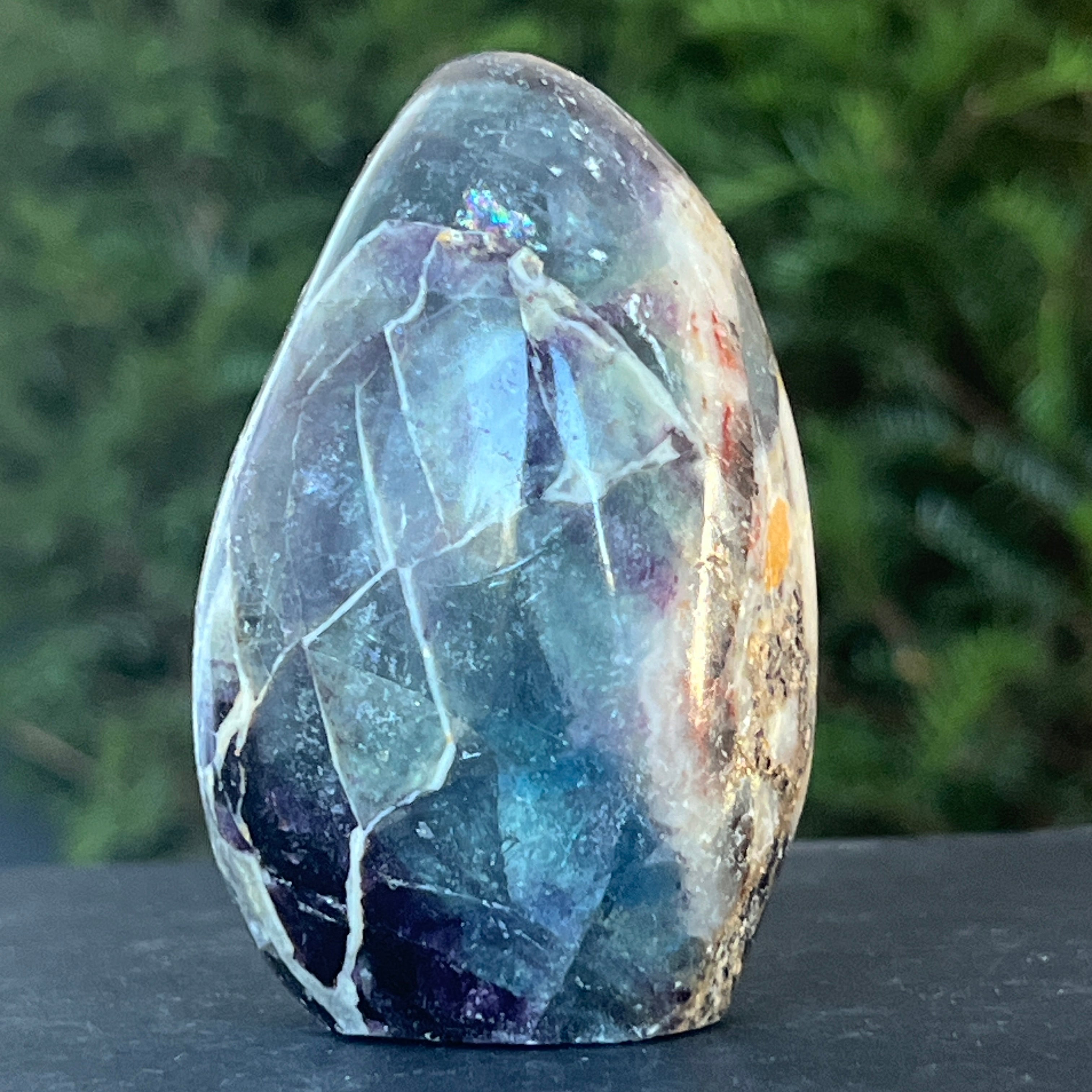 Fluoritul curcubeu ajuat la echilibrarea si armonizarea energiei din jur si este de multe ori folosit pentru a vedea situatiile din mai multe unghiuri de vedere si a ne extinde perspectivele.