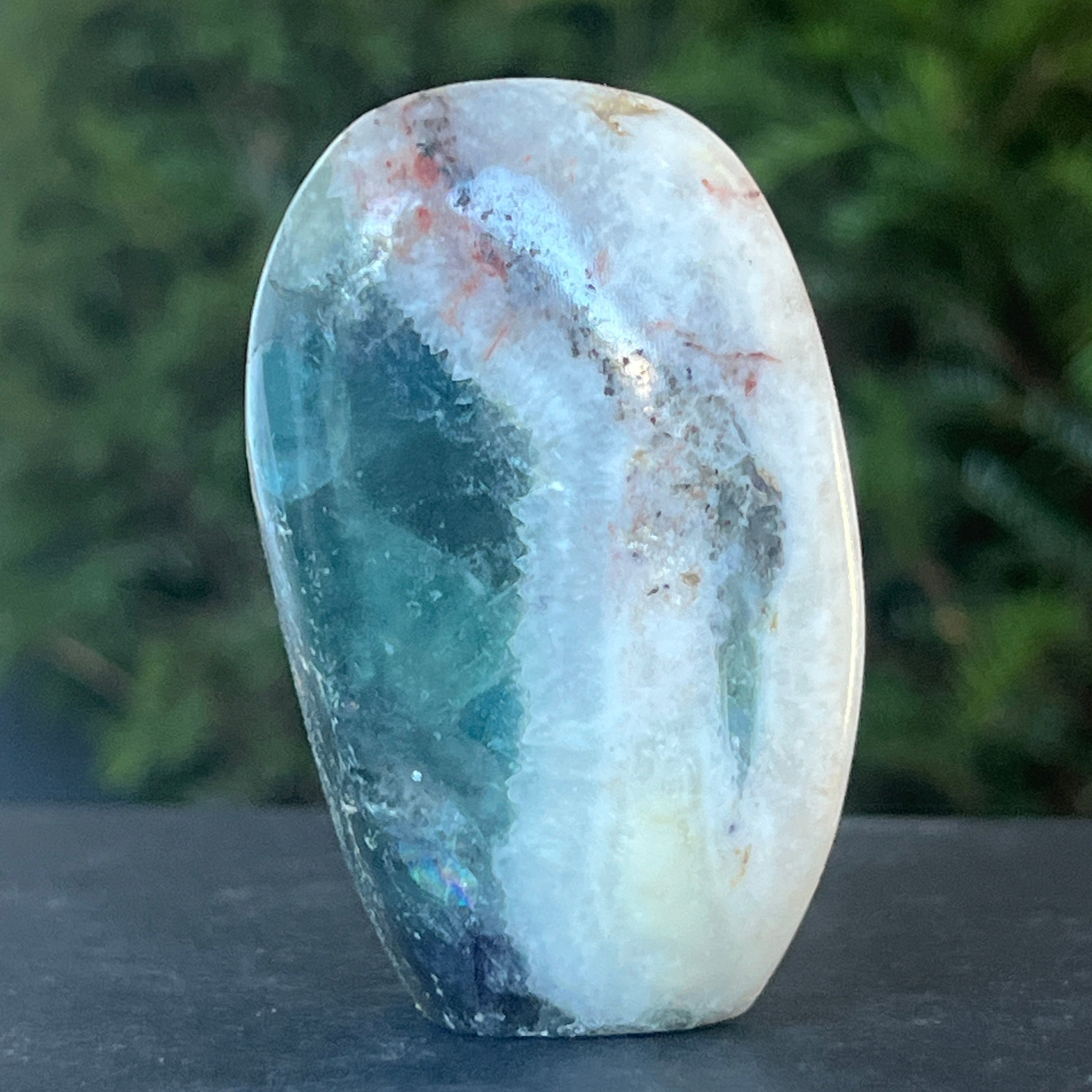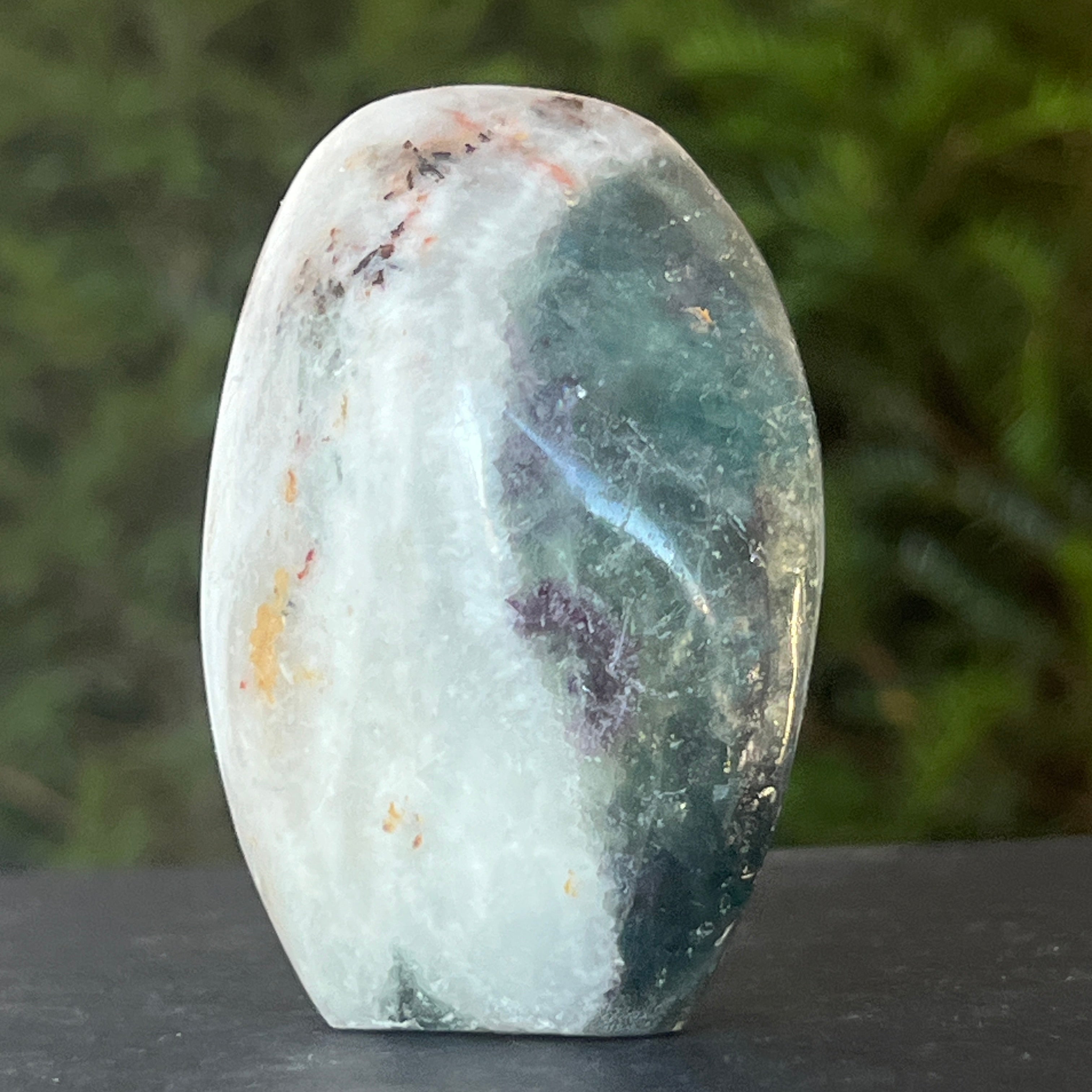 Fluoritul curcubeu ajuat la echilibrarea si armonizarea energiei din jur si este de multe ori folosit pentru a vedea situatiile din mai multe unghiuri de vedere si a ne extinde perspectivele.
