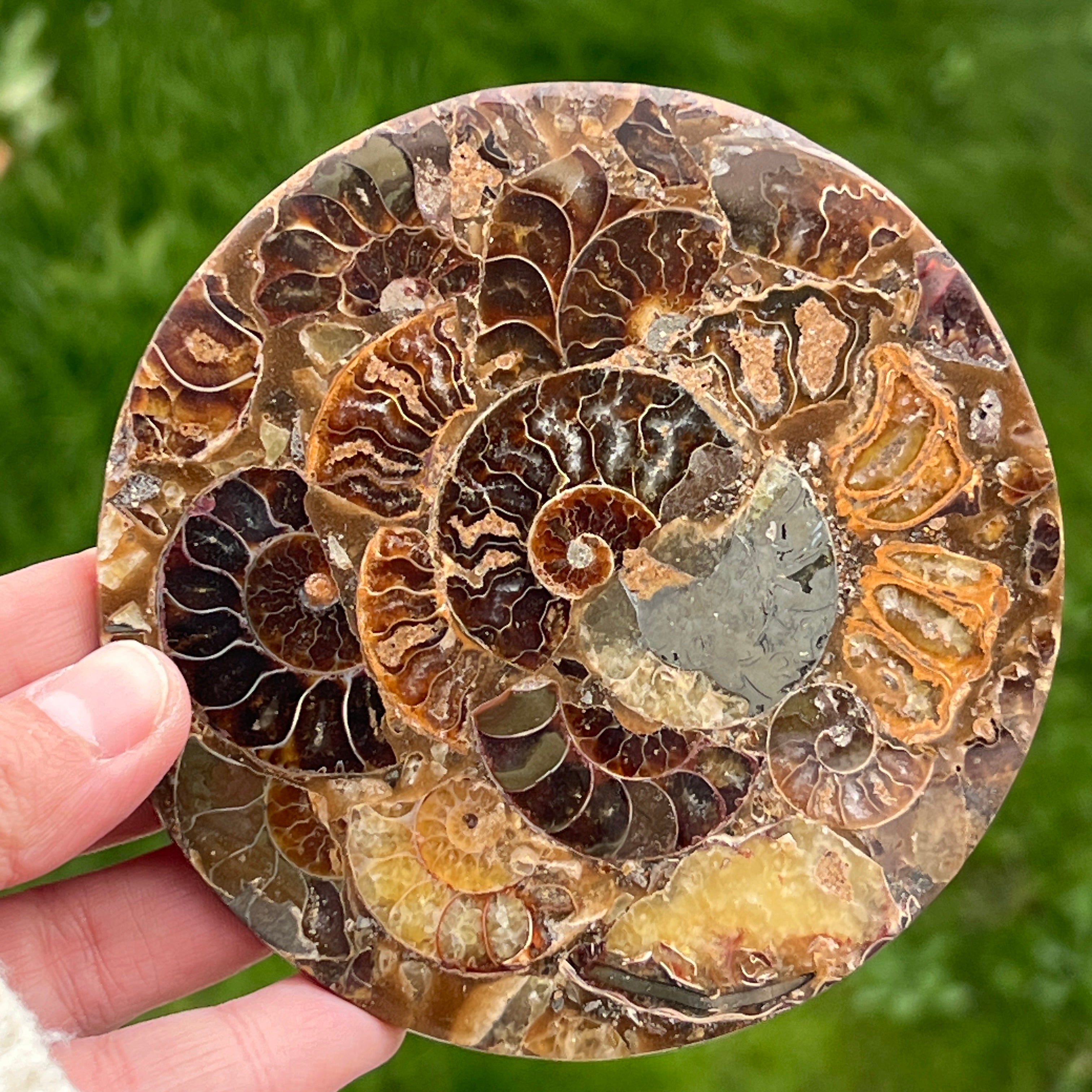 Kryształy kopalne zapalenia amonowego wykonane są z autentycznych skamielin amonitu. Te skamieliny mogą mieć różne rozmiary i ozdoby, w zależności od gatunku i okresu geologicznego, w którym żyli.