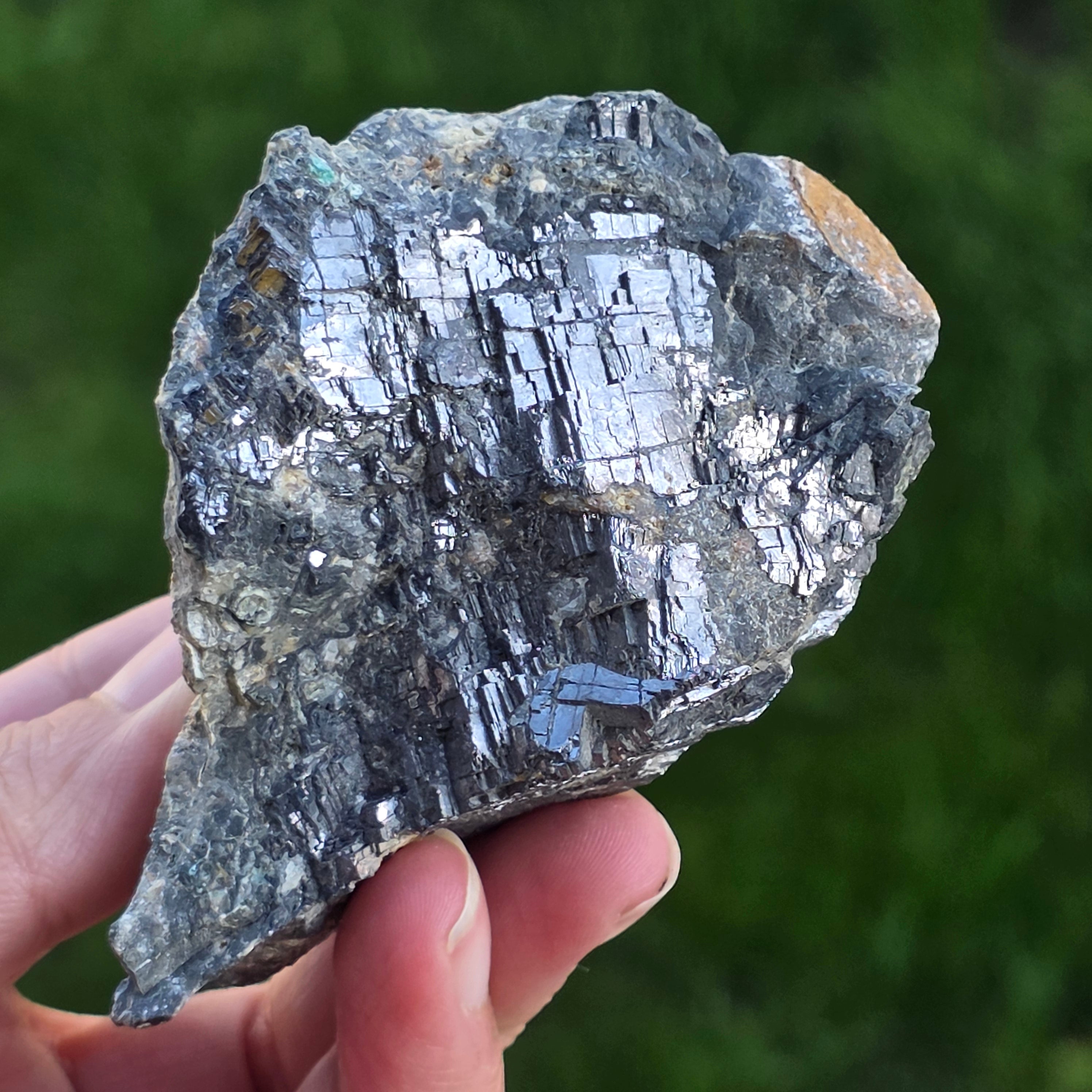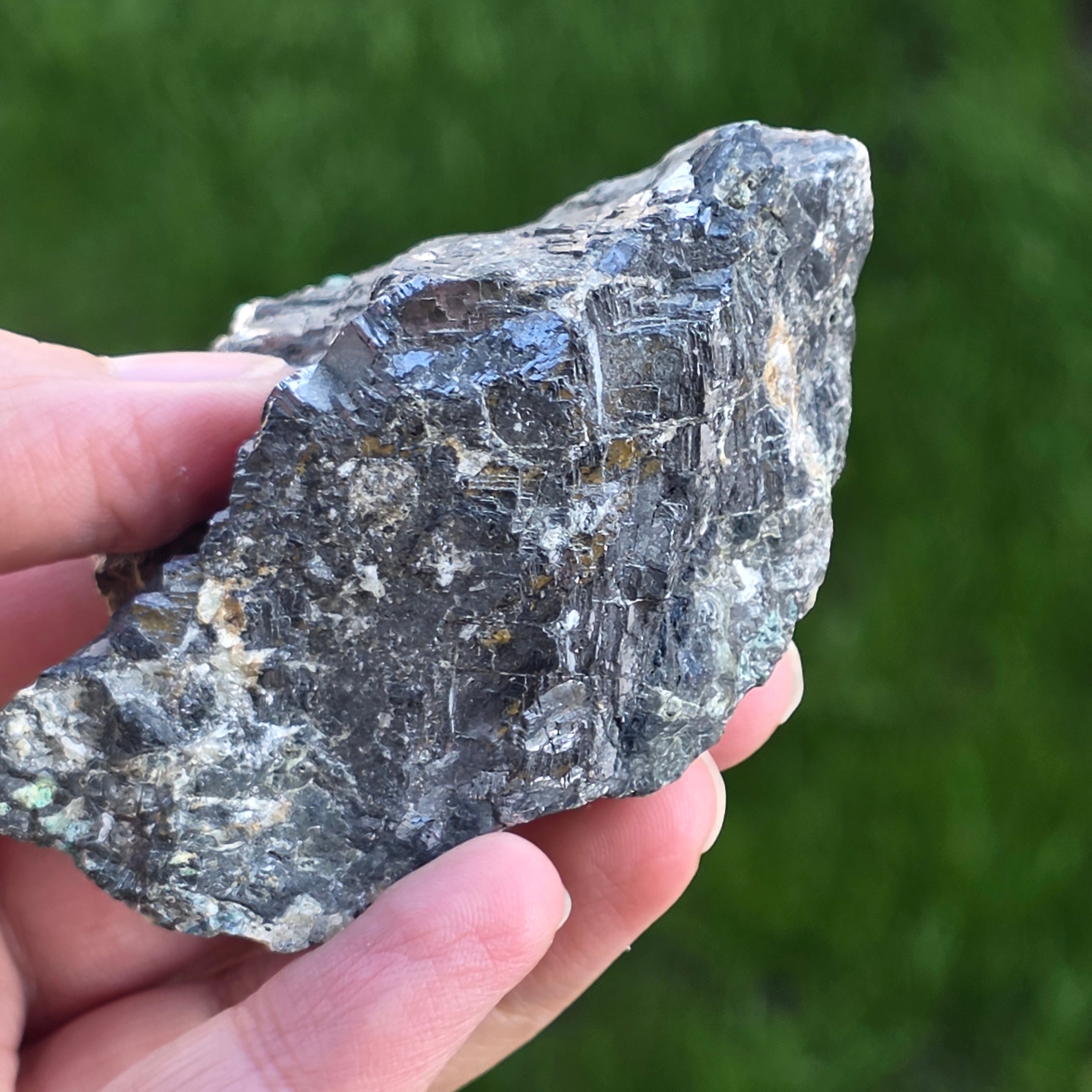 Galena Silver to spektakularny minerał, rozpoznany ze jej intensywnego metalicznego połysku i idealnej struktury sześciennej. Ten siarczk ołowiowy (PBS) jest jednym z najbardziej gęstych naturalnych minerałów i może zawierać cenne srebrne ślady.