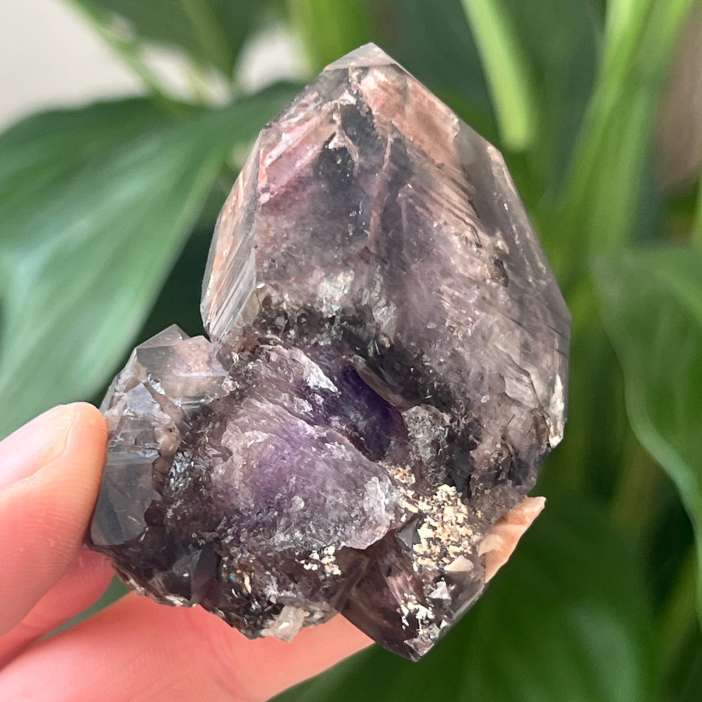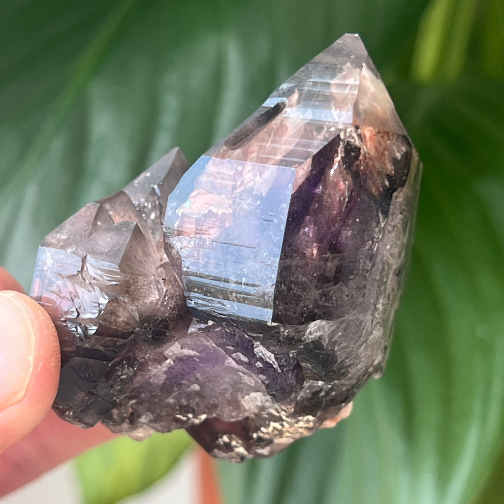 Ten wyjątkowy ametyst, który narodził się w sercu masywu Brandberg w zachodniej Namibii, pochodzi z jednego z najbardziej niezwykłych obszarów geologicznych Afryki. Góry Brandberg, ciało plutoniczne powstałe ponad 130 milionów lat temu, skrywają rzadkie geody, w których kryształy kwarcu rosły w wyjątkowych warunkach hydrotermalnych. Rezultatem jest ametyst o rzadkiej urodzie, łączący intensywne odcienie fioletu z obszarami przezroczystego lub dymnego kwarcu, a wszystko to w jednym krysztale.