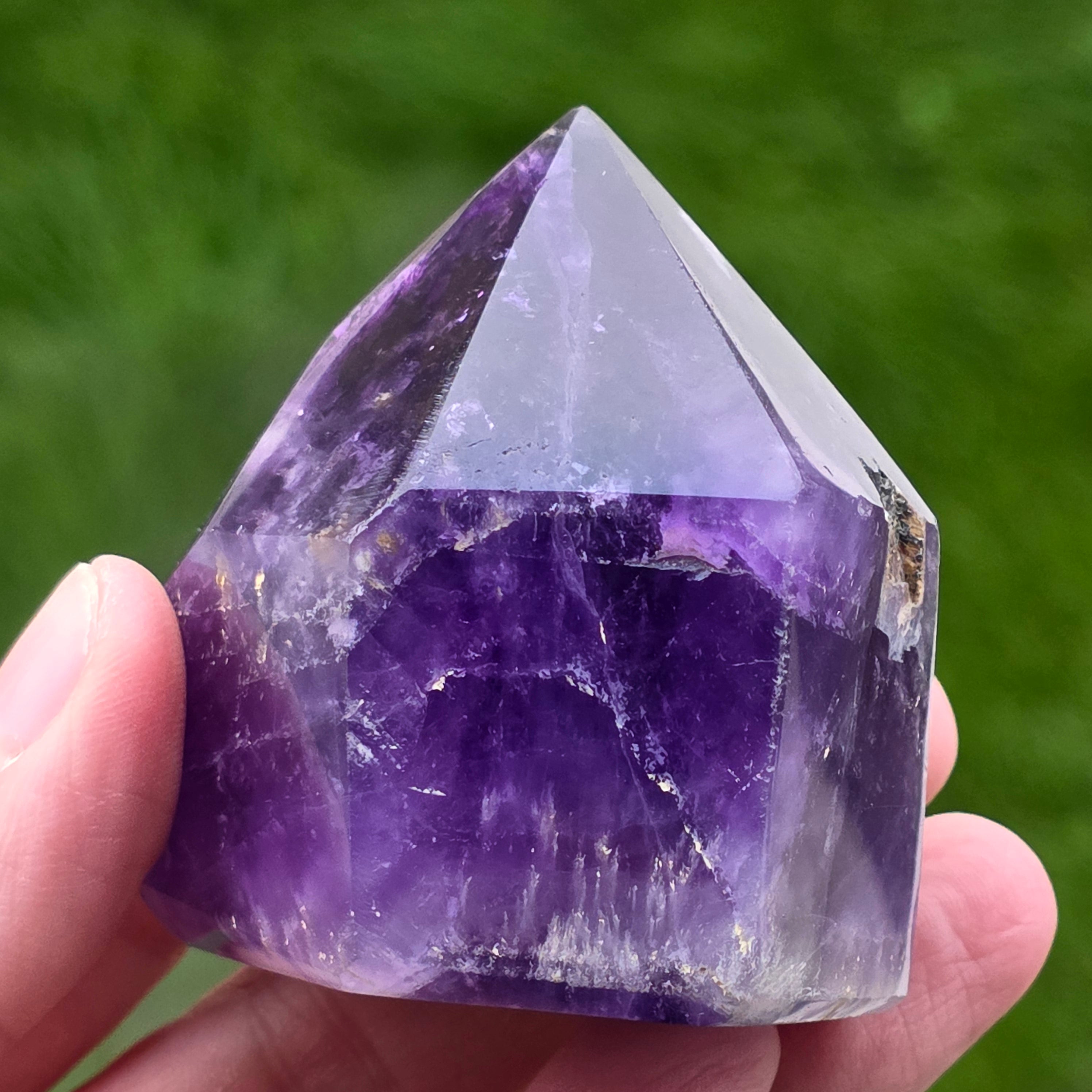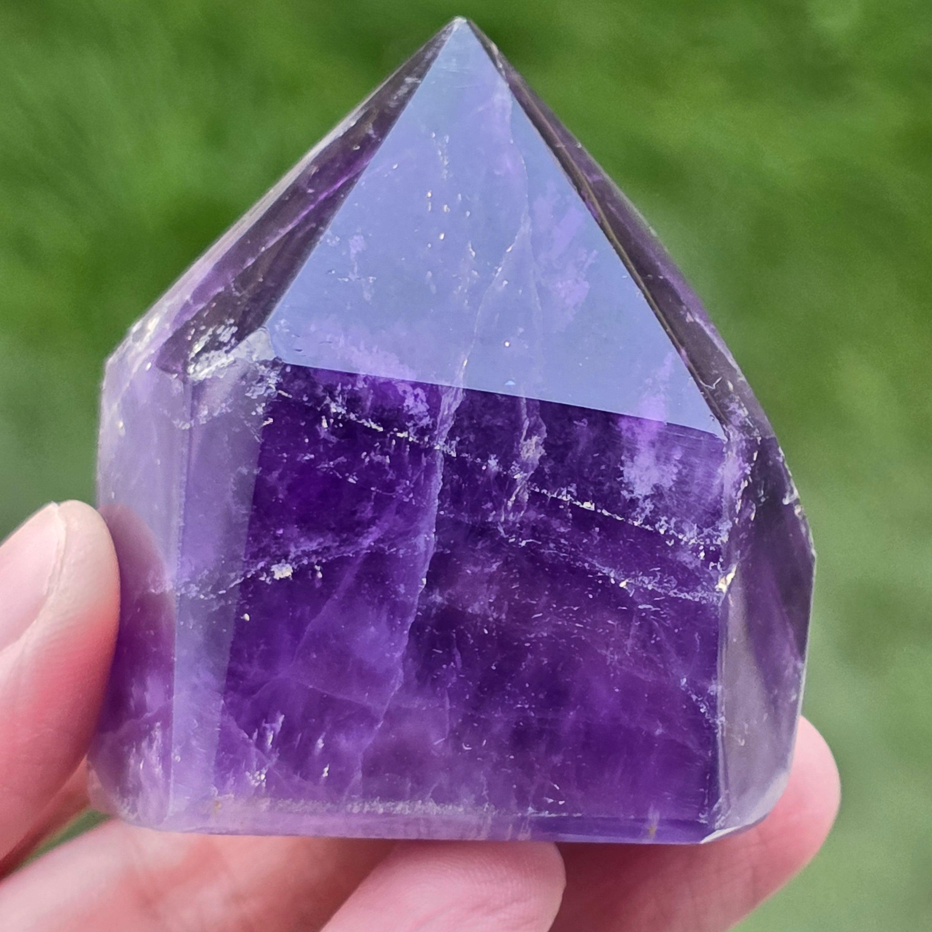 Ametyst Chevron może być używany w medytacji, jako biżuteria lub do nadania naturalnego i eleganckiego wyglądu domowi lub biuru.