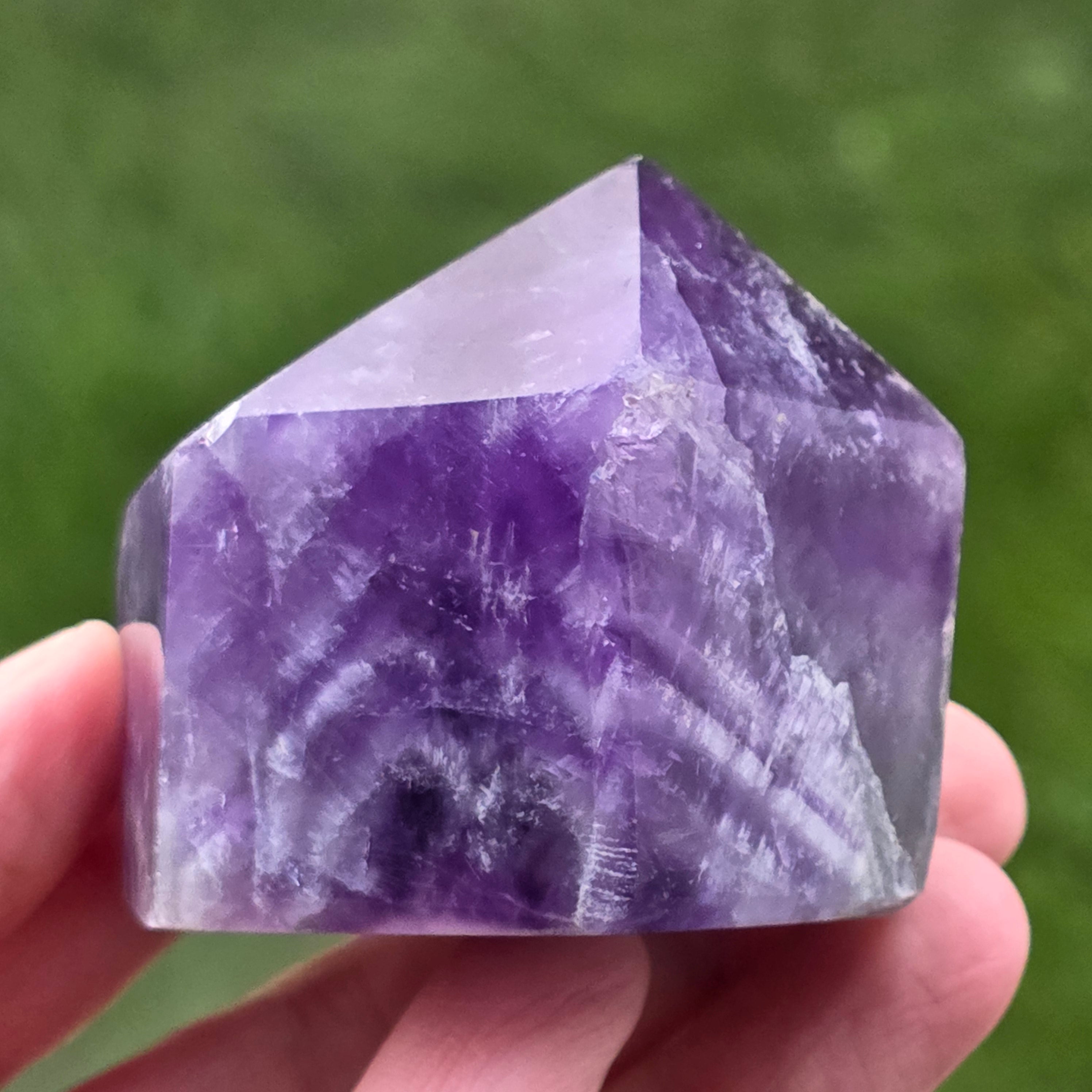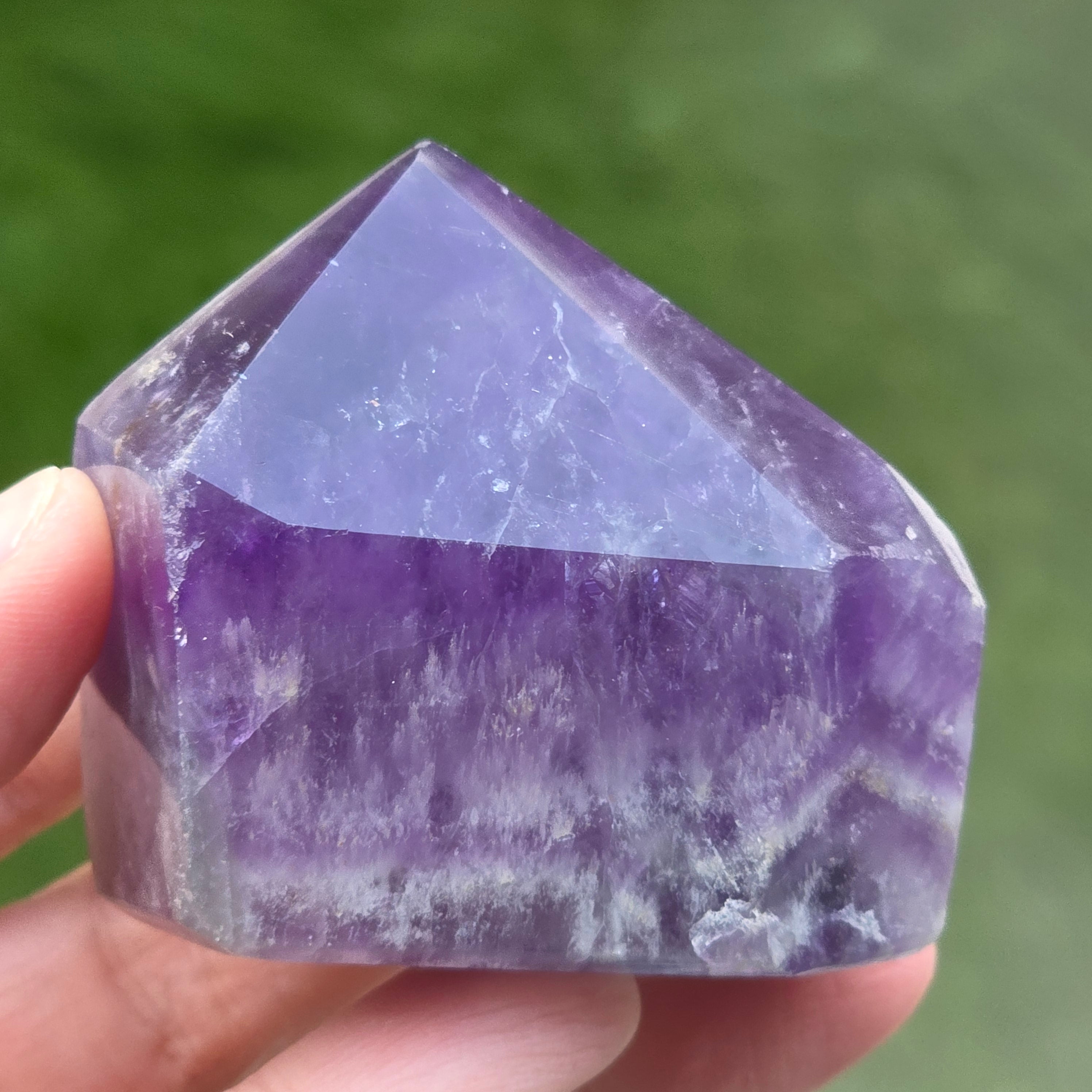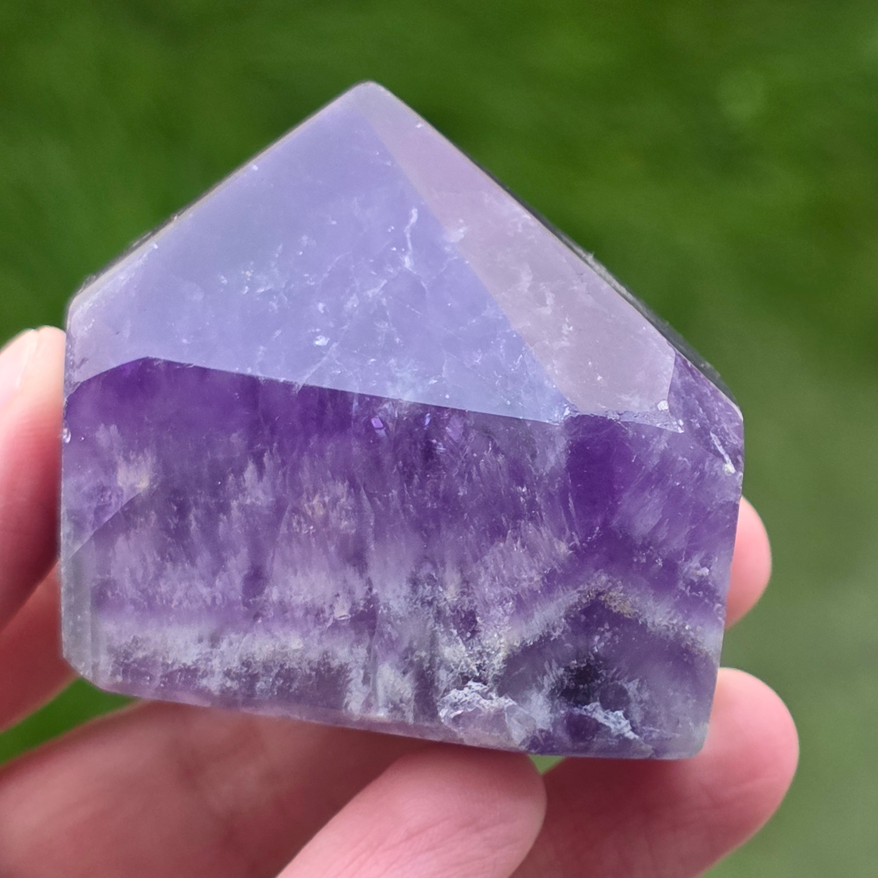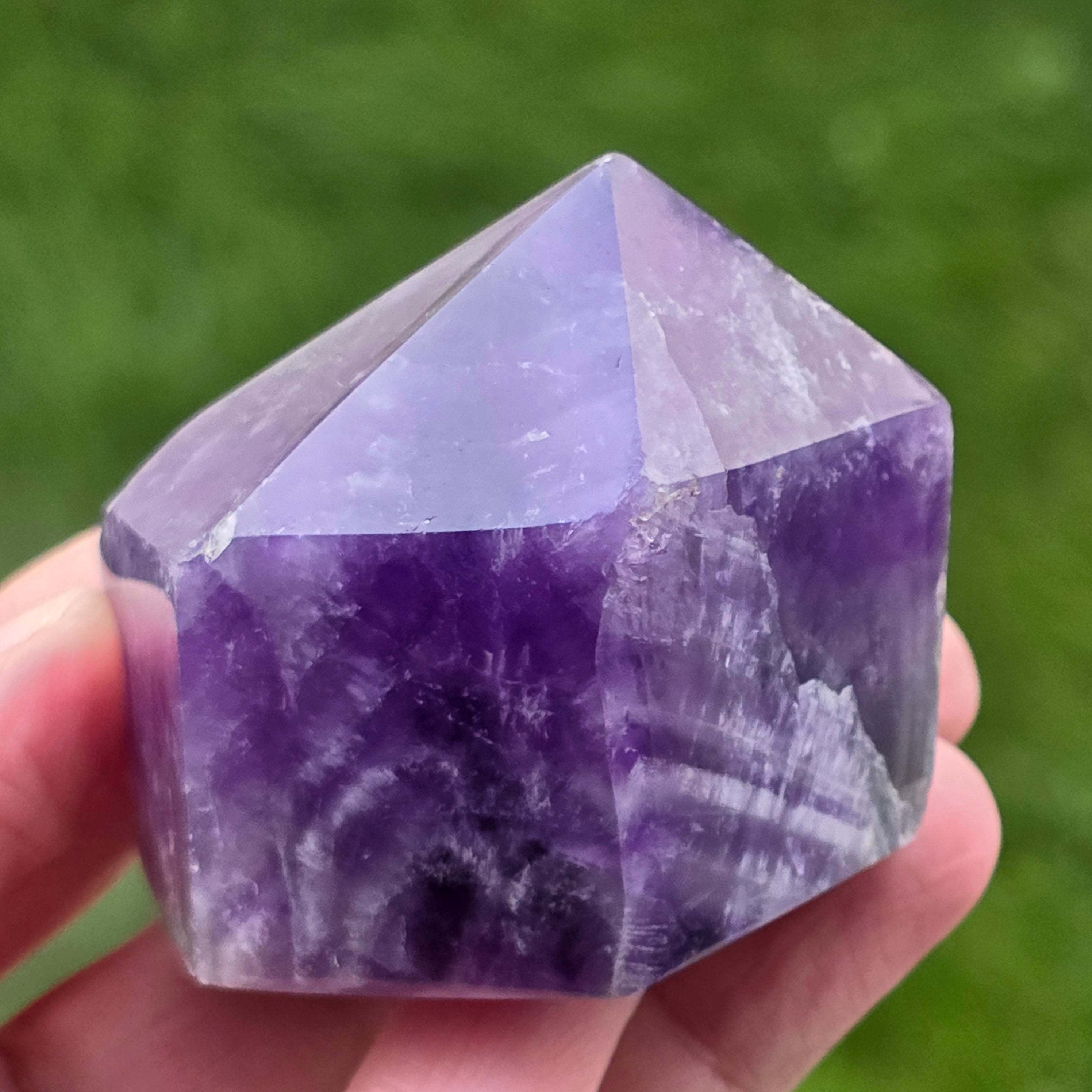 Ametyst Chevron może być używany w medytacji, jako biżuteria lub do nadania naturalnego i eleganckiego wyglądu domowi lub biuru.