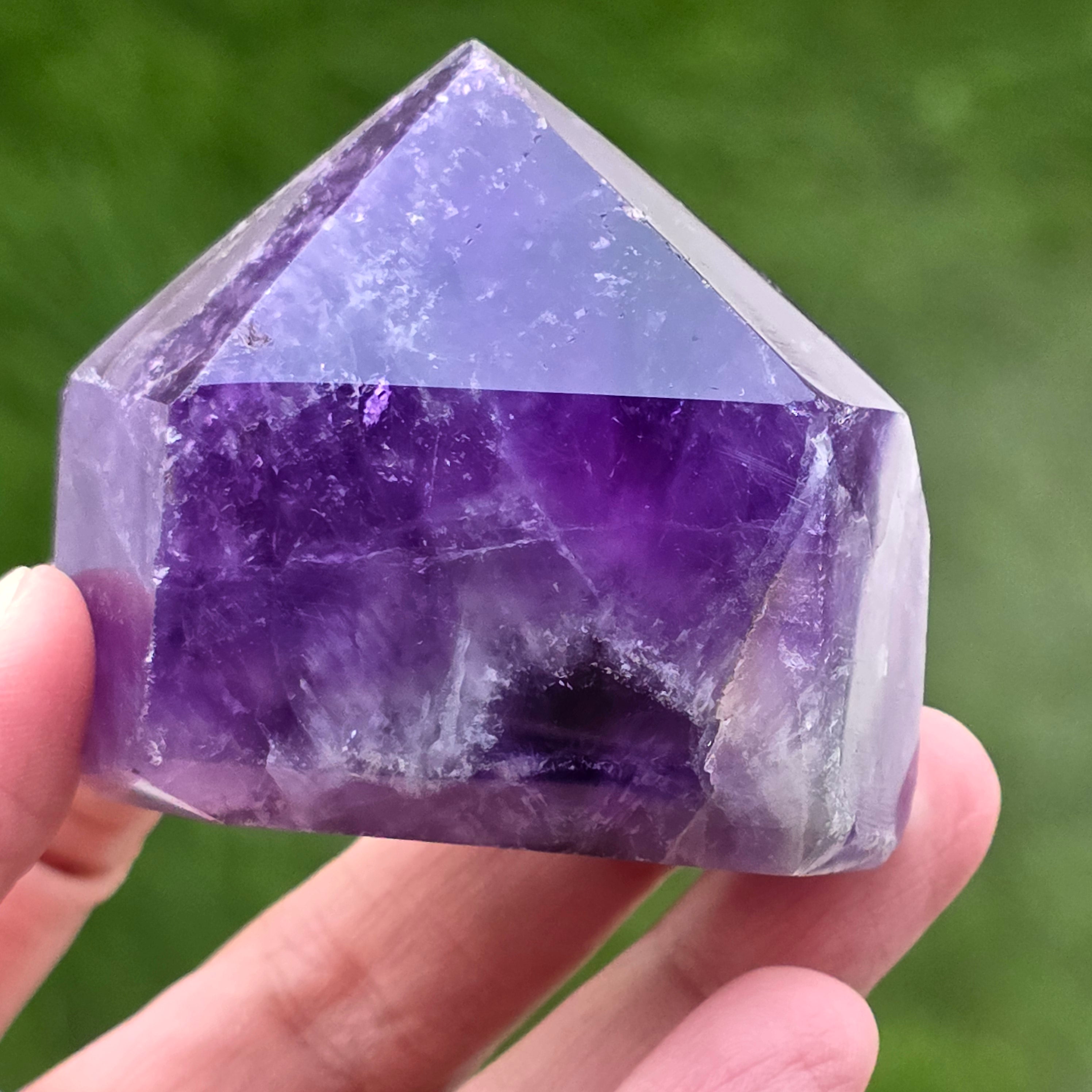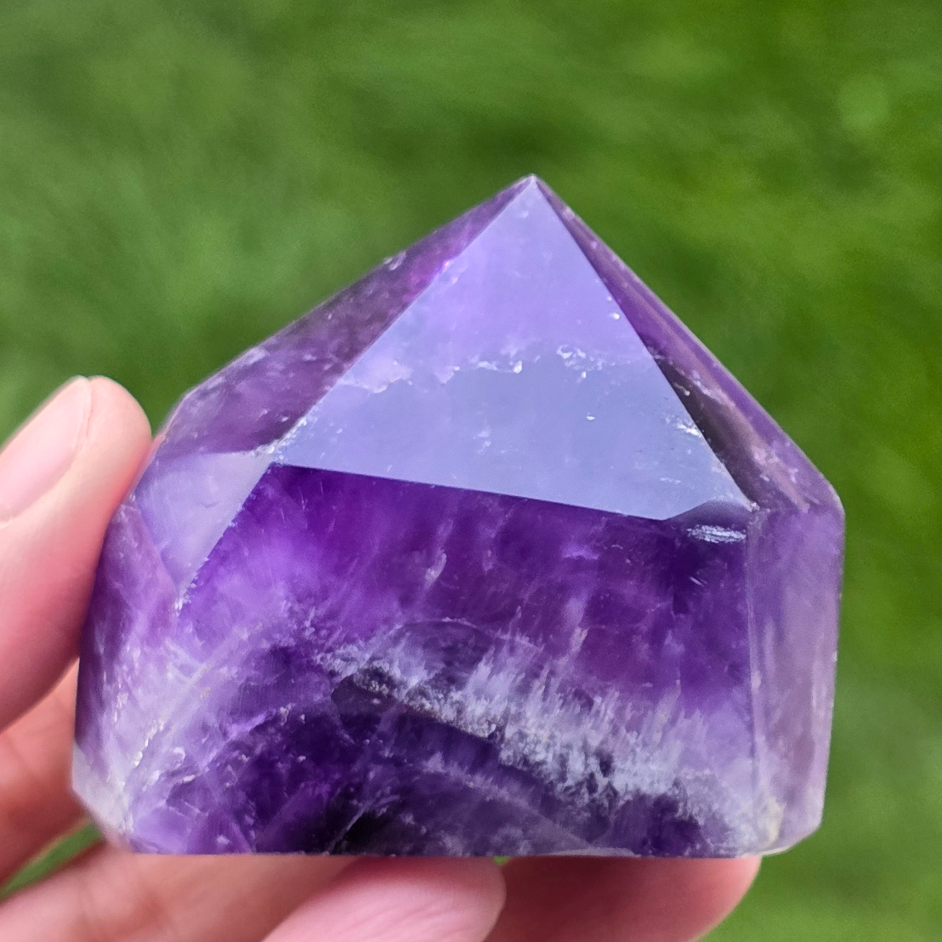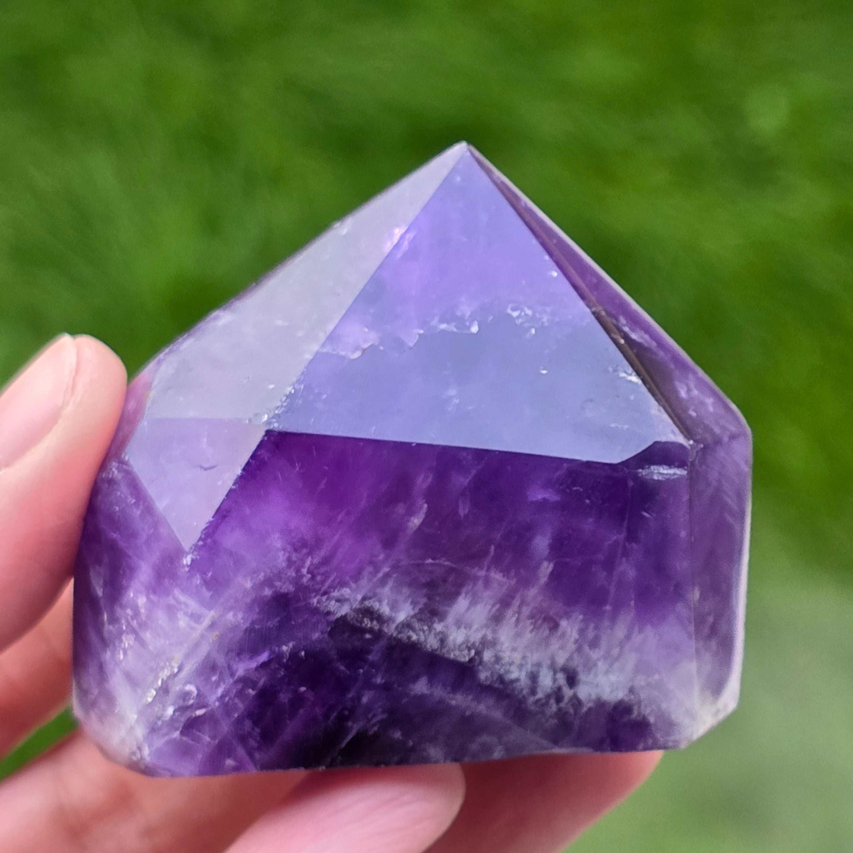 Ametyst Chevron może być używany w medytacji, jako biżuteria lub do nadania naturalnego i eleganckiego wyglądu domowi lub biuru.