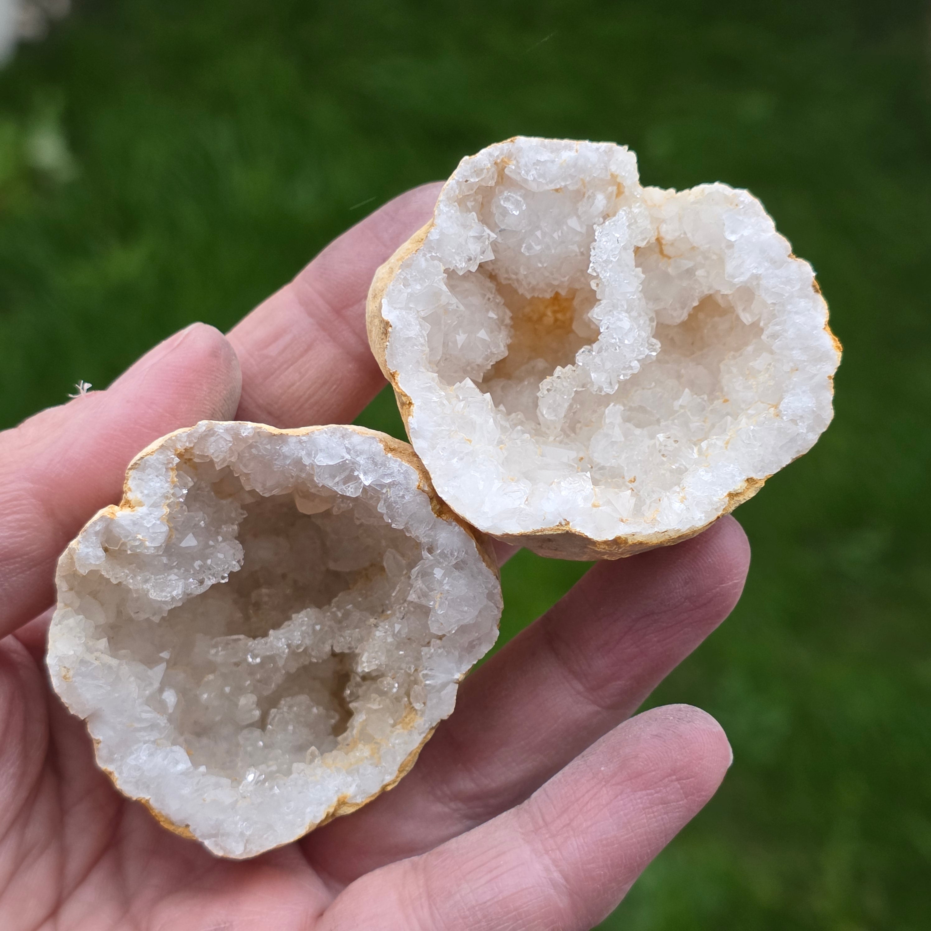 Geody z kwarcem skalnym są bardzo popularne wśród kolekcjonerów i entuzjastów, ponieważ ujawniają ukryte piękno po przecięciu lub połamaniu, odsłaniając błyszczące kryształy od wewnątrz. Geody te mogą różnić się rozmiarem, od małych formacji, idealne do dekoracji lub kolekcji, po większe okazy, które stają się prawdziwymi centralnymi elementami w dekoracjach wnętrz.