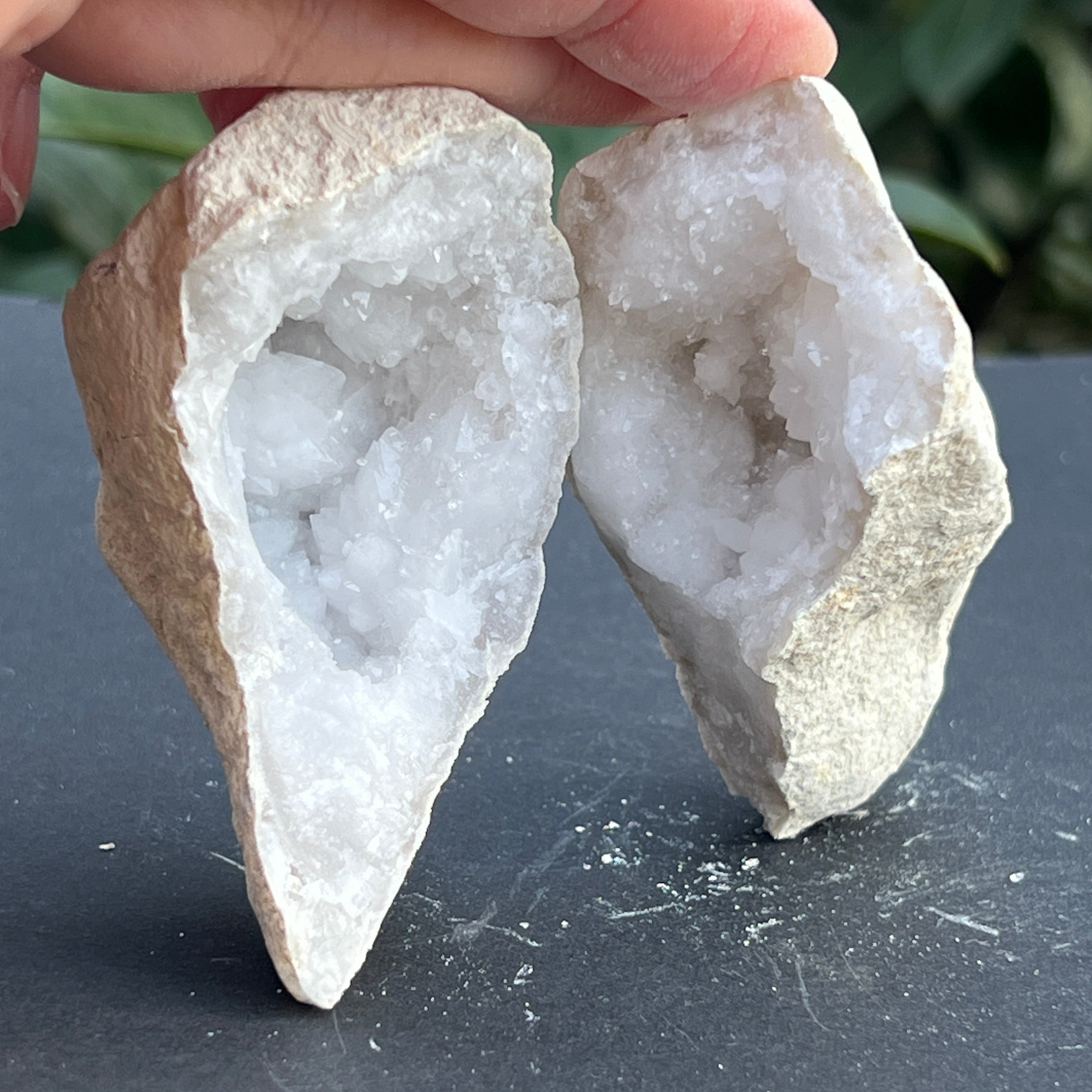 Skalne geody kwarcowe są bardzo popularne zarówno wśród kolekcjonerów, jak i entuzjastów, ponieważ po przecięciu lub złamaniu odsłaniają ukryte piękno, odsłaniając błyszczące kryształy w środku. Geody te mogą różnić się wielkością, od małych formacji, idealnych do dekoracji lub kolekcji, po większe okazy, które stają się prawdziwymi centralnymi elementami dekoracji wnętrz.