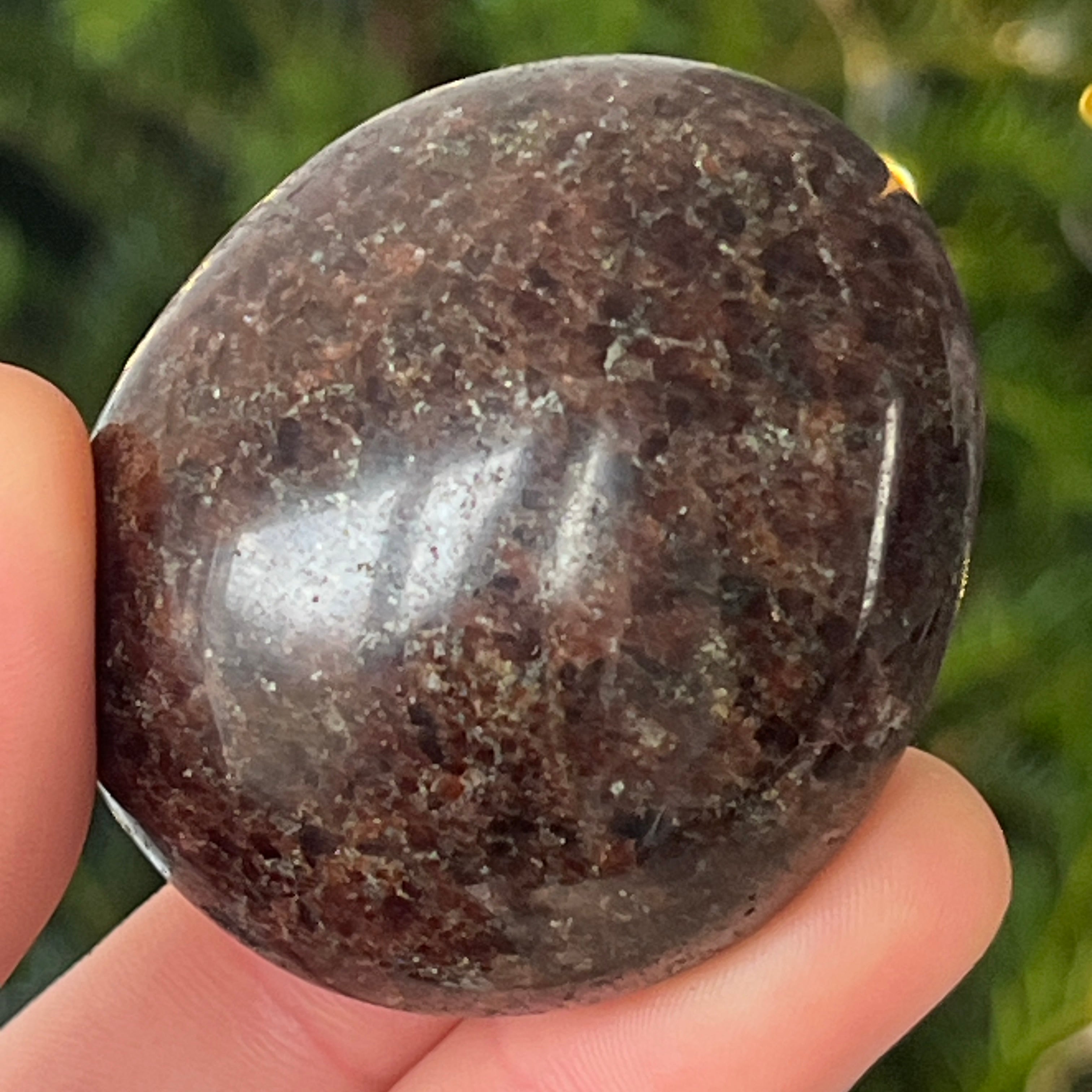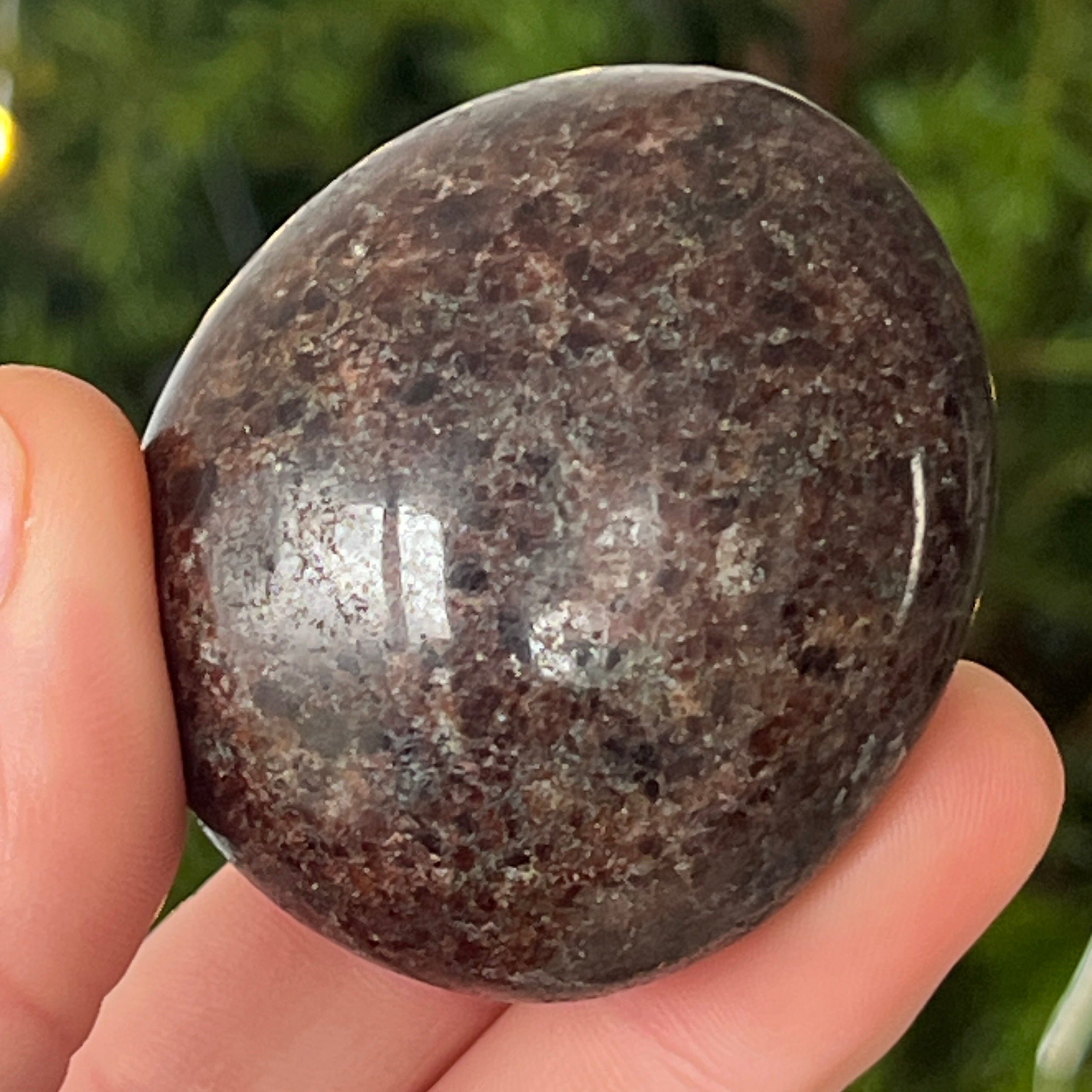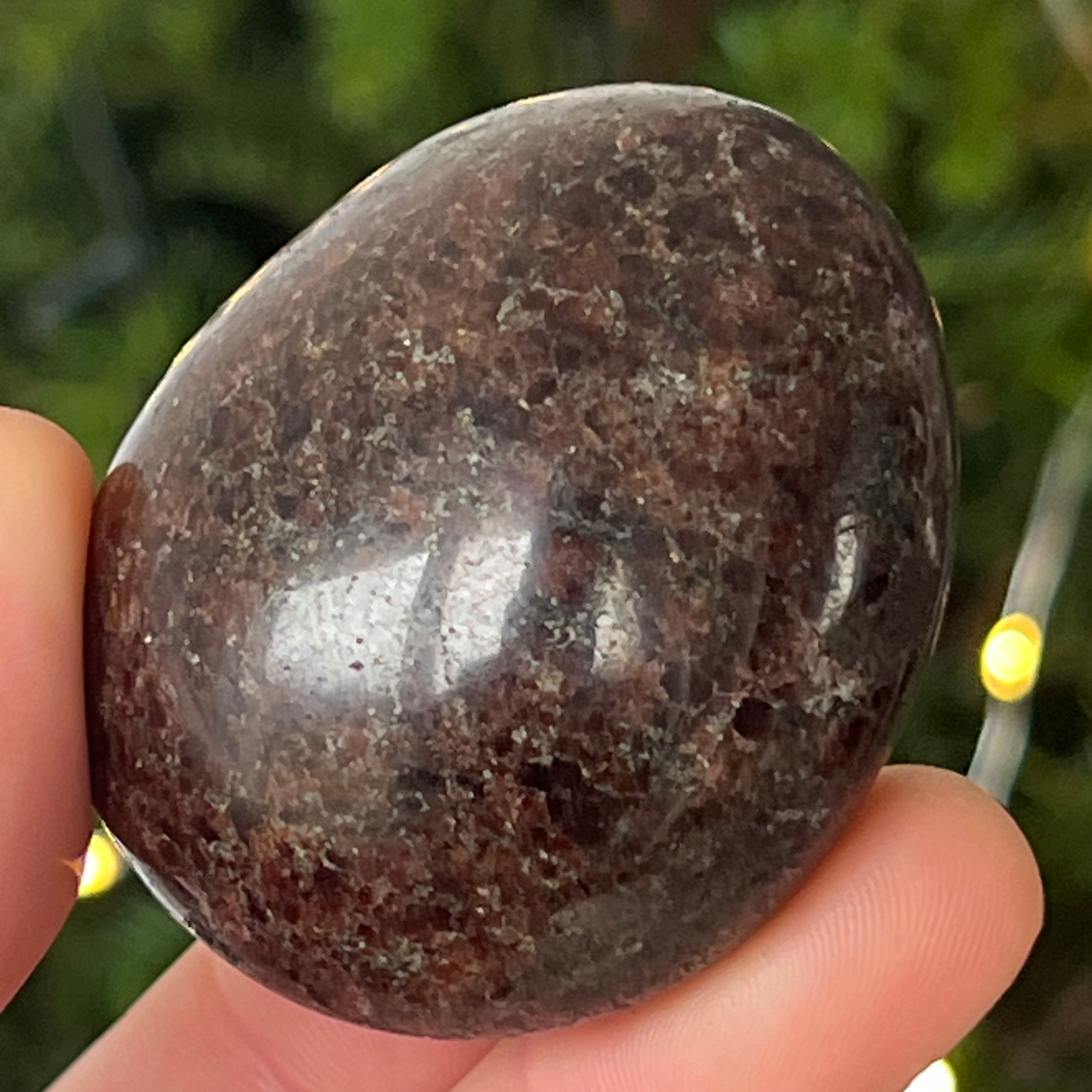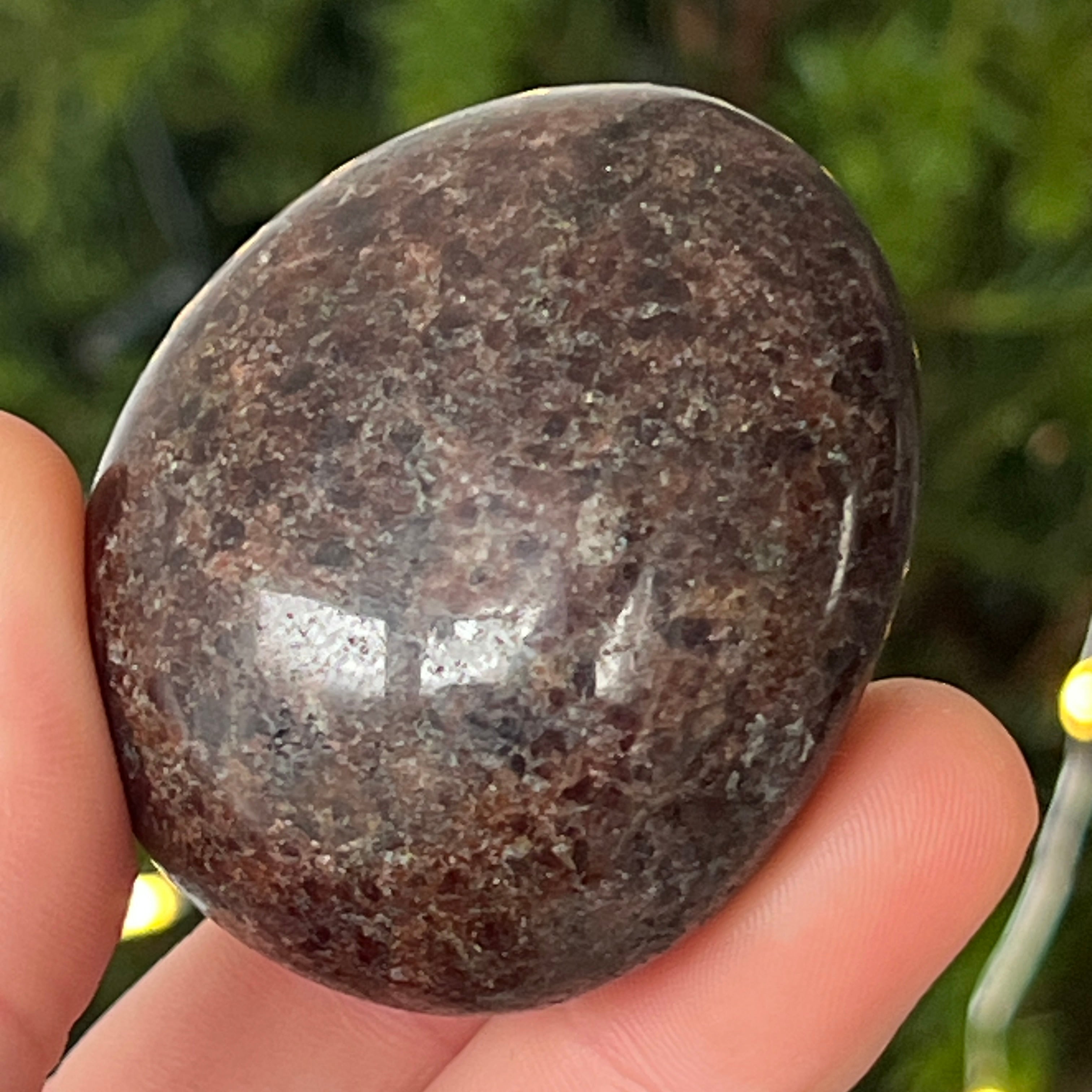 Ten palmstone z naturalnego granatu jest idealny do medytacji, introspekcji lub po prostu, aby mieć go przy sobie w chwilach, gdy potrzebujesz ugruntowania i stabilności. Jego głęboka energia rezonuje z czakrą podstawy, przynosząc witalność i ochronę.