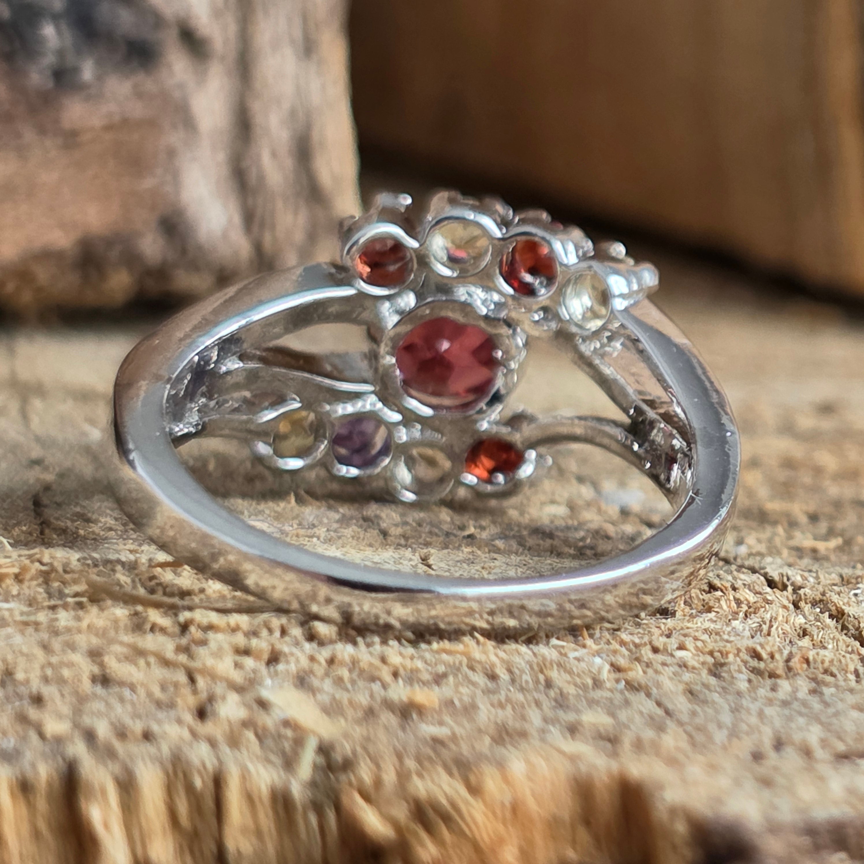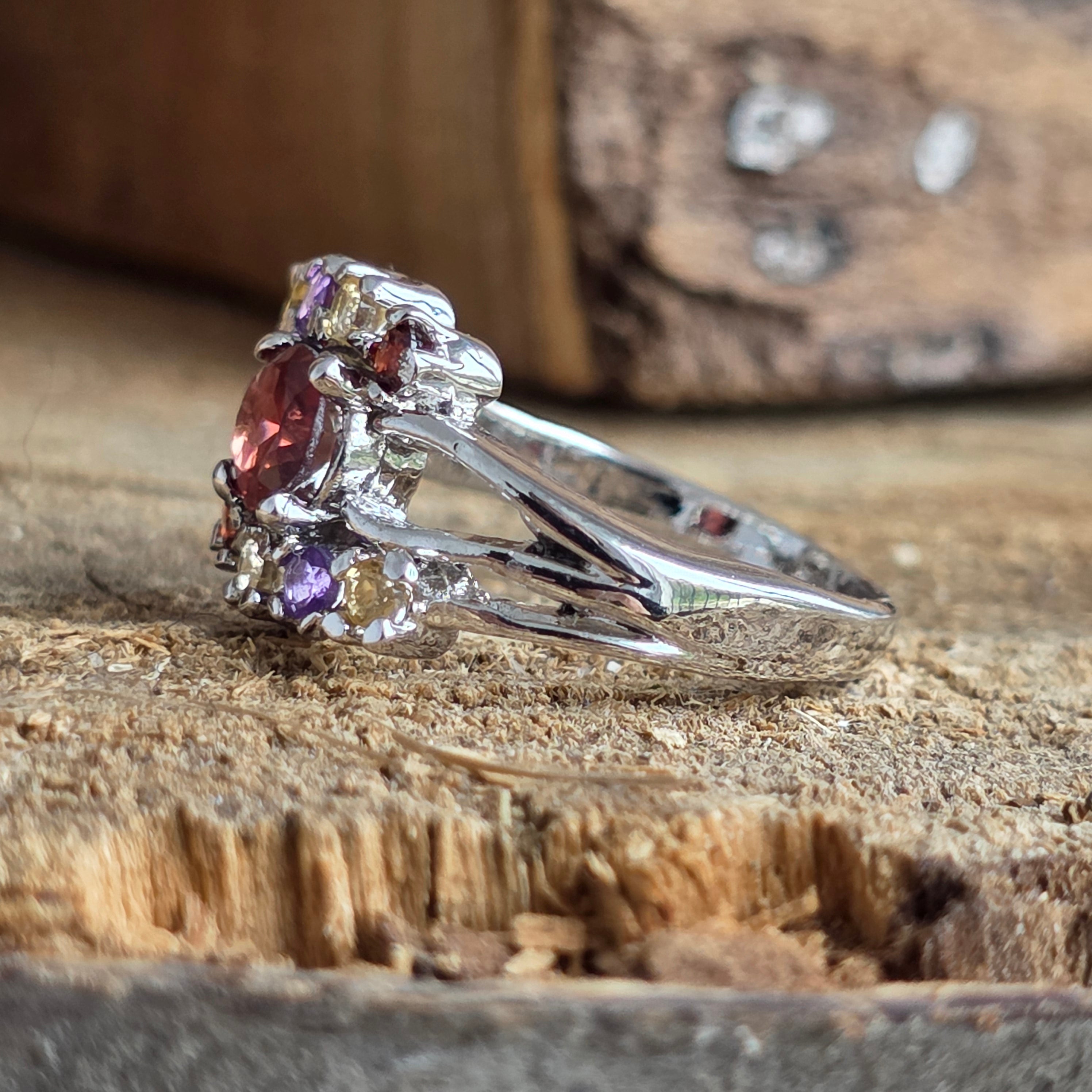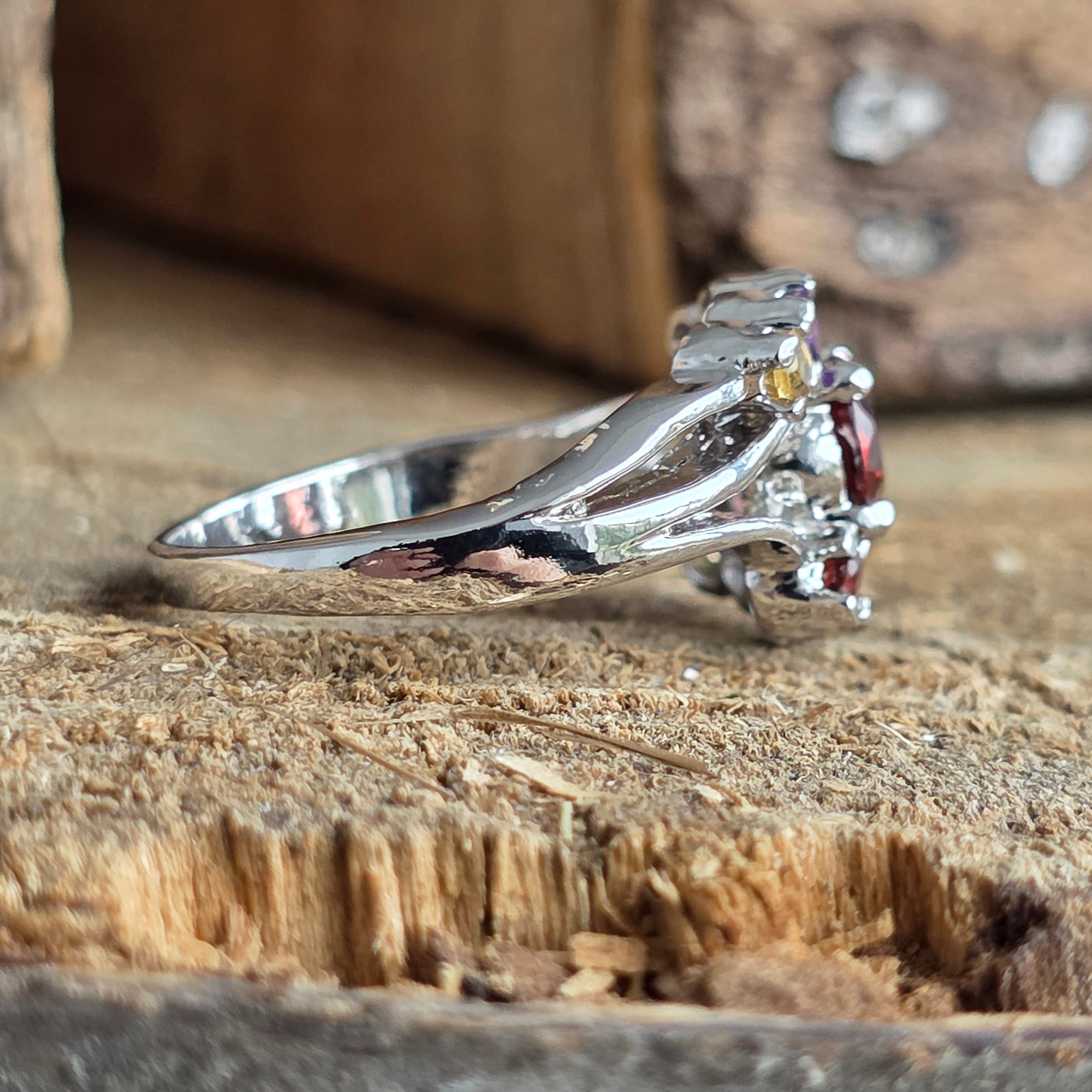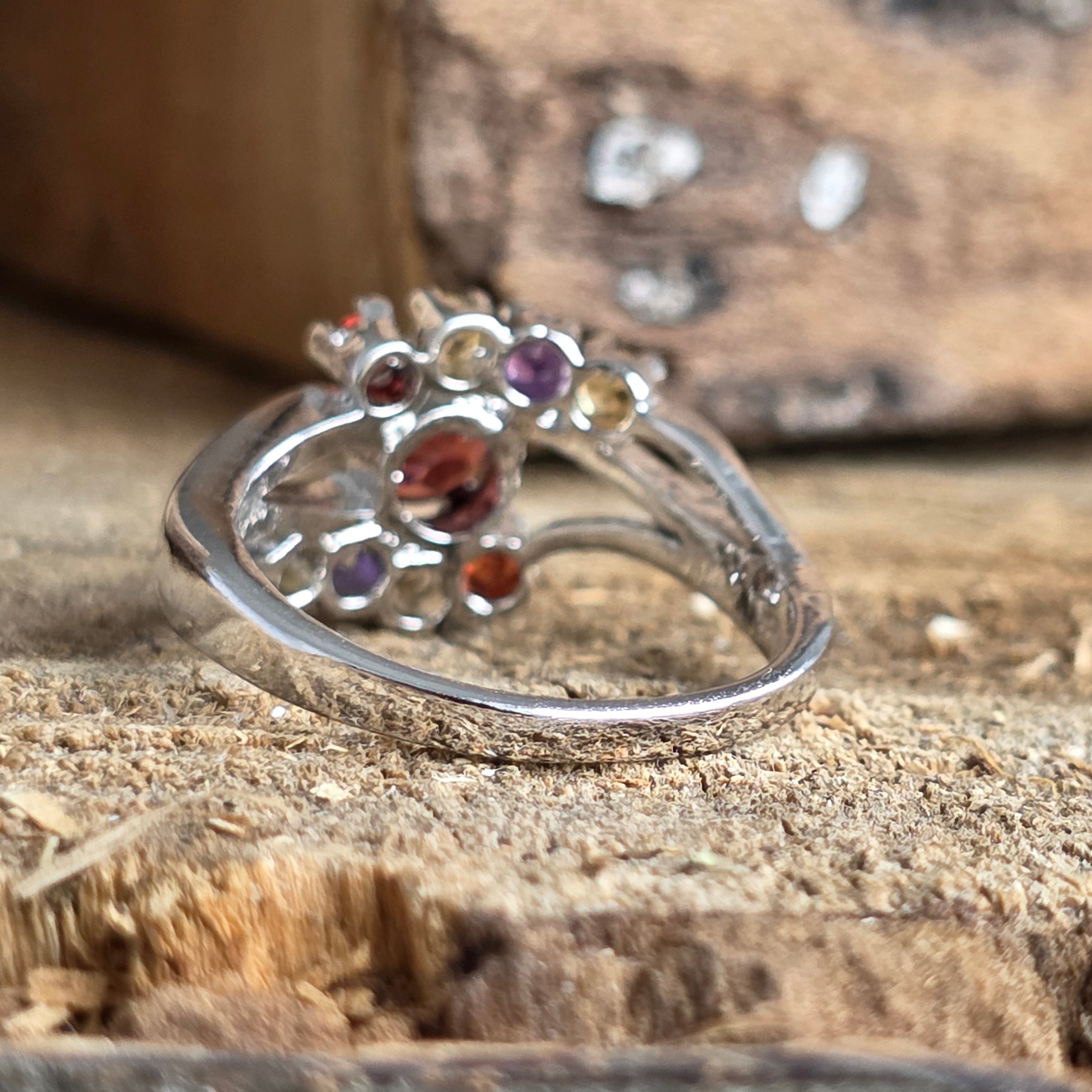 Inelul Trio Amethyst, Garnet & Citrine este o piesă luminoasă, potrivită celor care iubesc contrastul dintre calm și intensitate, dintre rațiune și emoție – un talisman al echilibrului interior și al bucuriei de a fi.