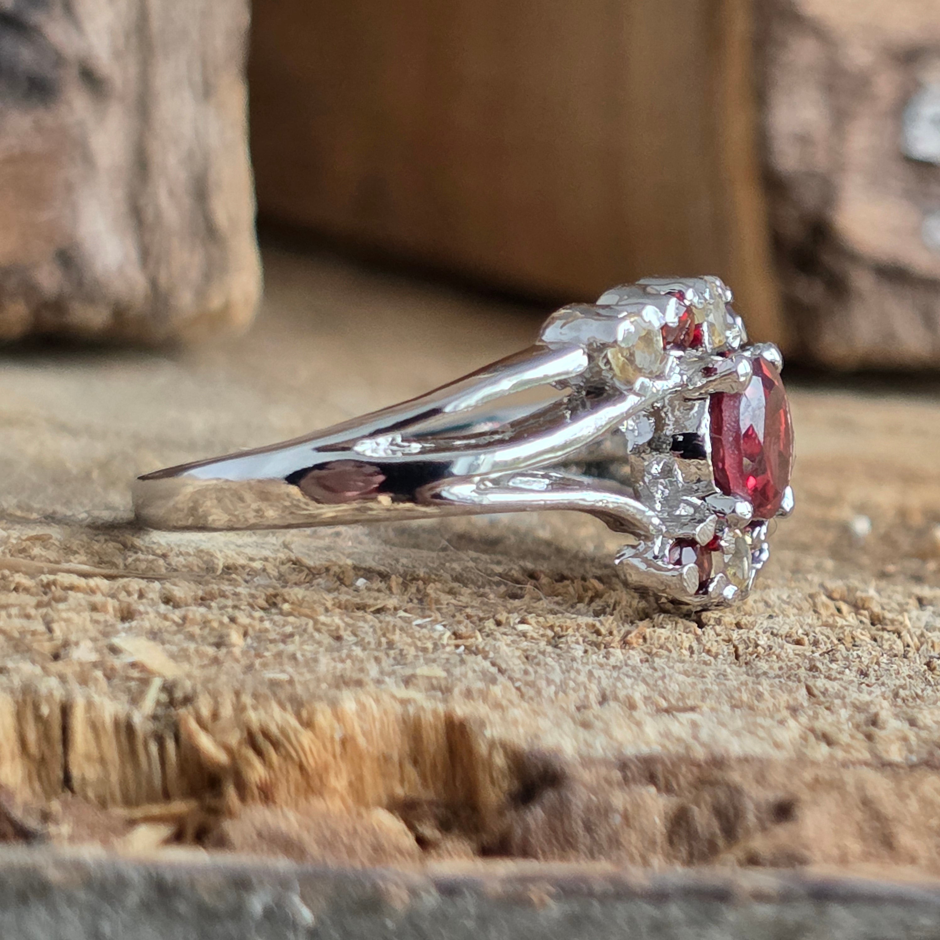 Împreună, aceste pietre formează un trio perfect – o simfonie de culori între violet, roșu și auriu, așezate cu grație într-o montură din argint 925.