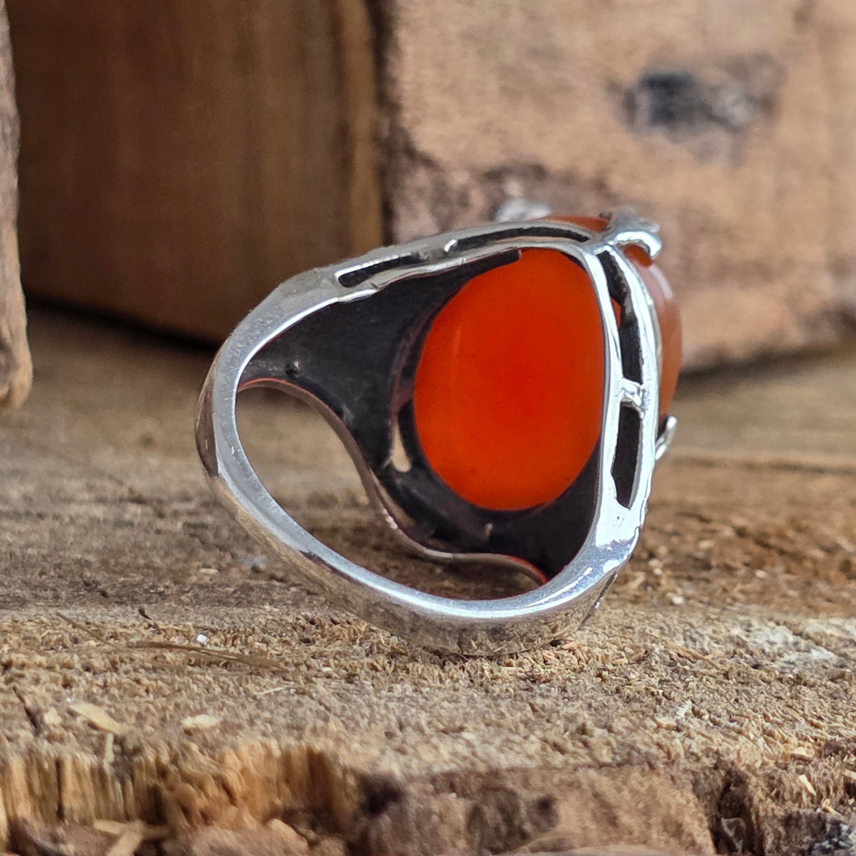 Puternic și vibrant, acest inel din argint 925 celebrează căldura pământului prin intensitatea carneolului natural, o piatră a curajului, vitalității și energiei solare.