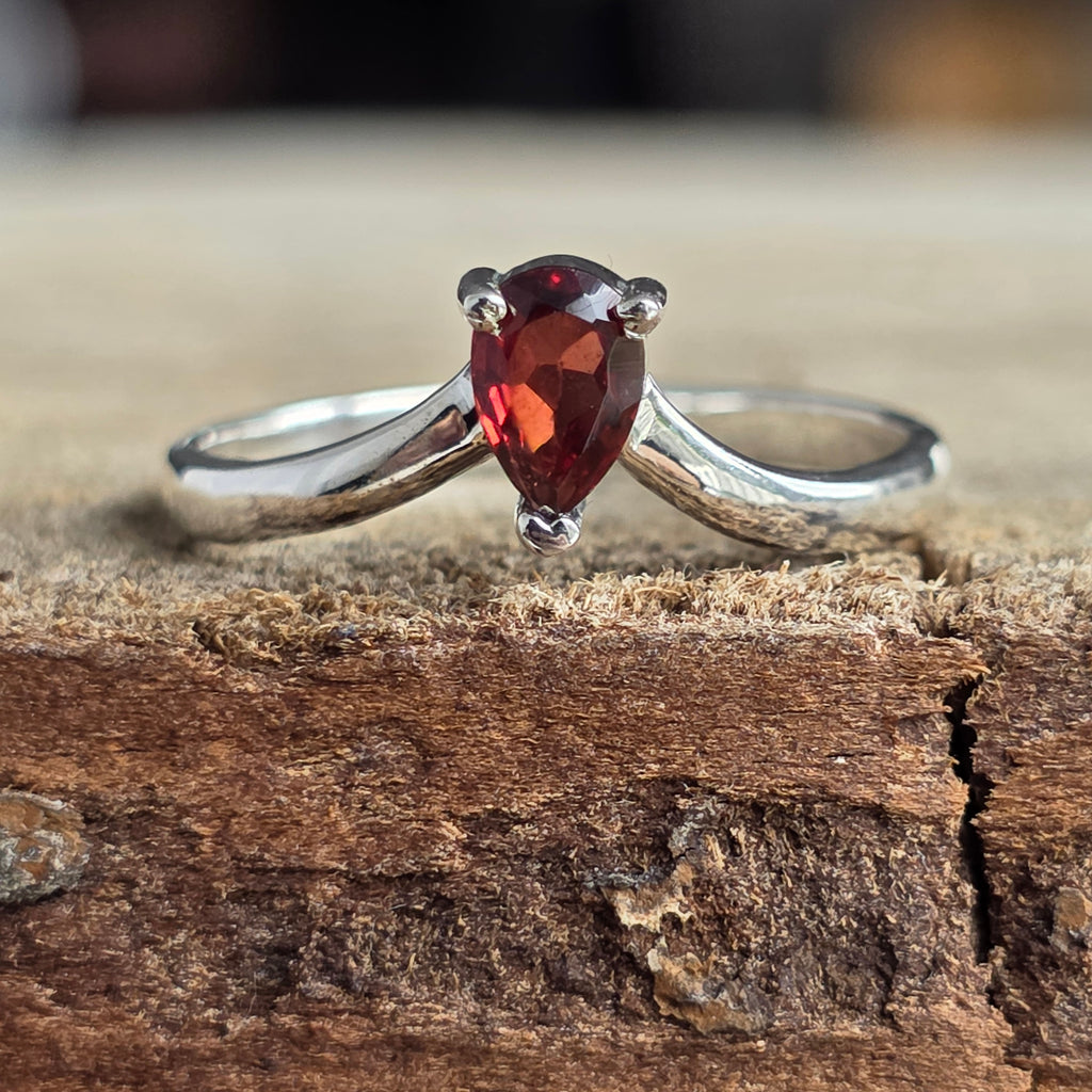 Forma elegantă de pară oferă o notă de rafinament și echilibru, în timp ce reflexele rubinii ale pietrei adaugă o strălucire caldă, perfectă pentru orice moment.