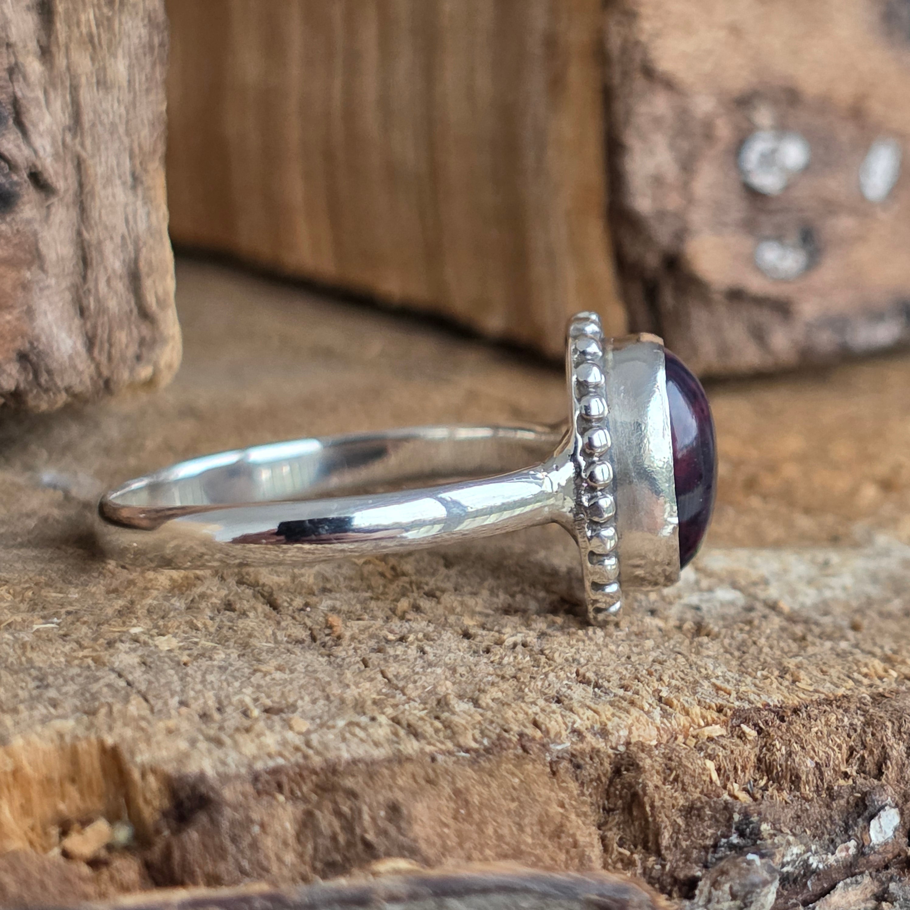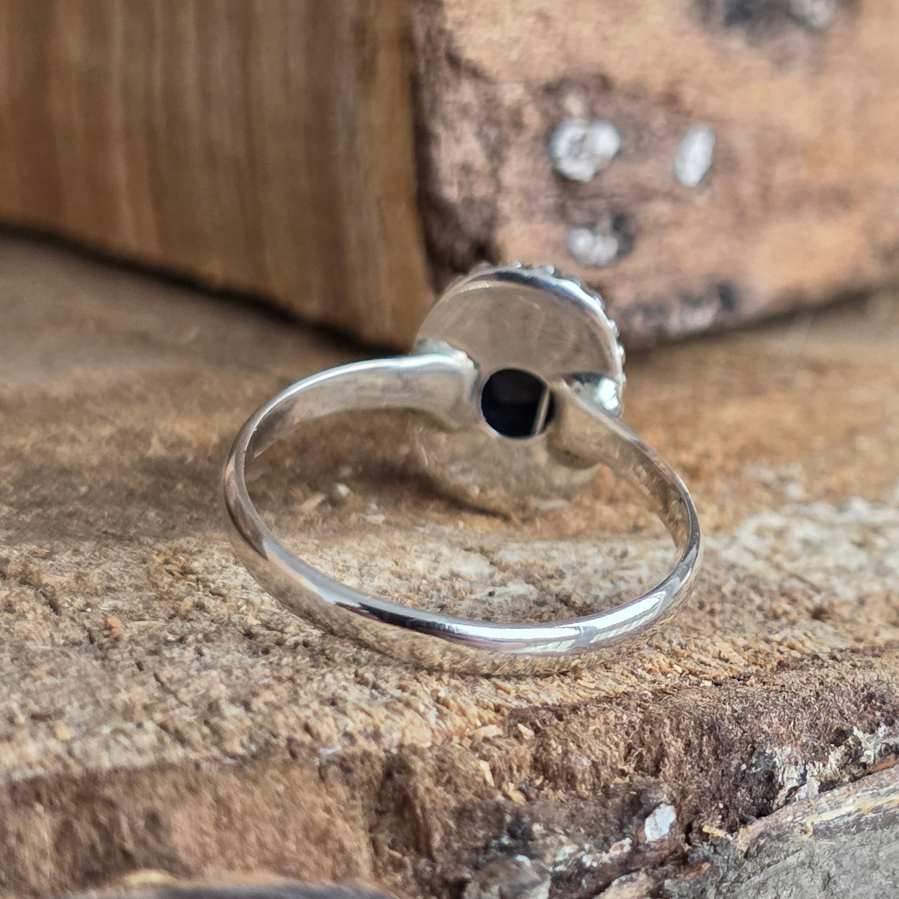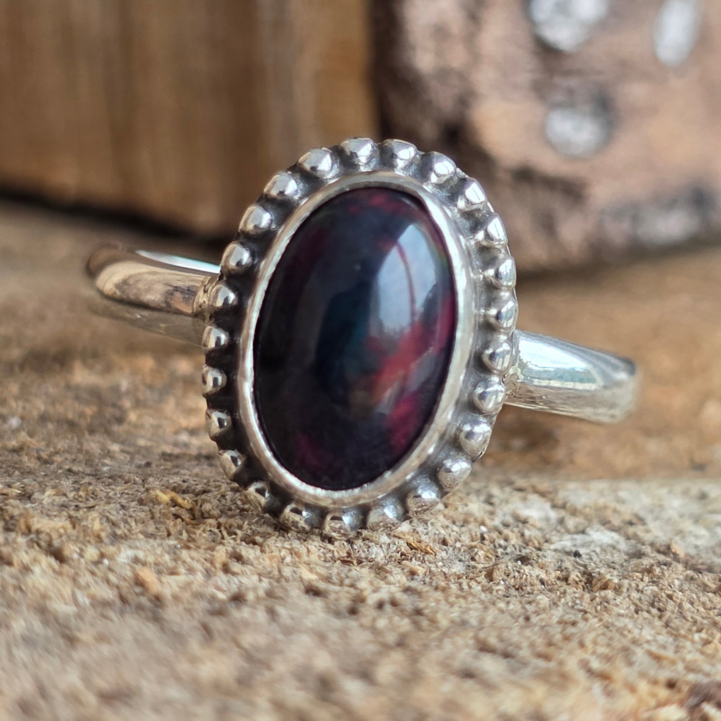Un inel elegant și rafinat, realizat din argint 925, cu o piatră naturală de opal etiopian, cunoscută pentru reflexele sale irizante în nuanțe de verde, roșu și albastru. Designul minimalist plain wire setting permite pietrei să fie în centrul atenției, captând lumina din orice unghi.