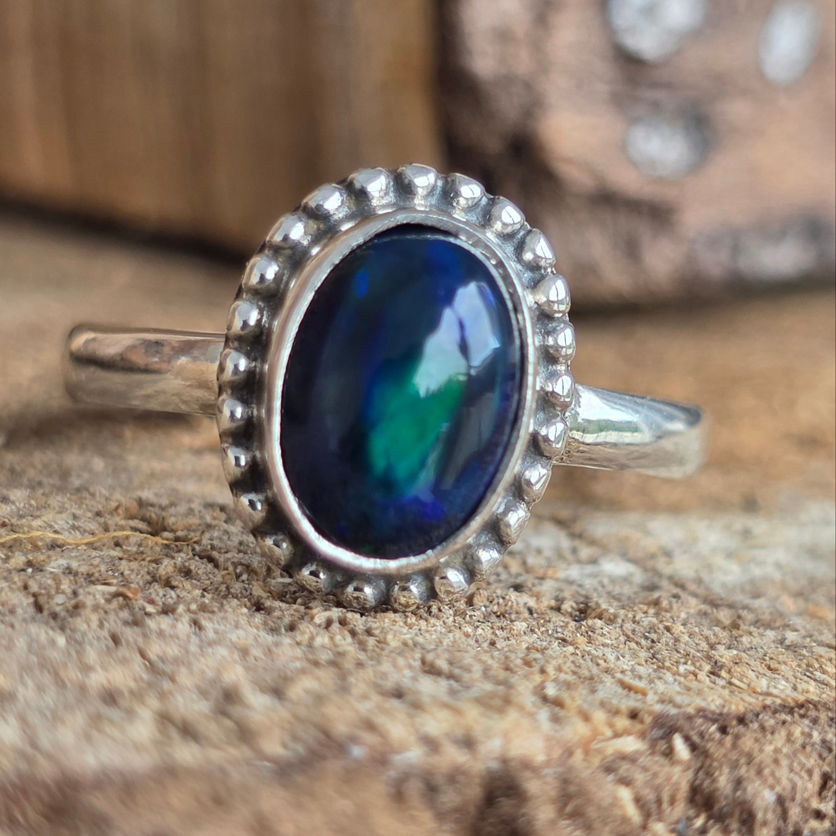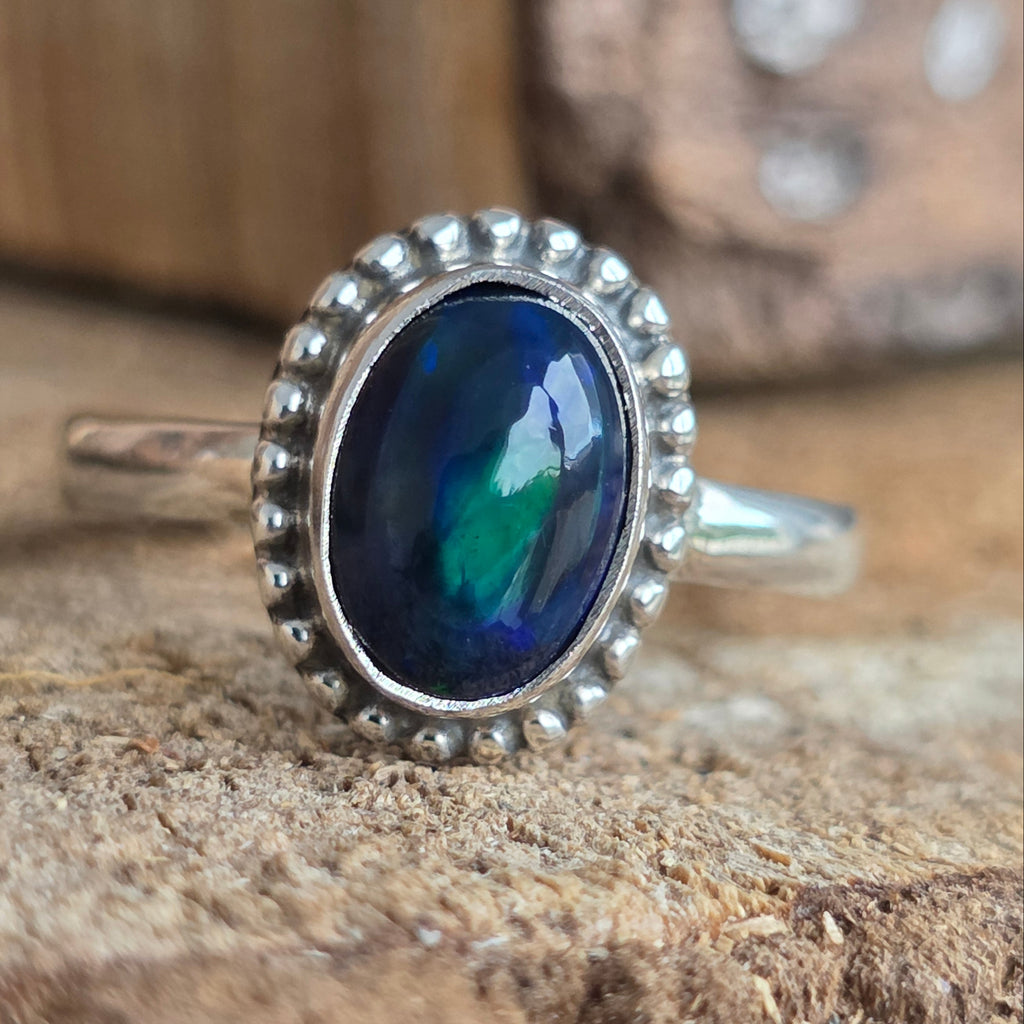 • Piatra: opal etiopian natural, tăietură ovală (oval shape) -model unicat. veti primi exact produsul prezentat în imagini.