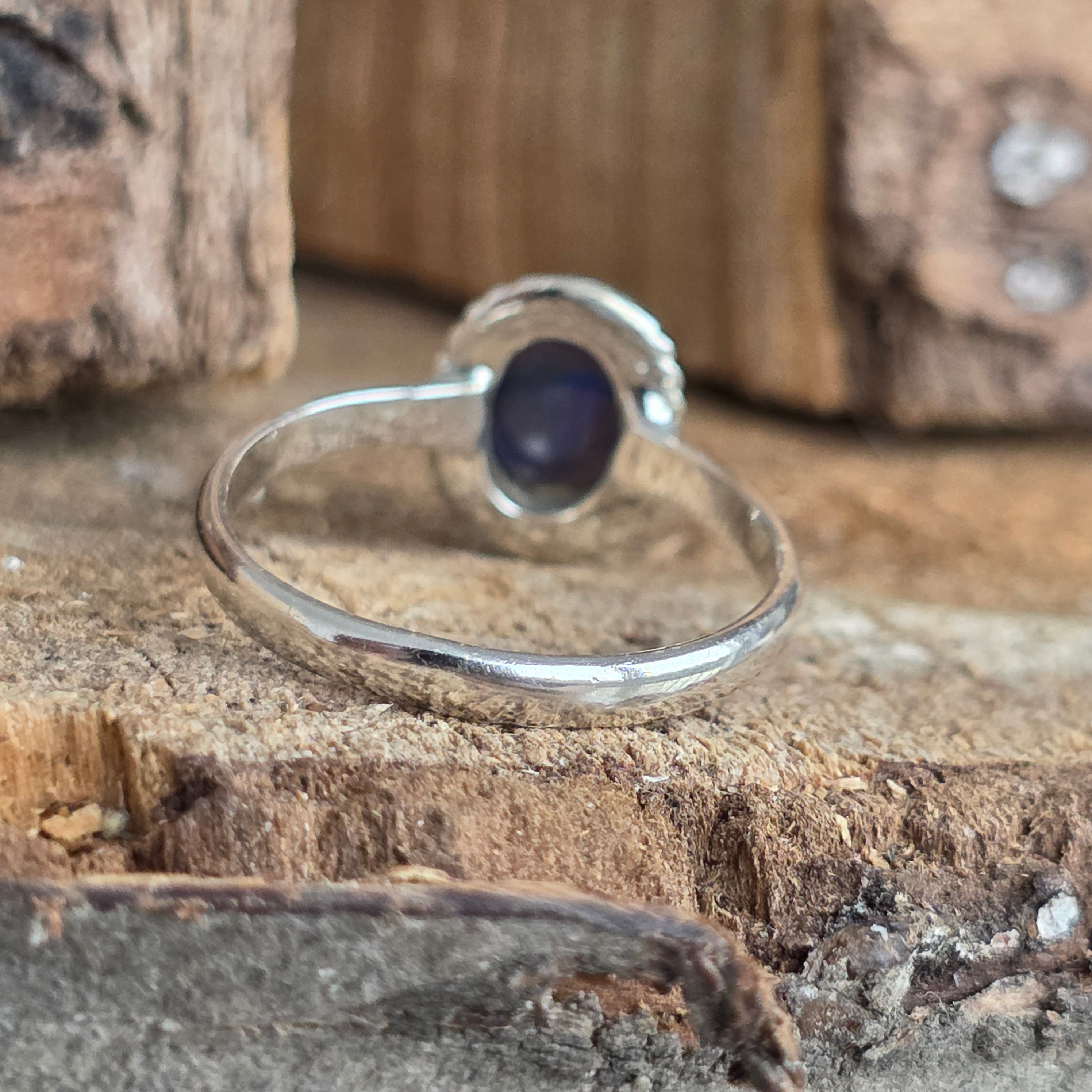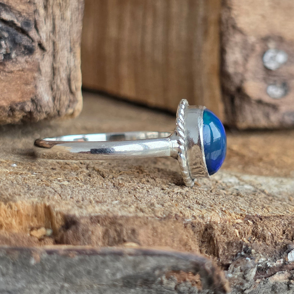 Un inel elegant și rafinat, realizat din argint 925, cu o piatră naturală de opal etiopian, cunoscută pentru reflexele sale irizante în nuanțe de verde, roșu și albastru. Designul minimalist plain wire setting permite pietrei să fie în centrul atenției, captând lumina din orice unghi.