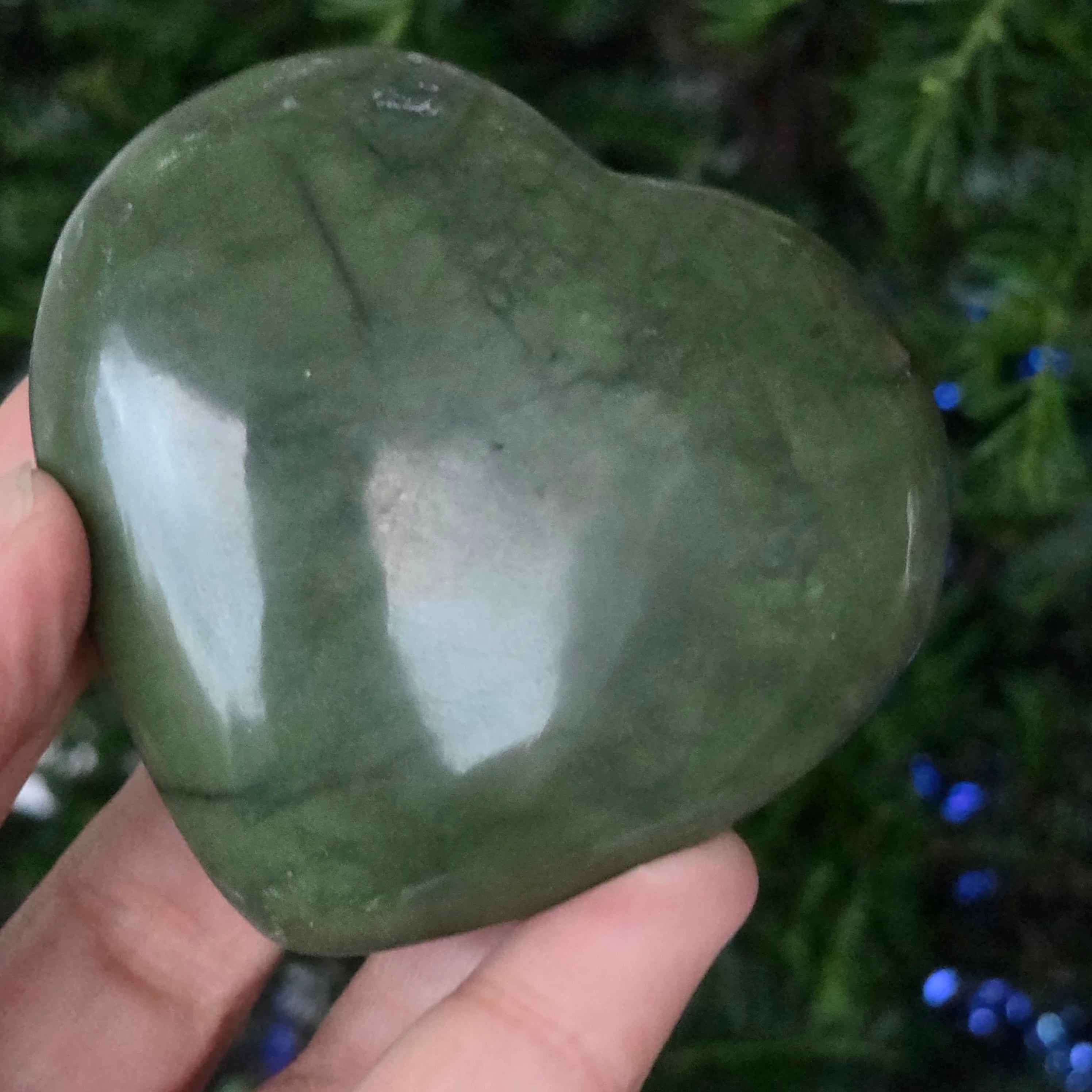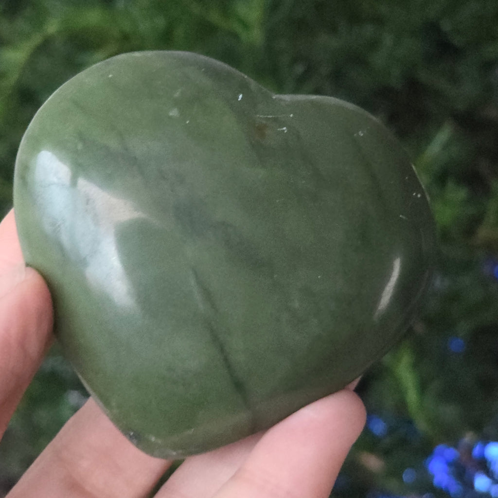 Această inimă sculptată din jad verde nefrit poartă în ea liniștea munților, răcoarea izvoarelor și puterea calmă a pietrei protectoare a Asiei. Fiecare nuanță de verde, fiecare unduire a suprafeței sale aduce aminte de armonie, echilibru și stabilitate interioară. O piesă mică, dar încărcată de sens, creată pentru cei care simt că transformarea începe mereu din spațiul inimii.