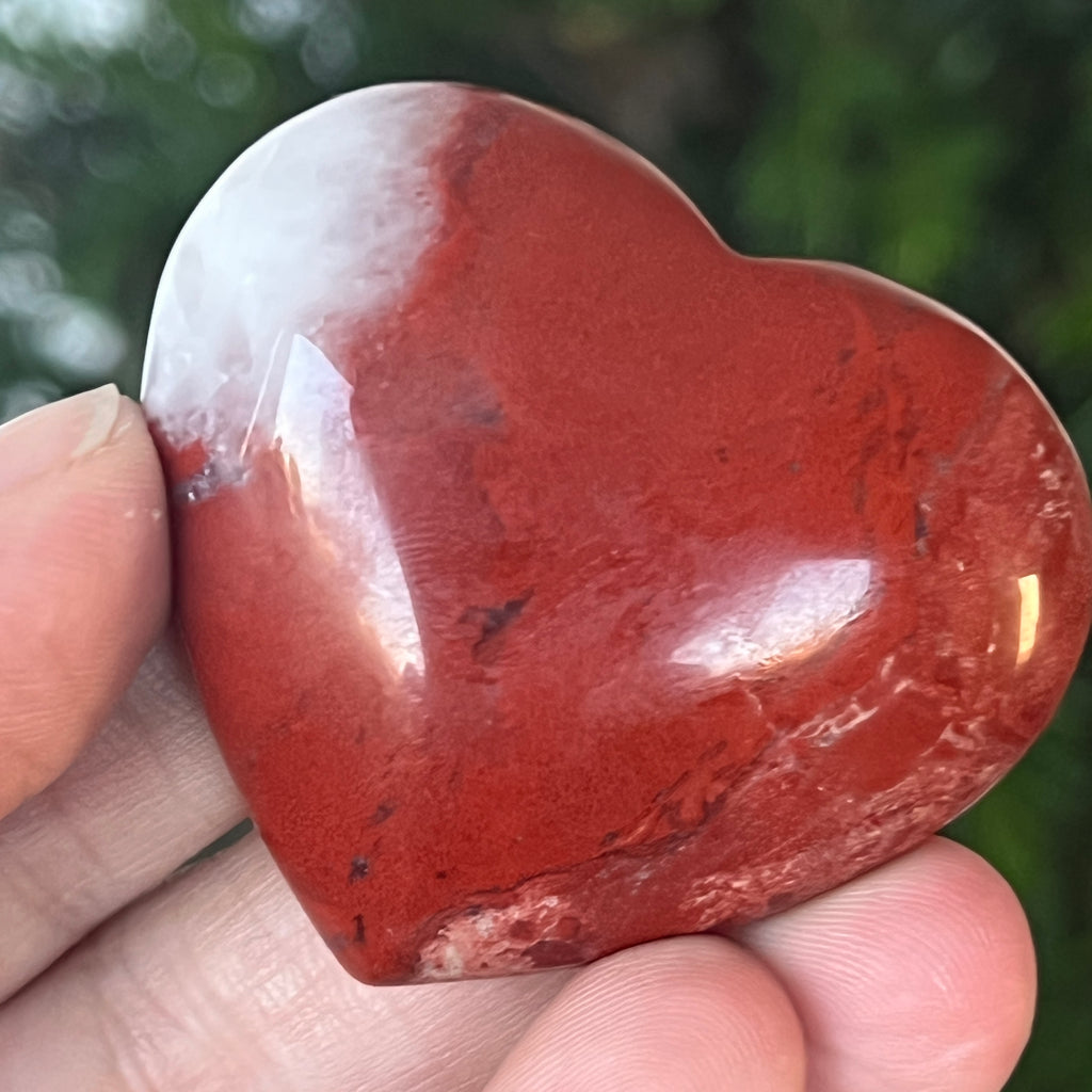 Adaugă această inimă din Jasp Roșu natural în colecția ta și lasă-o să-ți reamintească, zi de zi, de forța vie care curge prin tine – aceeași energie primordială care pulsează în centrul Pământului.