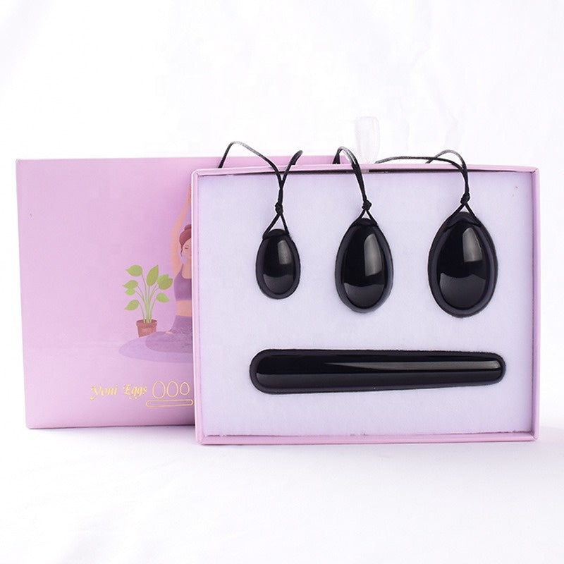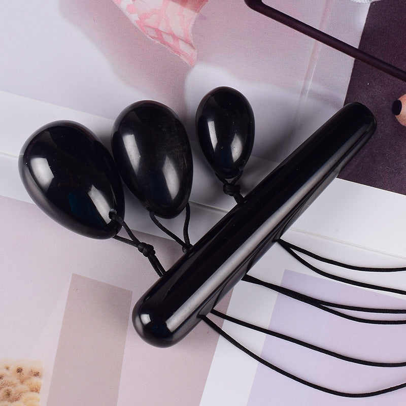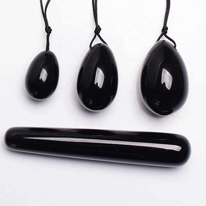 Jaja Yoni i różdżka z obsydianu - Zestaw 3 sztuk