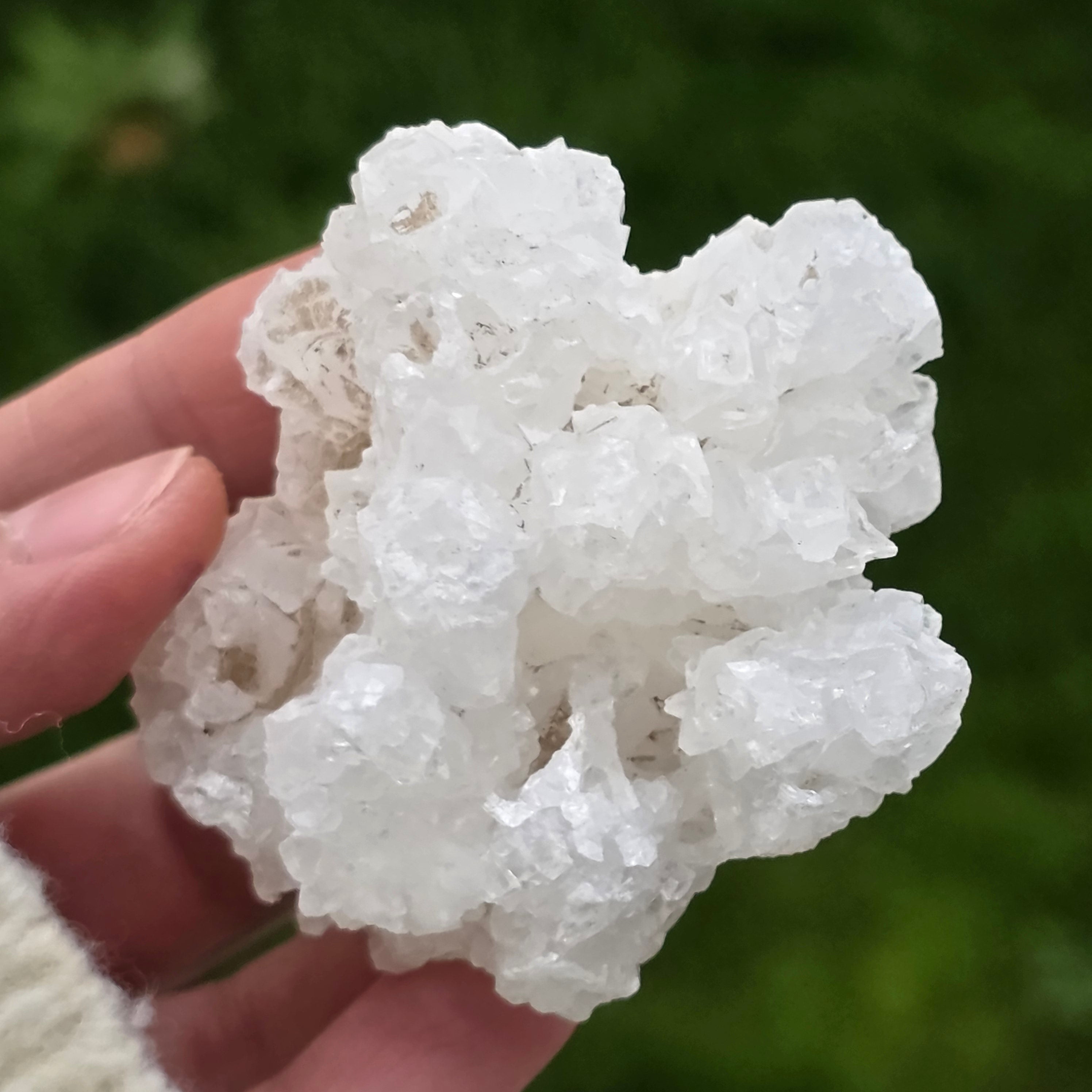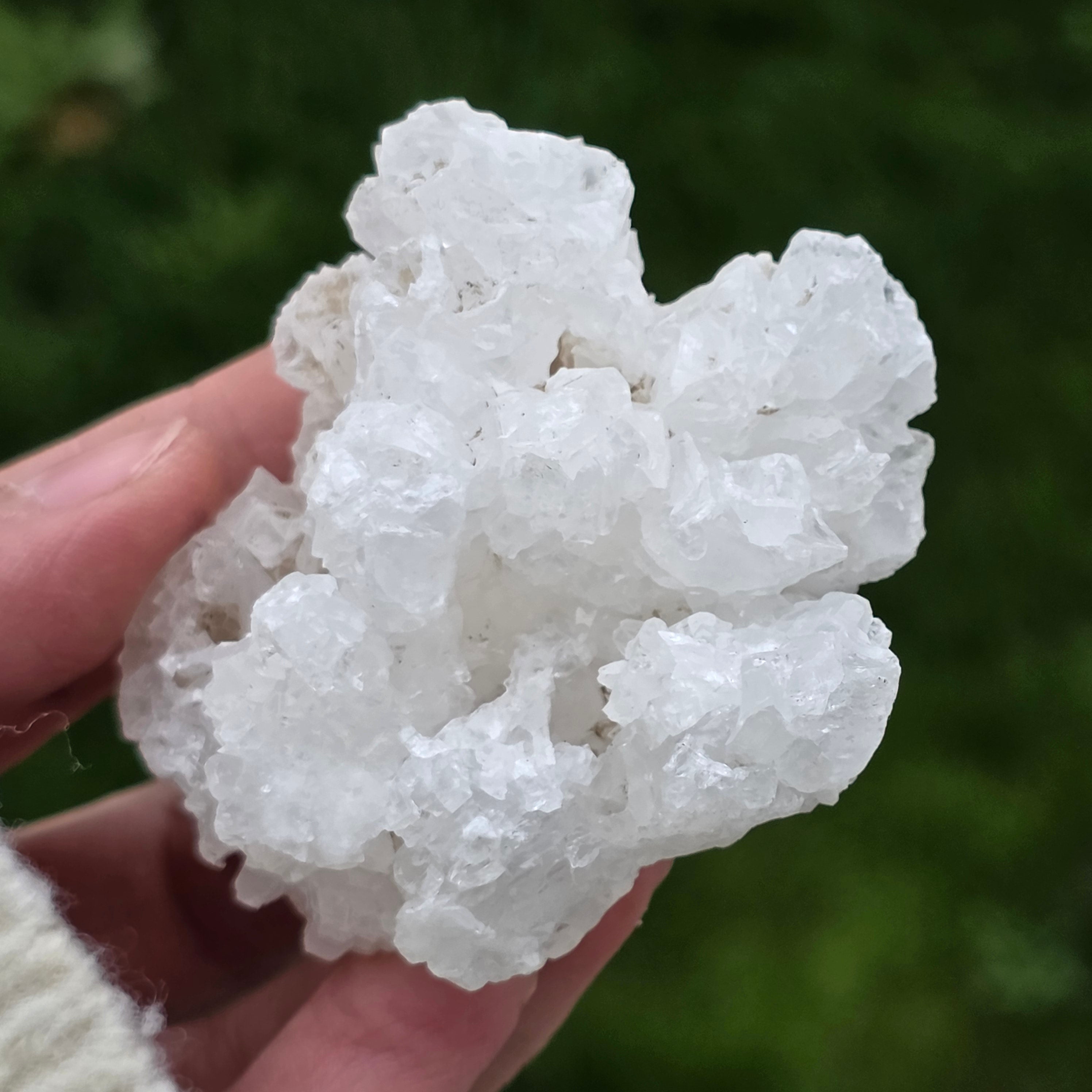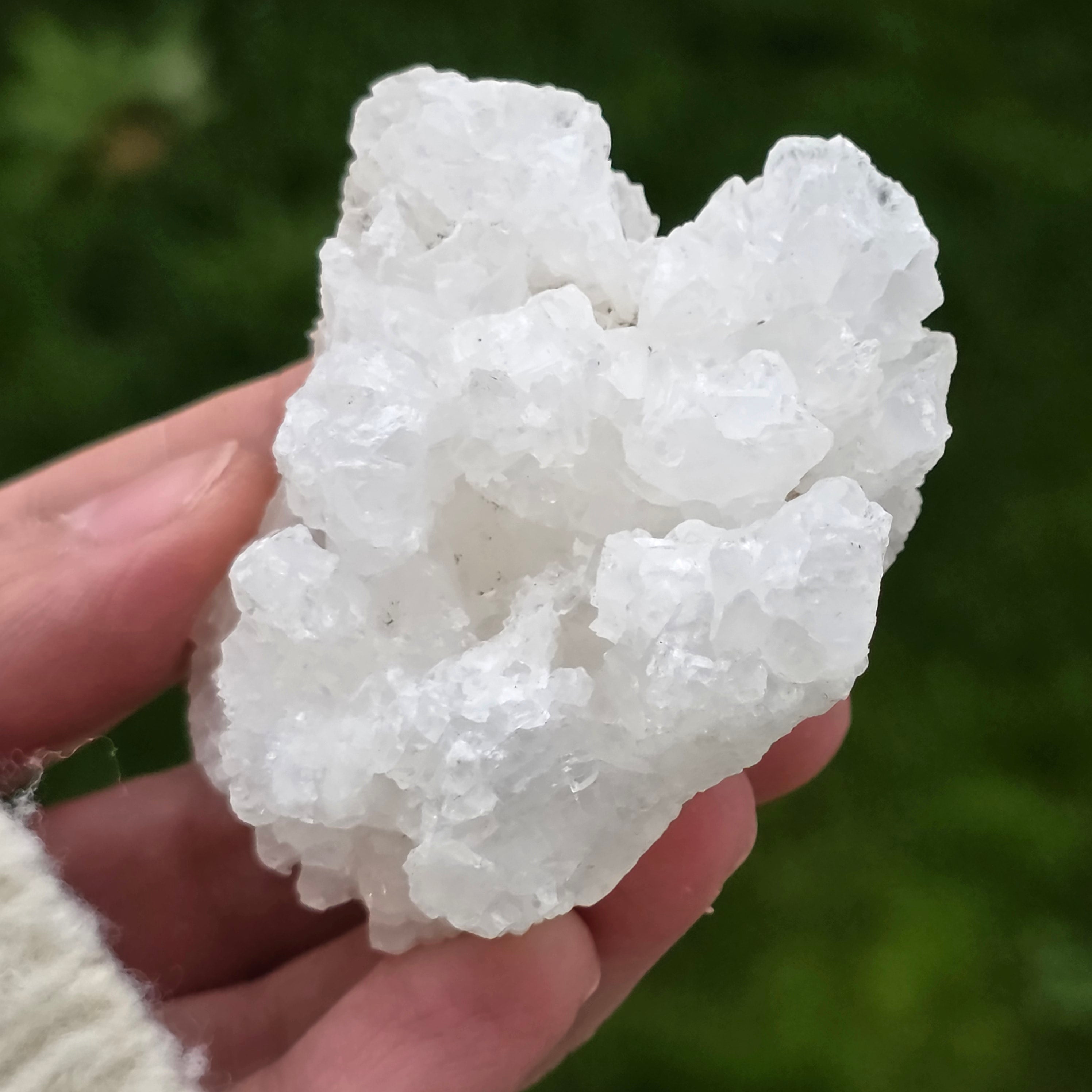 Ten kalcyt jaskiniowy (Cave Calcite) z Meksyku jest naturalnym okazem mineralnym cenionym za swoją organiczną, zwartą strukturę i mlecznobiały wygląd, utworzony z gęstych skupisk drobnych kryształów. Okazy tego typu powstają w wyniku powolnych procesów geologicznych zachodzących w podziemnych komorach, gdzie stabilne warunki pozwoliły na rozwój tych naturalnych, harmonijnych form.