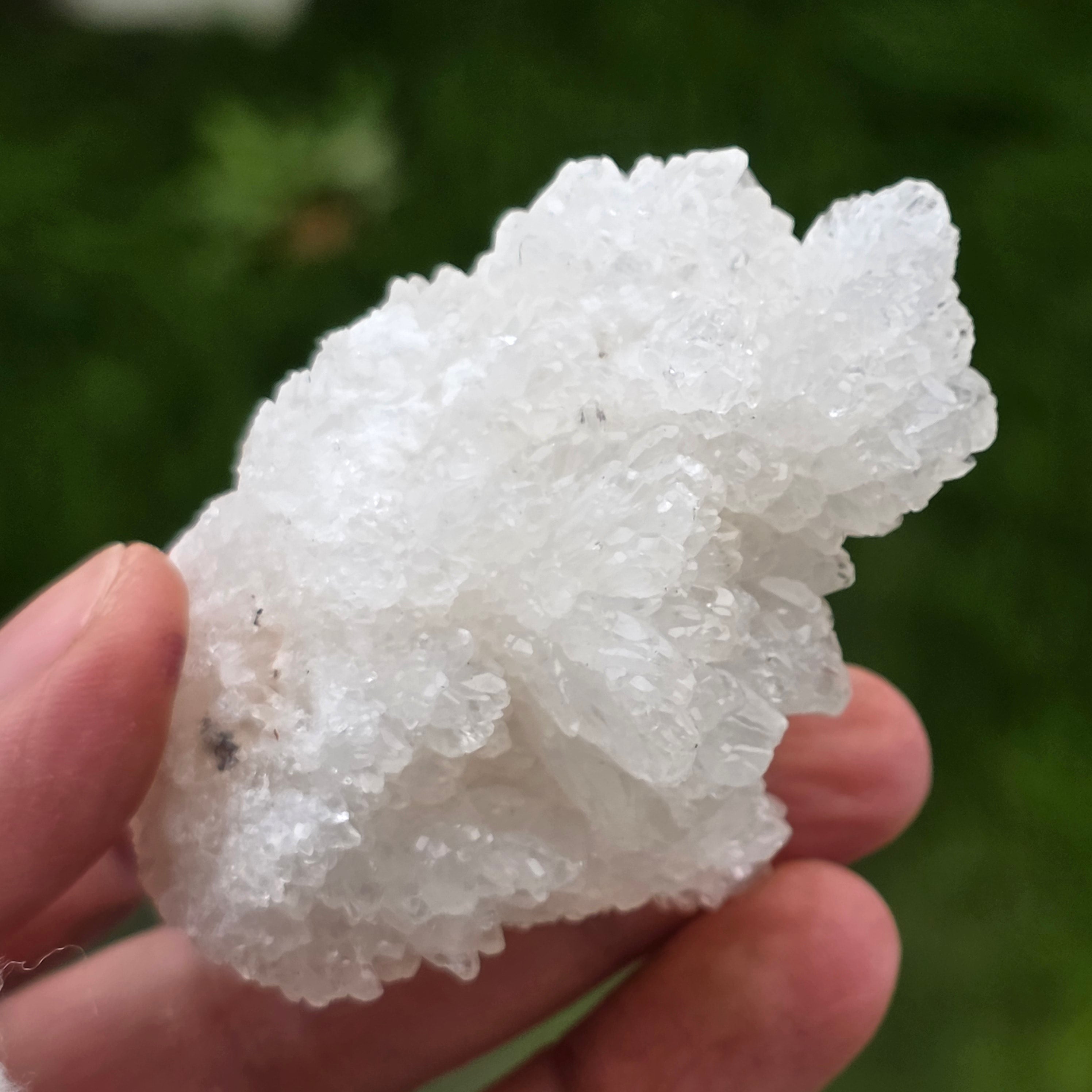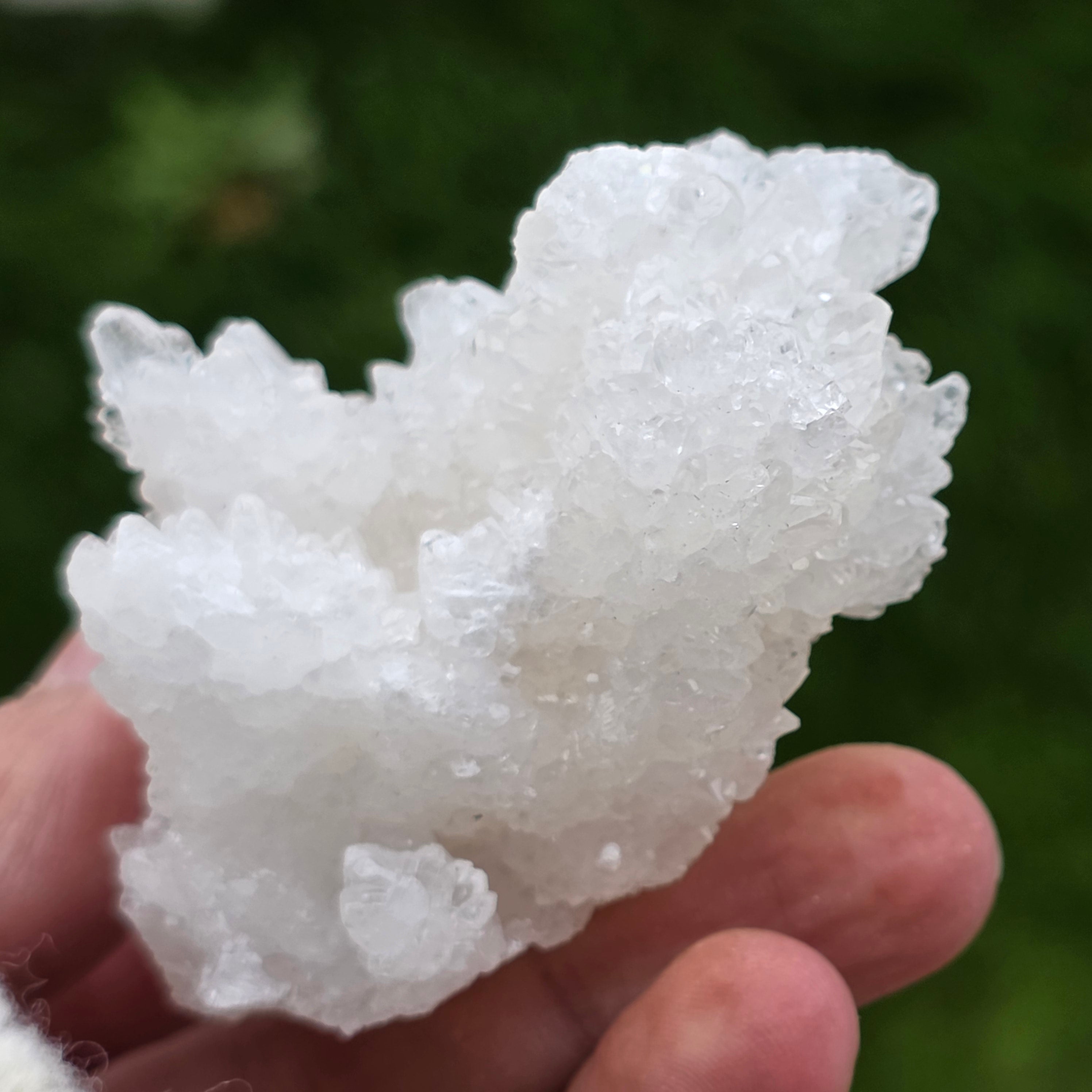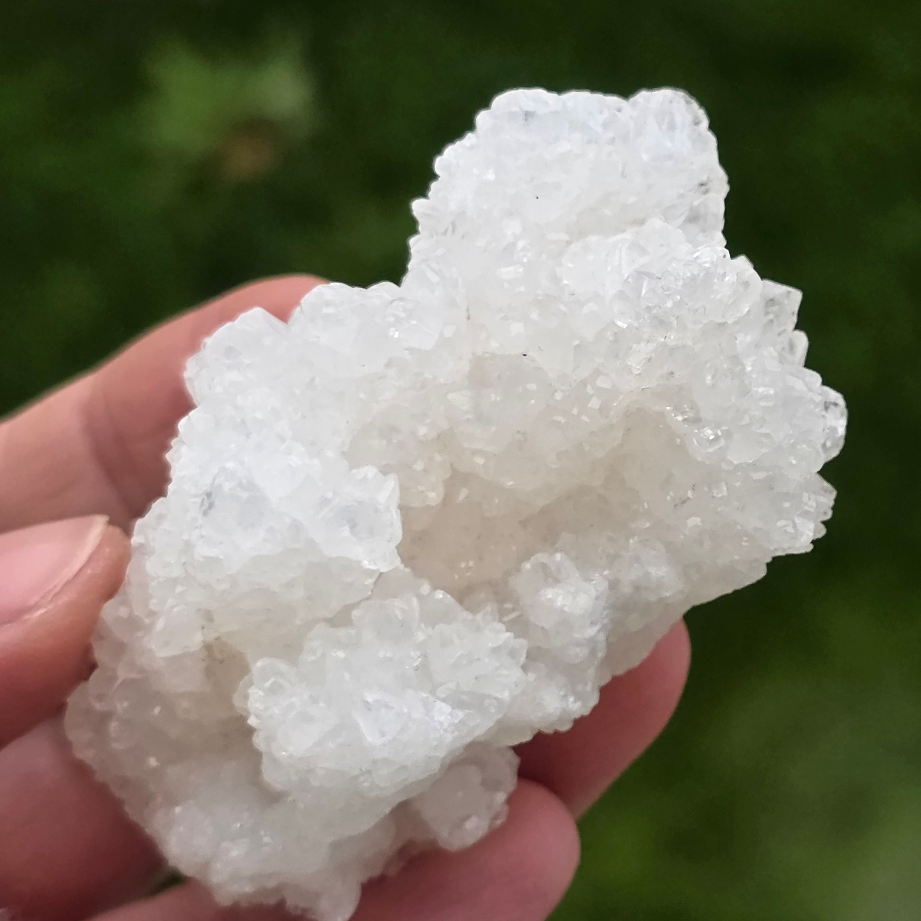 Kryształy ułożone są w nieregularne, zaokrąglone struktury, z lekko błyszczącymi powierzchniami, przypominającymi formacje spotykane wewnątrz jaskiń. Bogata tekstura i dobrze zdefiniowana objętość nadają każdemu okazowi autentyczny i ekspresyjny charakter, bardzo ceniony w kolekcjach minerałów oraz jako naturalny element dekoracyjny.