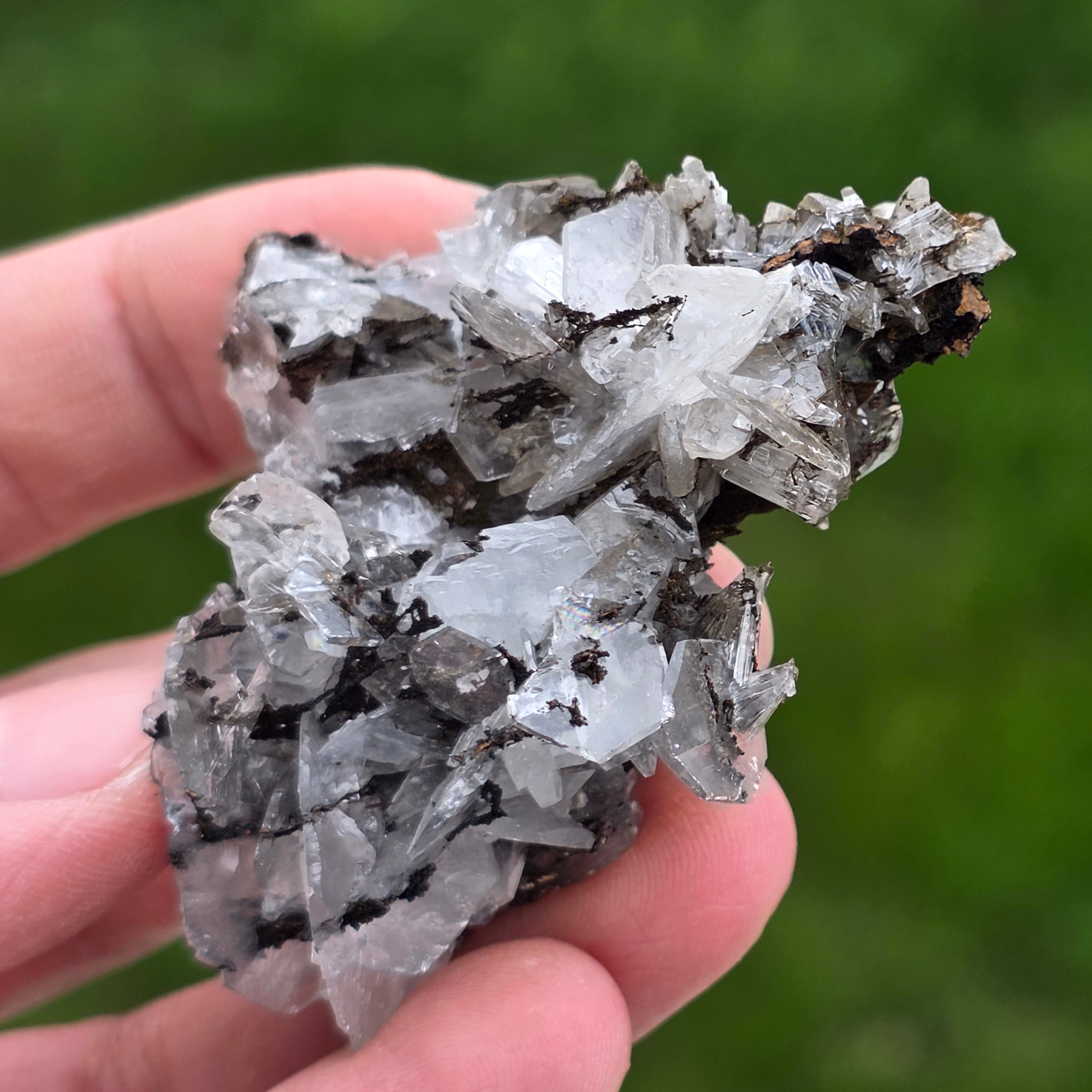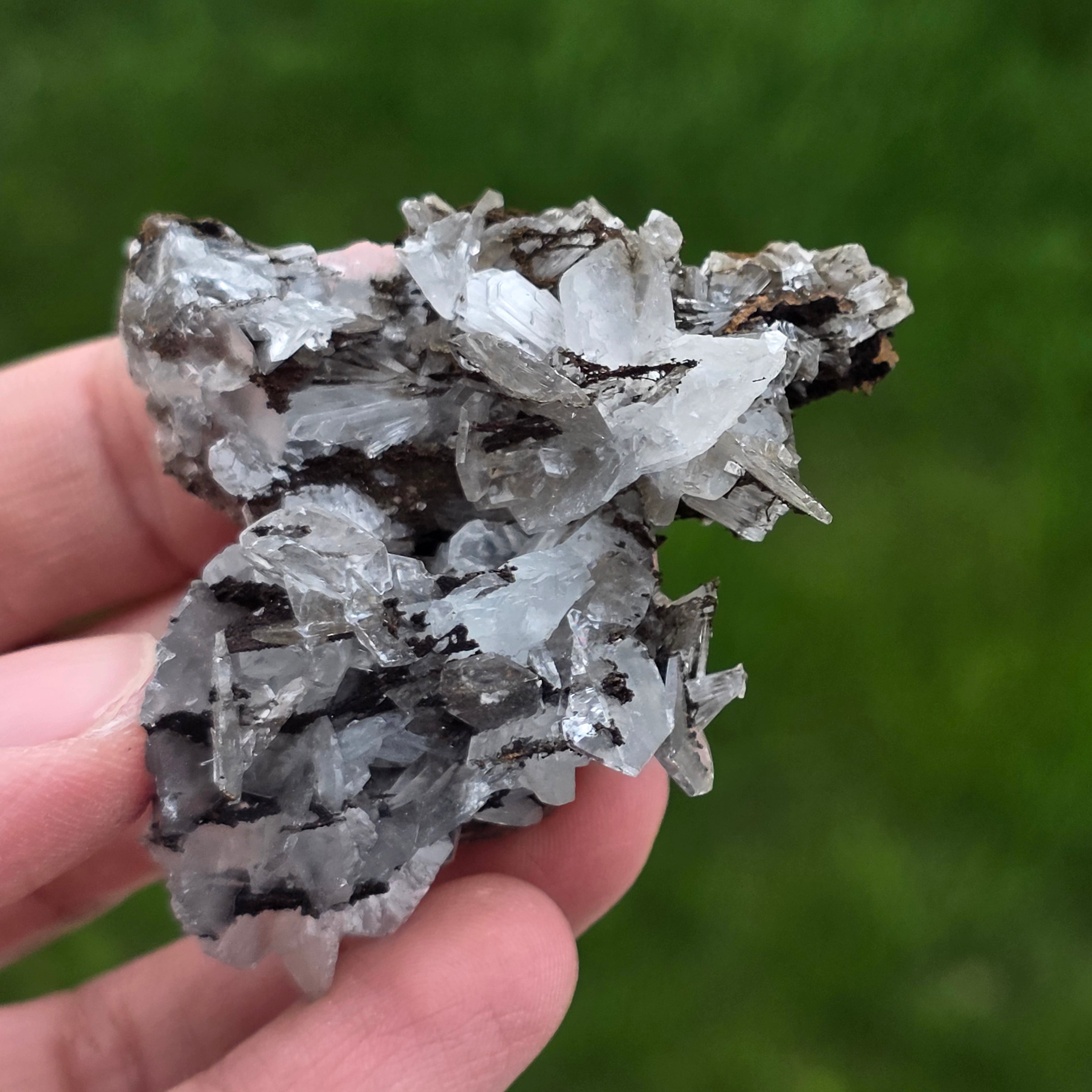 Kryształy rozwijają się w postaci cienkich, zaokrąglonych płytek, lekko prześwitujących, ułożonych w harmonijne agregaty o lekkim i wyważonym wyglądzie. Ich powierzchnia ma delikatny połysk, a kolor waha się od mlecznobiałego do jasnoszarego, czasami z inkluzjami lub mineralnymi zespołami charakterystycznymi dla rejonu Ojuela, co sprawia, że każdy egzemplarz jest wyjątkowy.