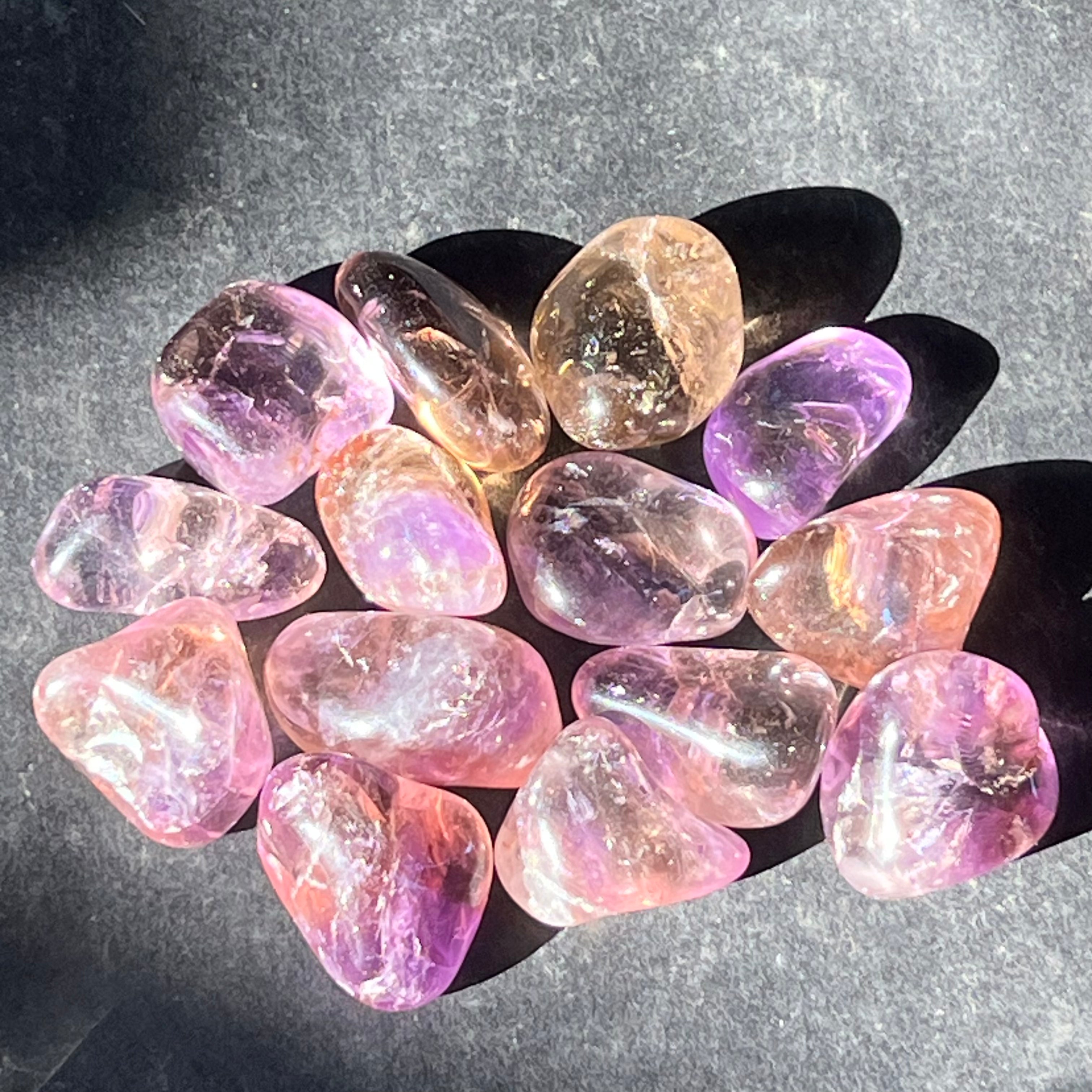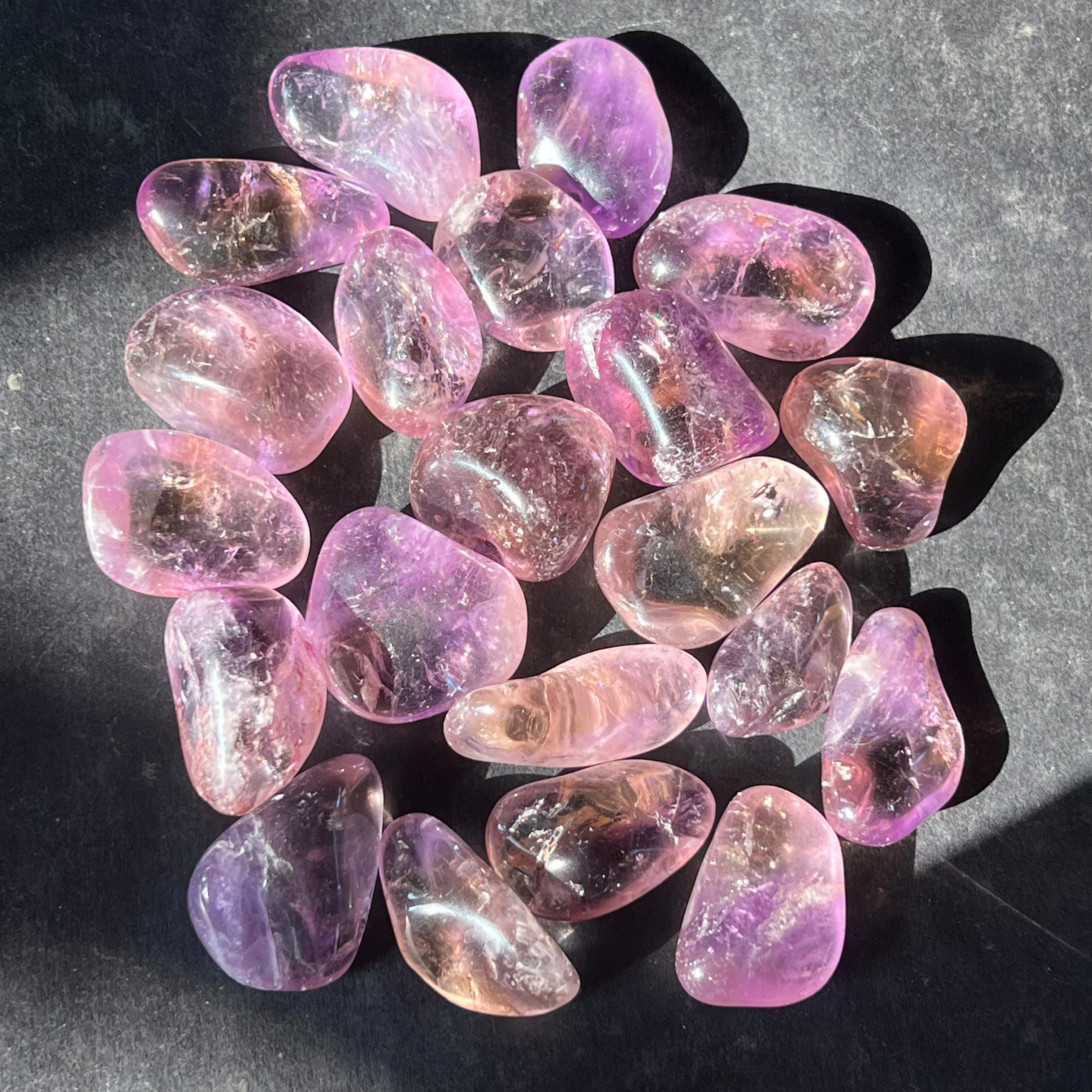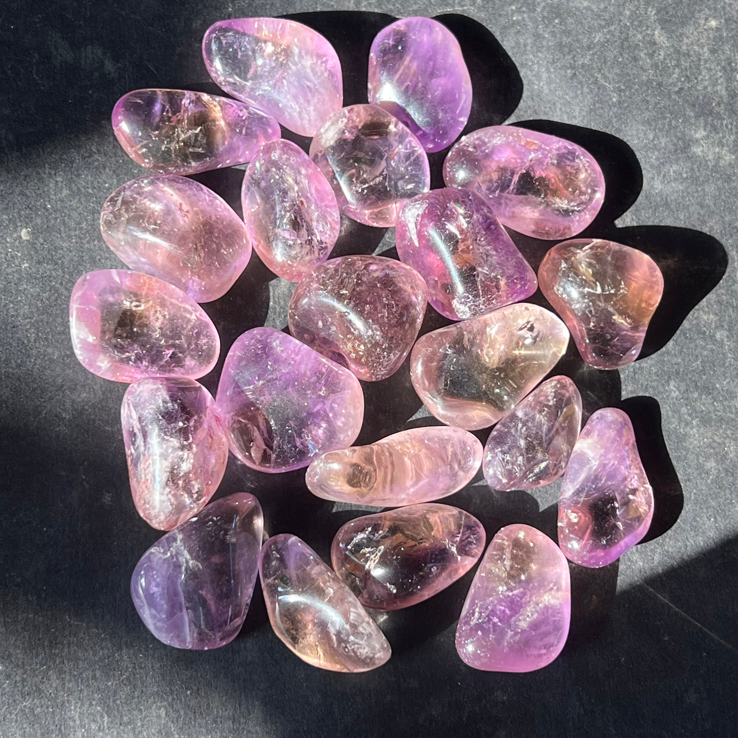 Mini otoczak ametrynu, wymiary od 2,5 do 3,5 cm. Cena różni się w zależności od wielkości kamienia, prosimy wybrać pożądany rozmiar. Cena dotyczy jednej sztuki.