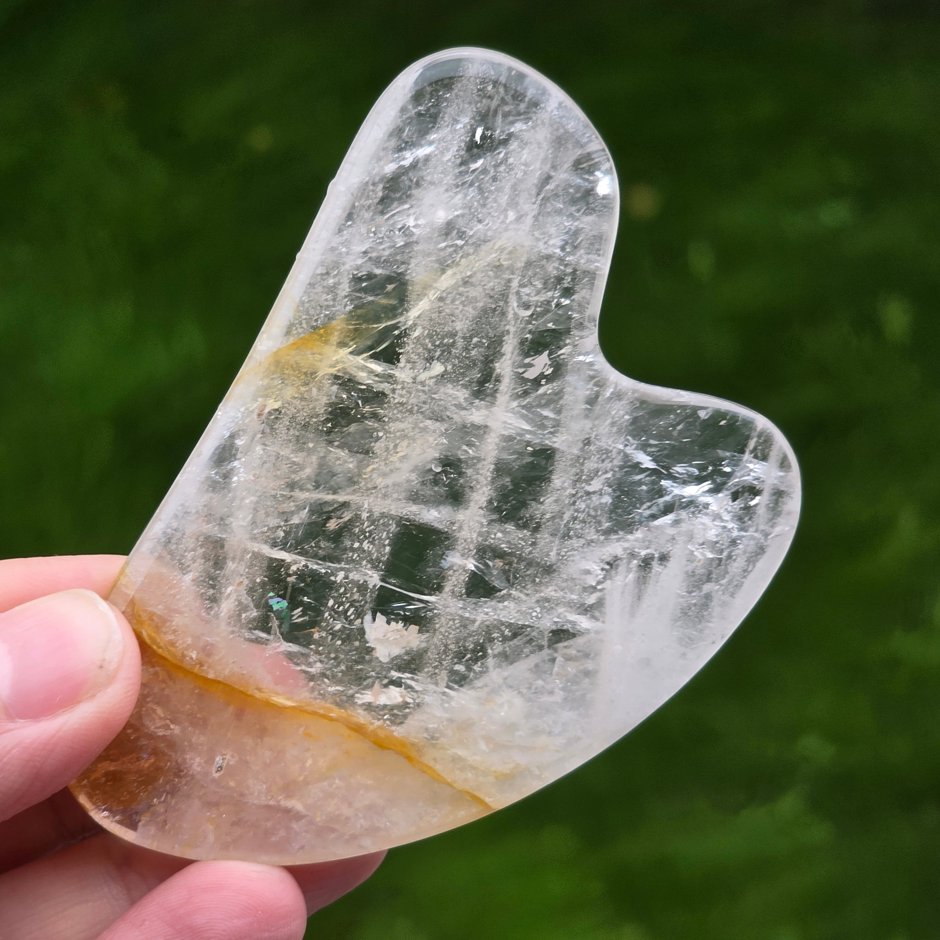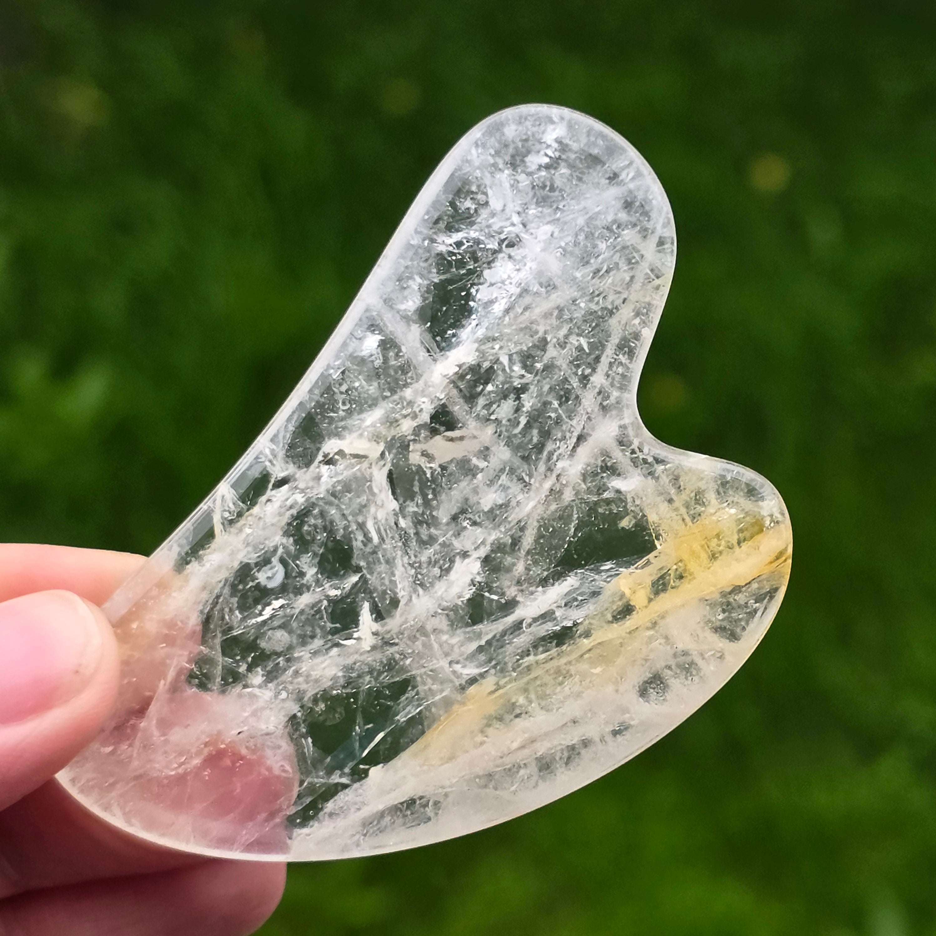 Kamień Gua Sha z lemonitu jest jednym z tych naturalnych elementów, które łączą piękno minerałów z rytuałami pielęgnacji ciała. Jego ciepłe odcienie – złocisto-żółty, miodowy, bursztynowy – wydają się zatrzymywać w sobie światło łagodnego zachodu słońca. Jest to kamień powstały w wyniku połączenia kwarcu z inkluzjami limonitu i hematytu, co tworzy płynne, złote wzory z subtelnymi cieniami i naturalnymi liniami unikalnymi dla każdej sztuki.
