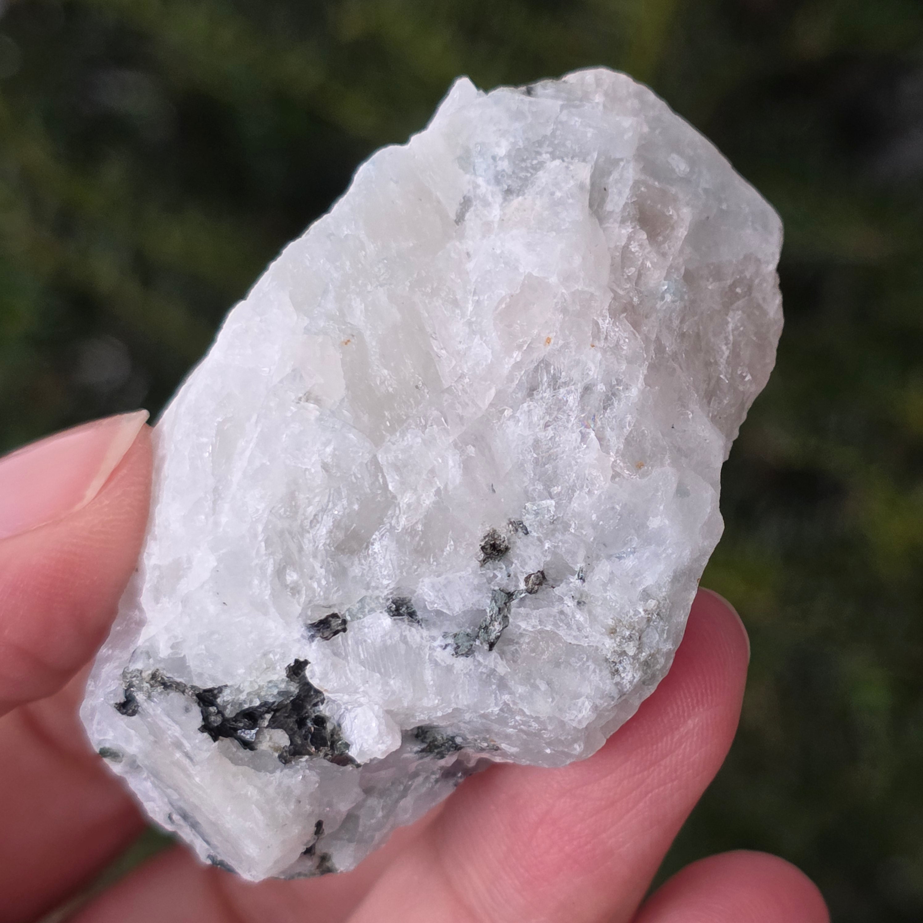 Kamień księżycowy z wkładkami turmalinowymi - kamień surowy m1