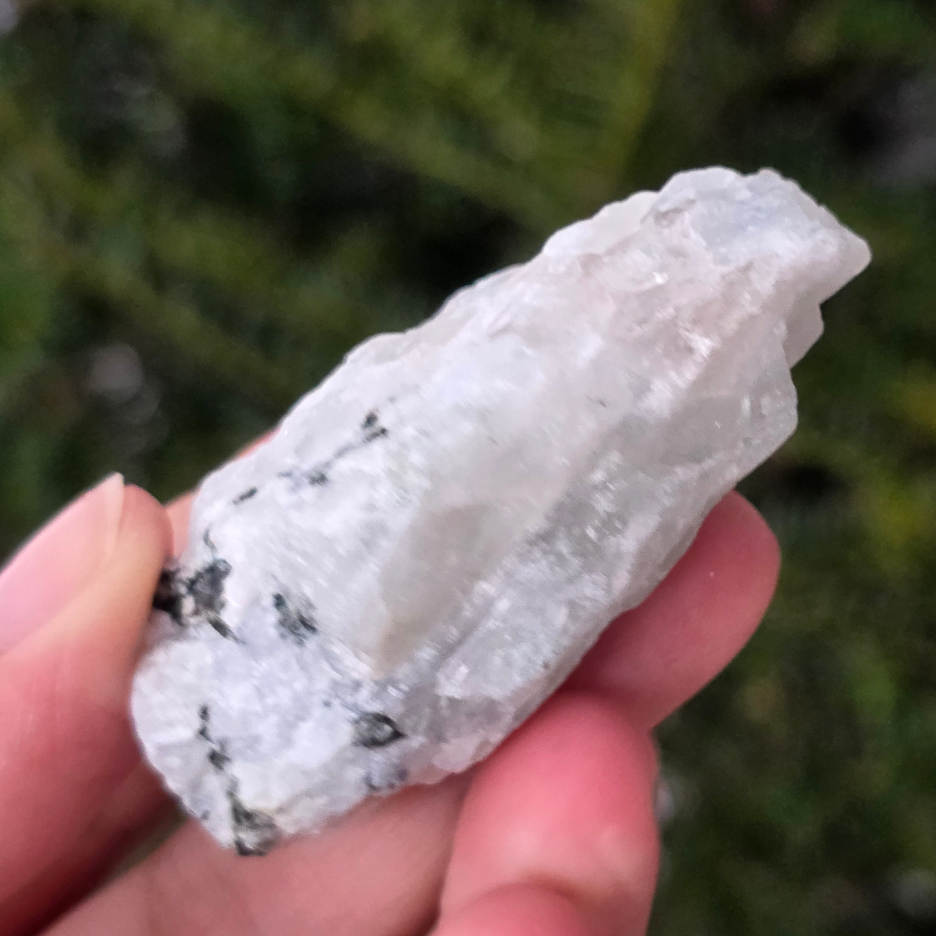 Kamień księżycowy z wkładkami turmalinowymi -surowy kamień m1, rozmiar: 5,5 * 3,5 * 2,7 cm