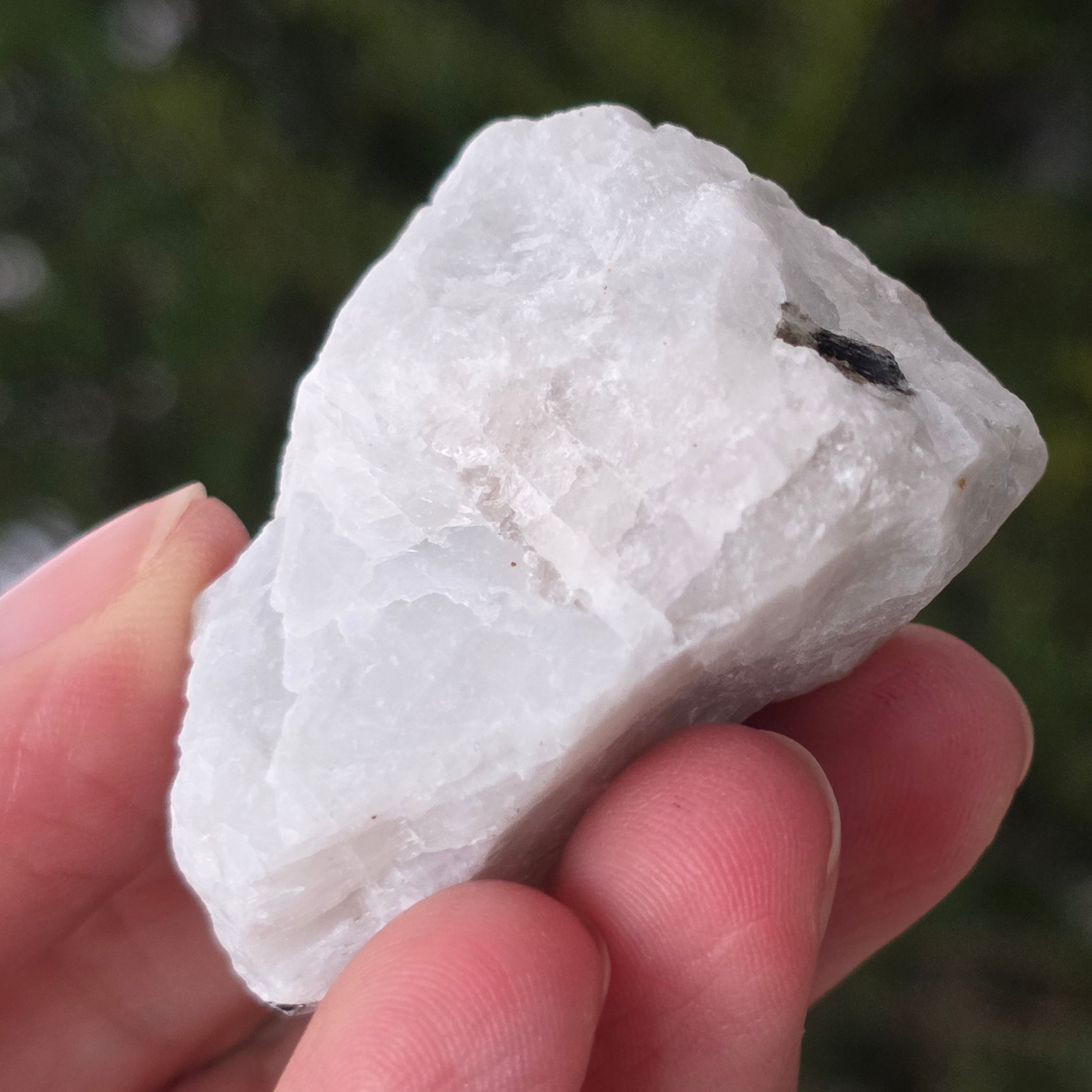 Kamień księżycowy z wkładkami turmalinowymi -surowy kamień m8, rozmiar: 6,5 * 3,5 * 3 cm