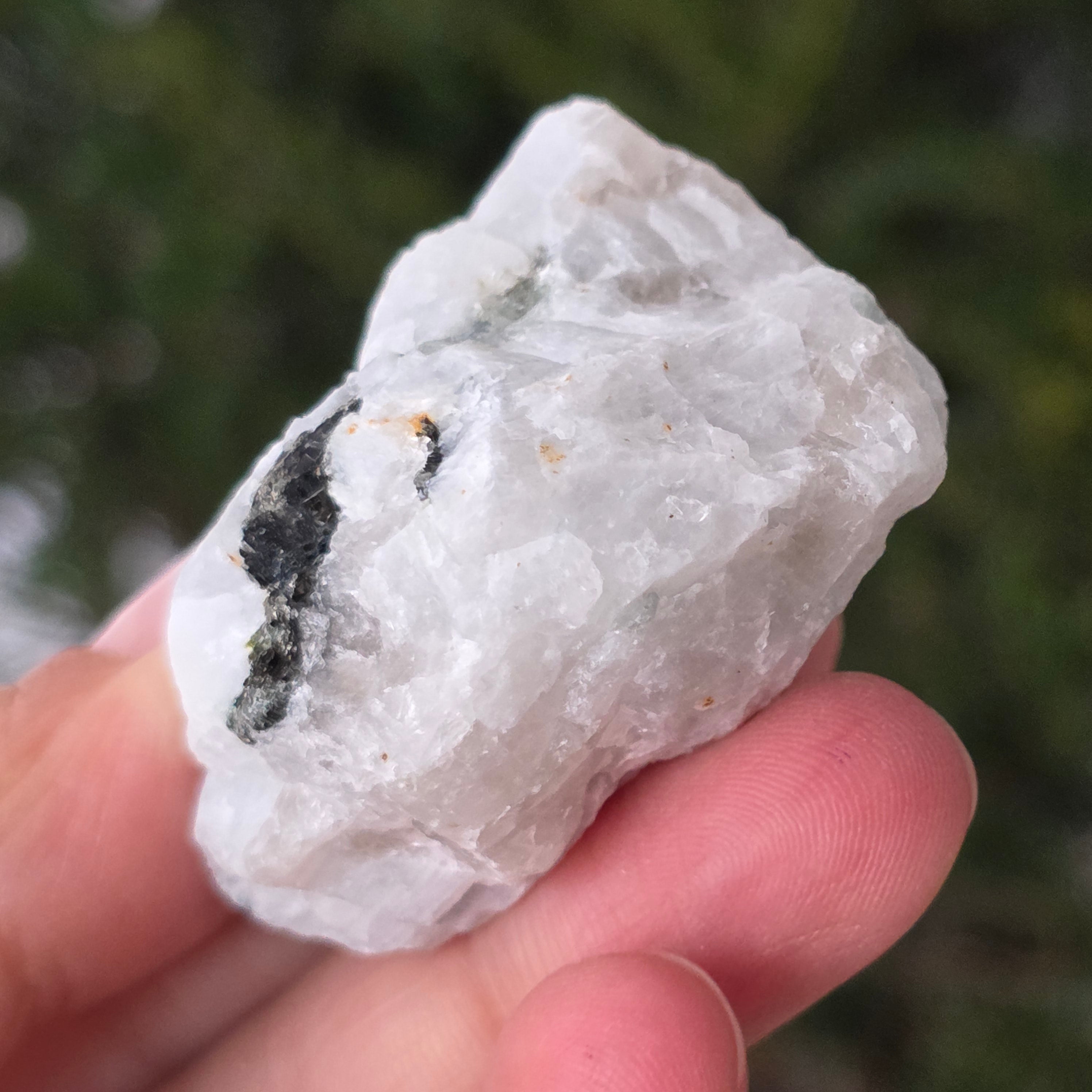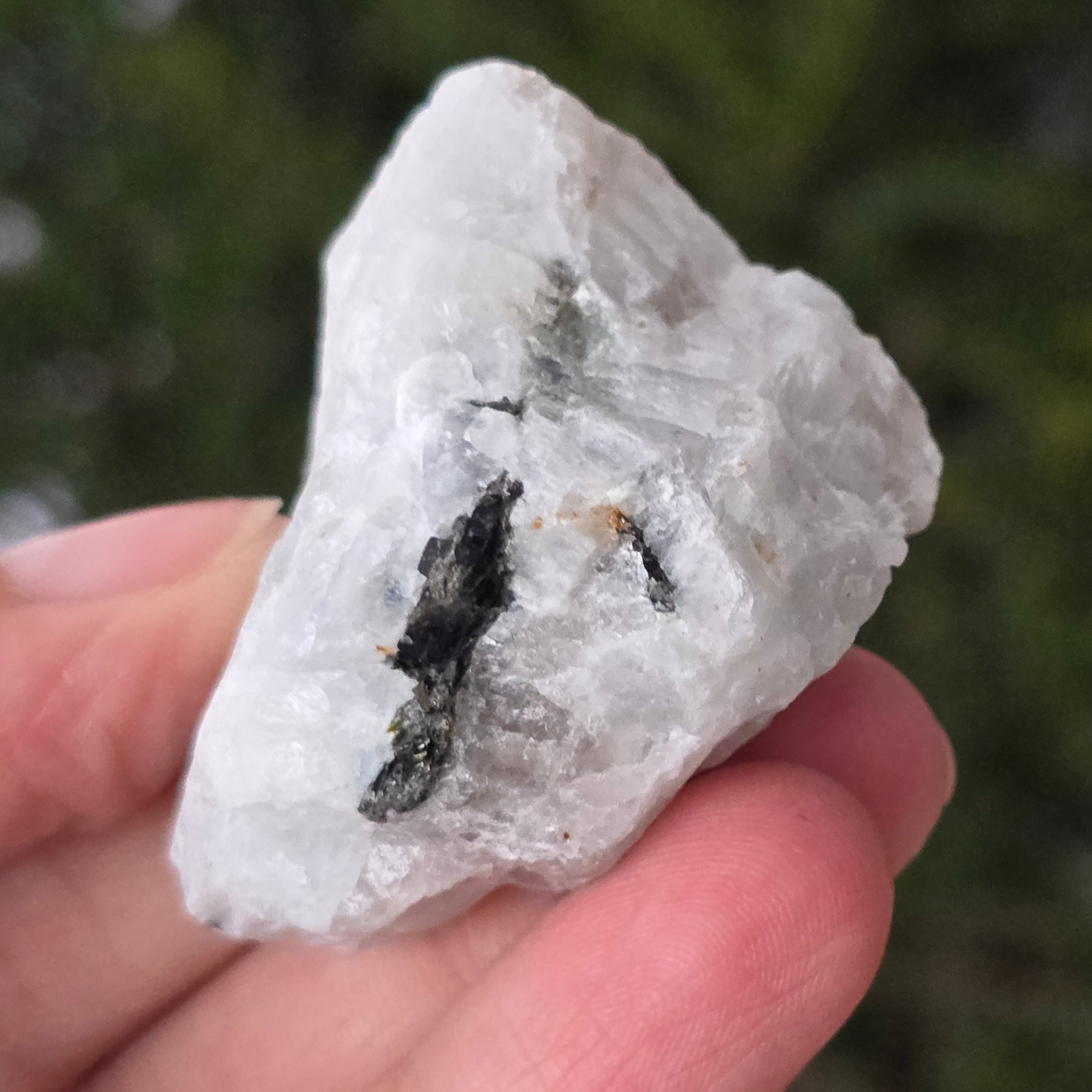 Kamień księżycowy z wkładkami turmalinowymi - kamień surowy m8