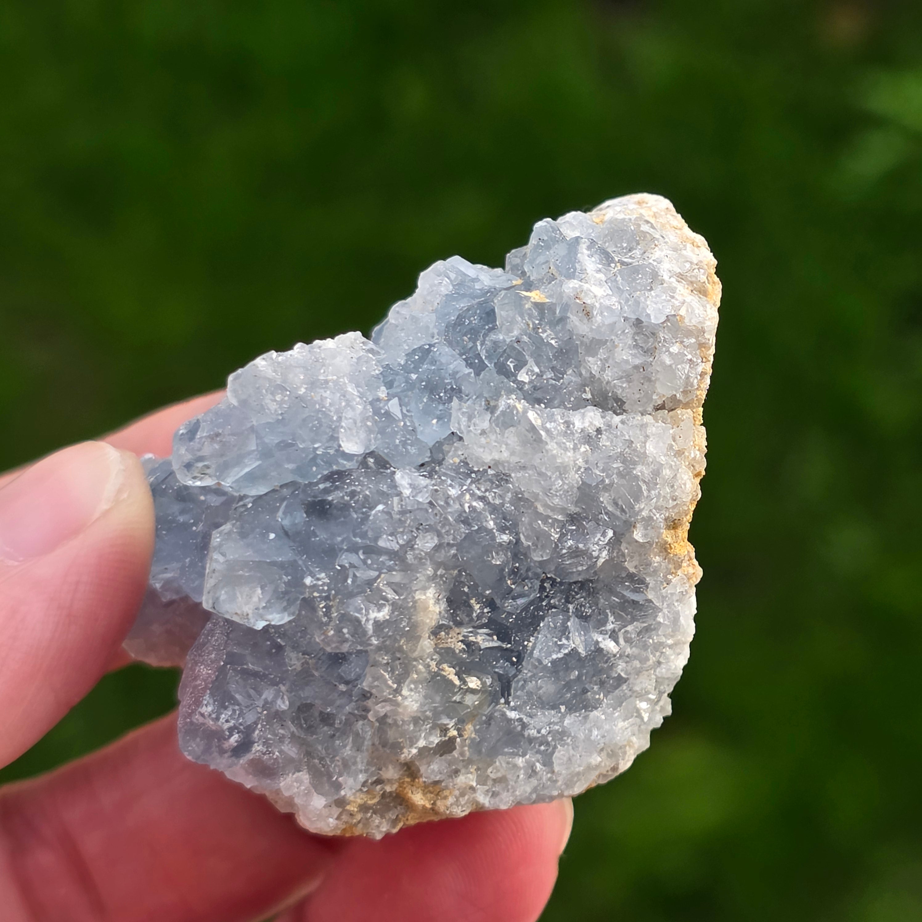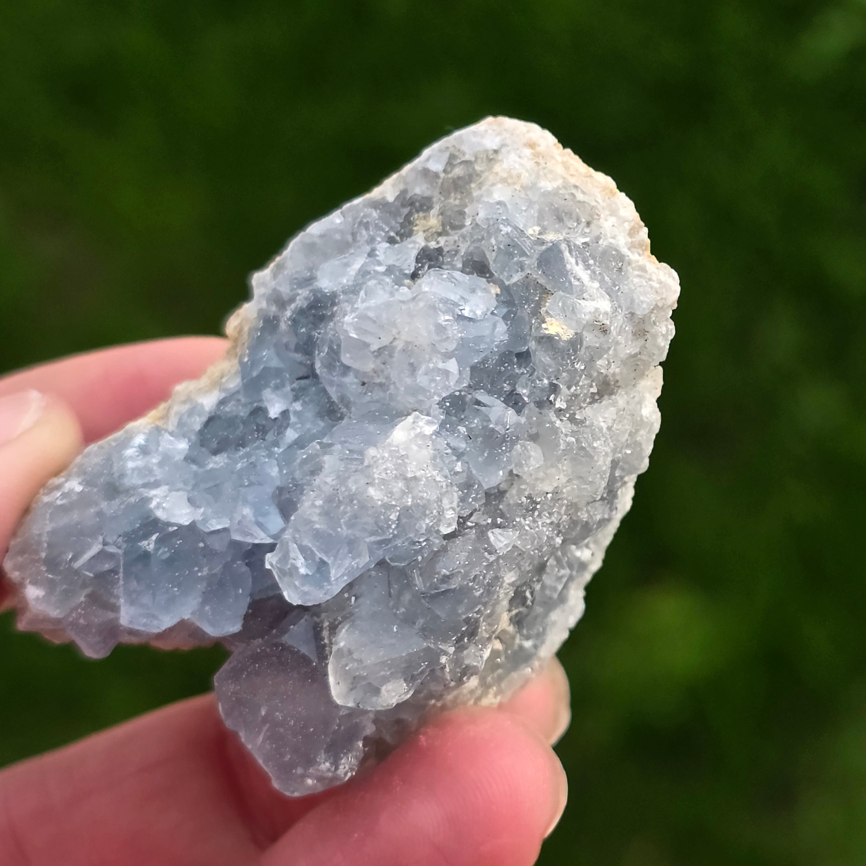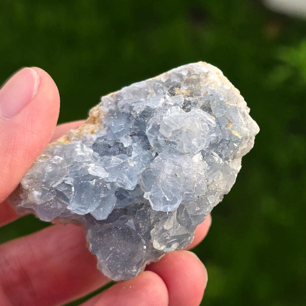 Celestyt to kamień półszlachetny o niebieskiej lub bezbarwnej barwie, zbudowany z siarczanu strontu. Posiada właściwości uspokajające i relaksujące, często stosowany w medytacji i praktykach duchowych, aby sprzyjać wewnętrznemu spokoju i jasności umysłu. Celestyt jest związany z czakrą gardła i może wspomagać klarowną komunikację oraz wyrażanie emocji. Wierzono również, że zwiększa kreatywność, intuicję oraz zdolności psychiczne.