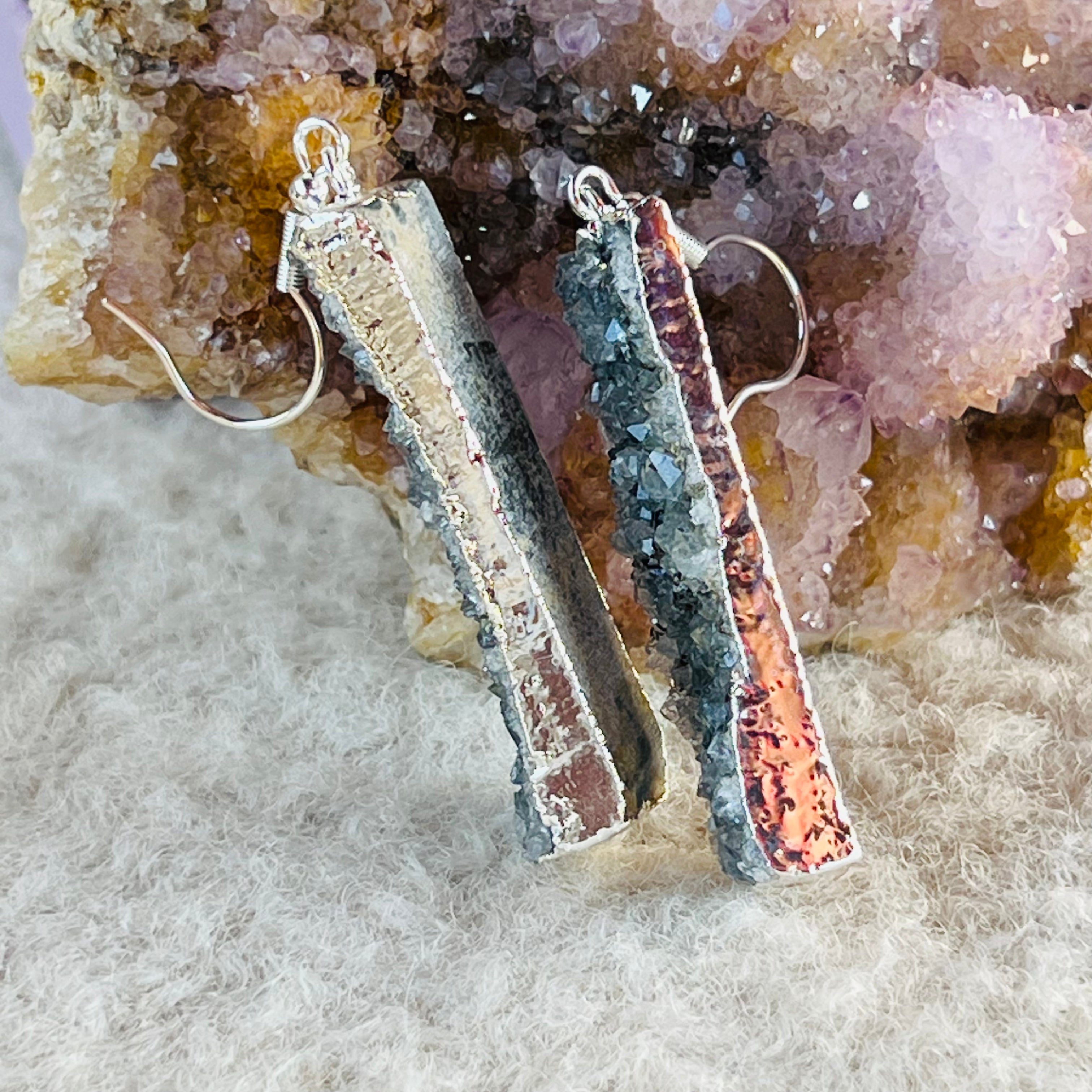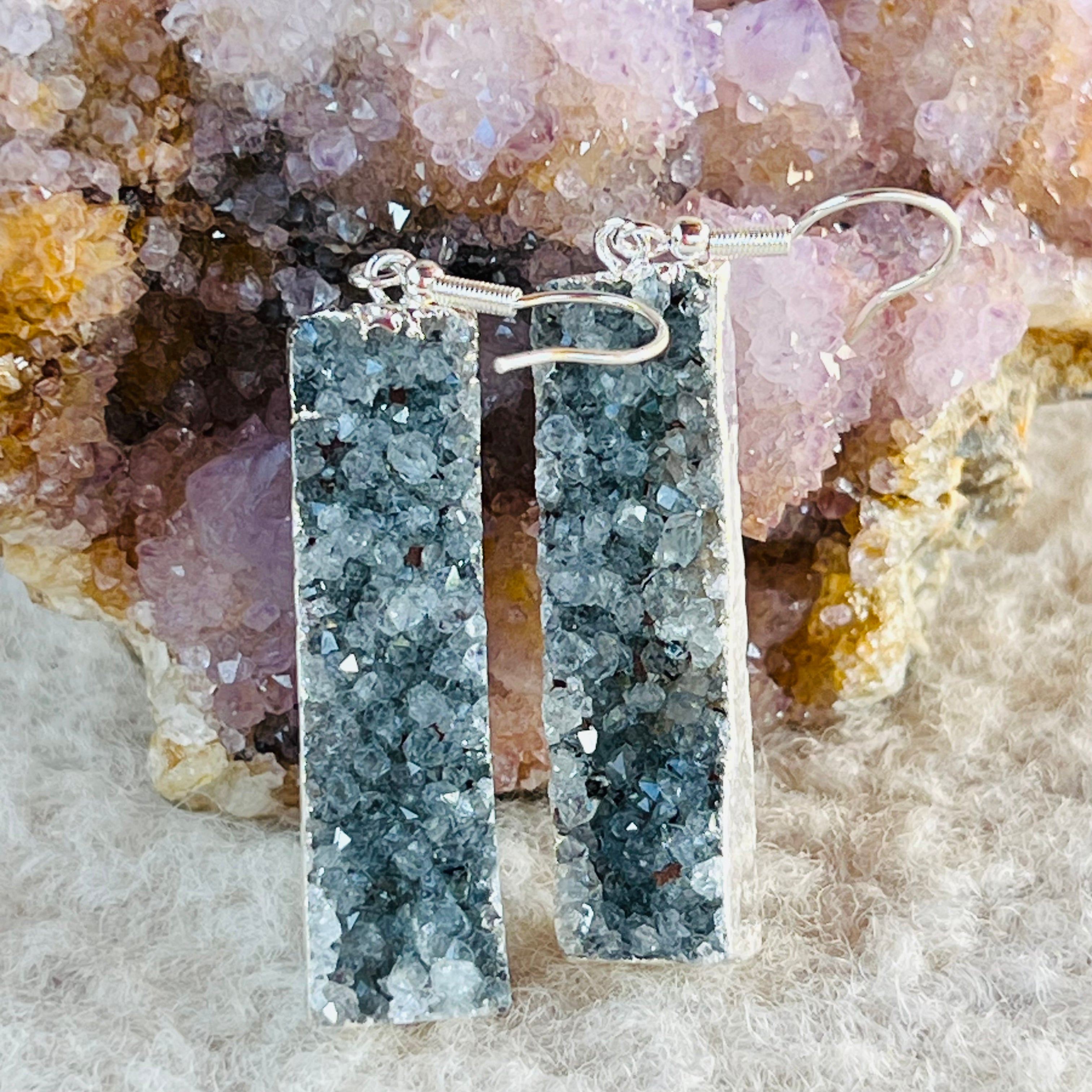 Kolczyki pokrojone Agat Druzy z srebrem z Brazylii Model 3