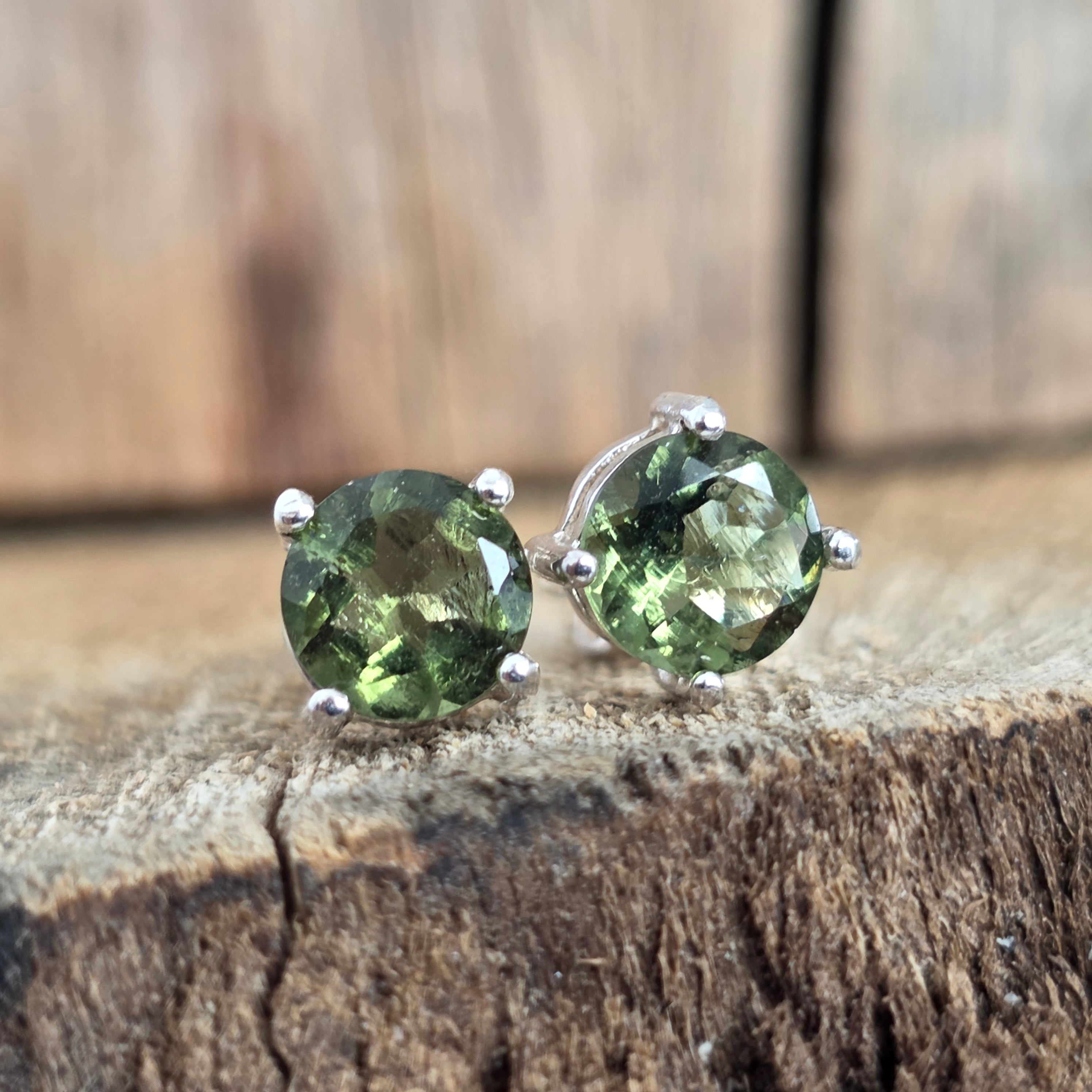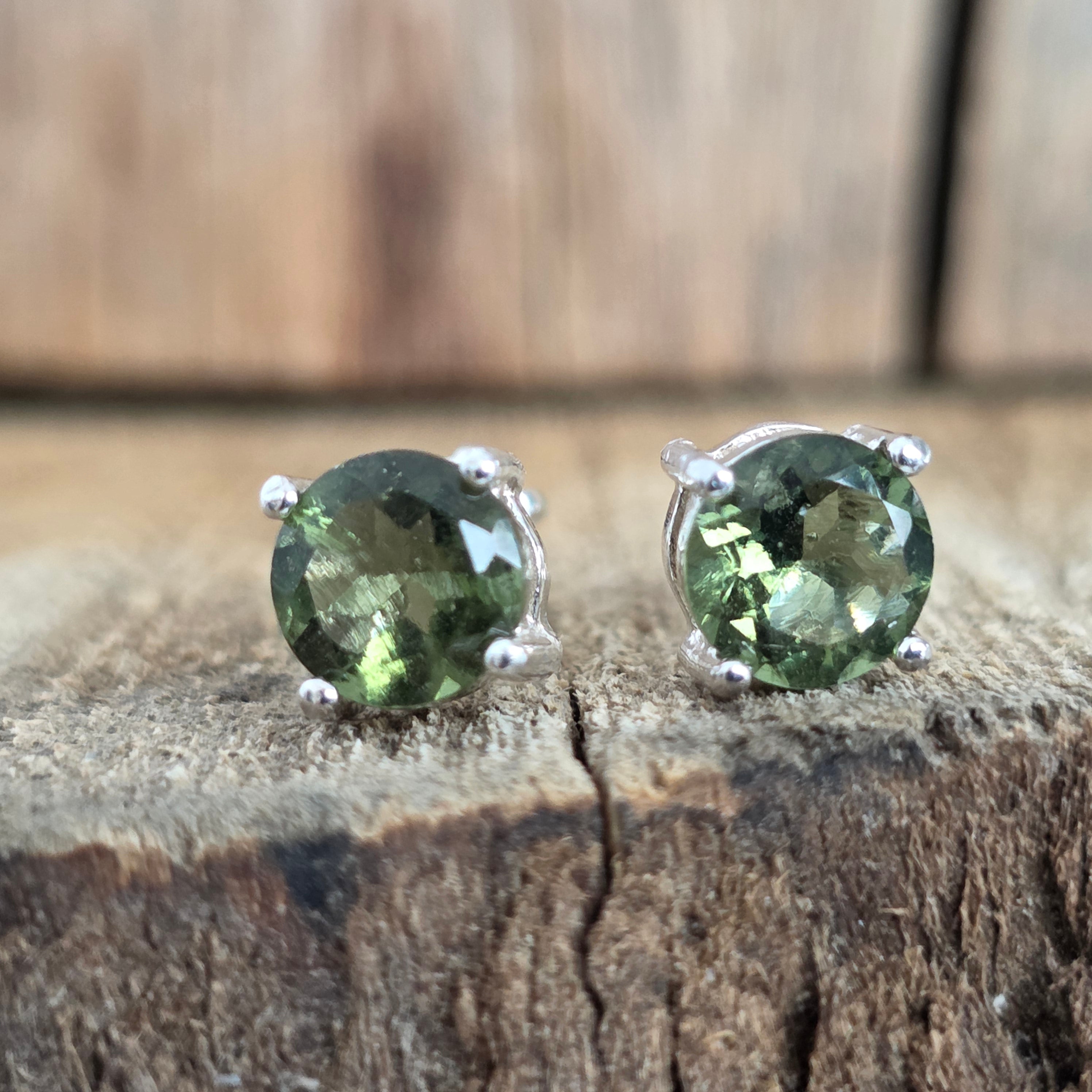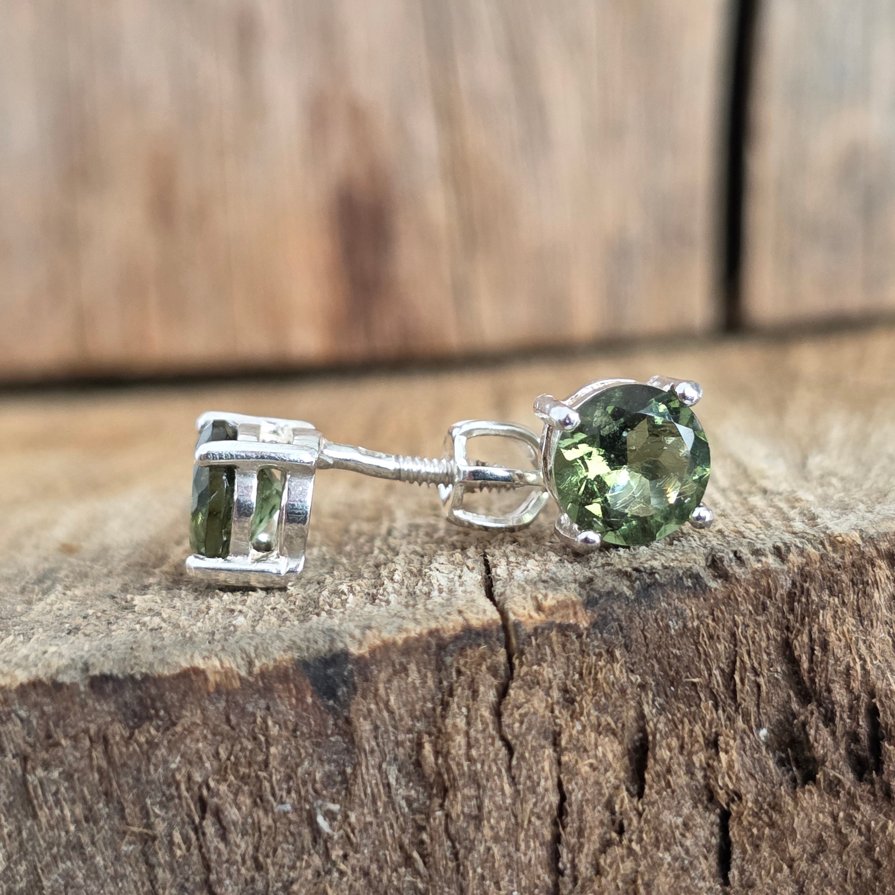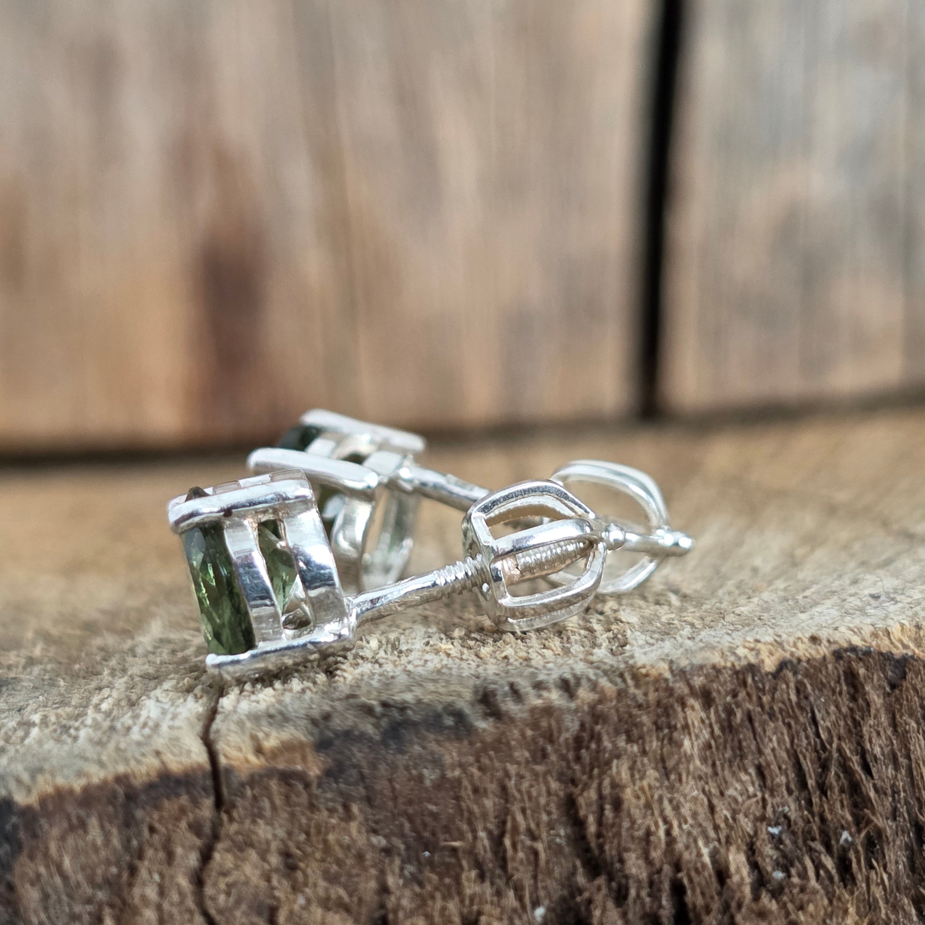 Kolczyki srebrne z moldawitem 6 mm rundy